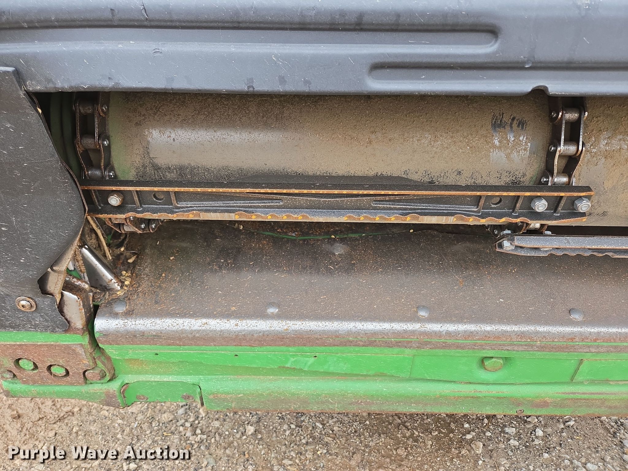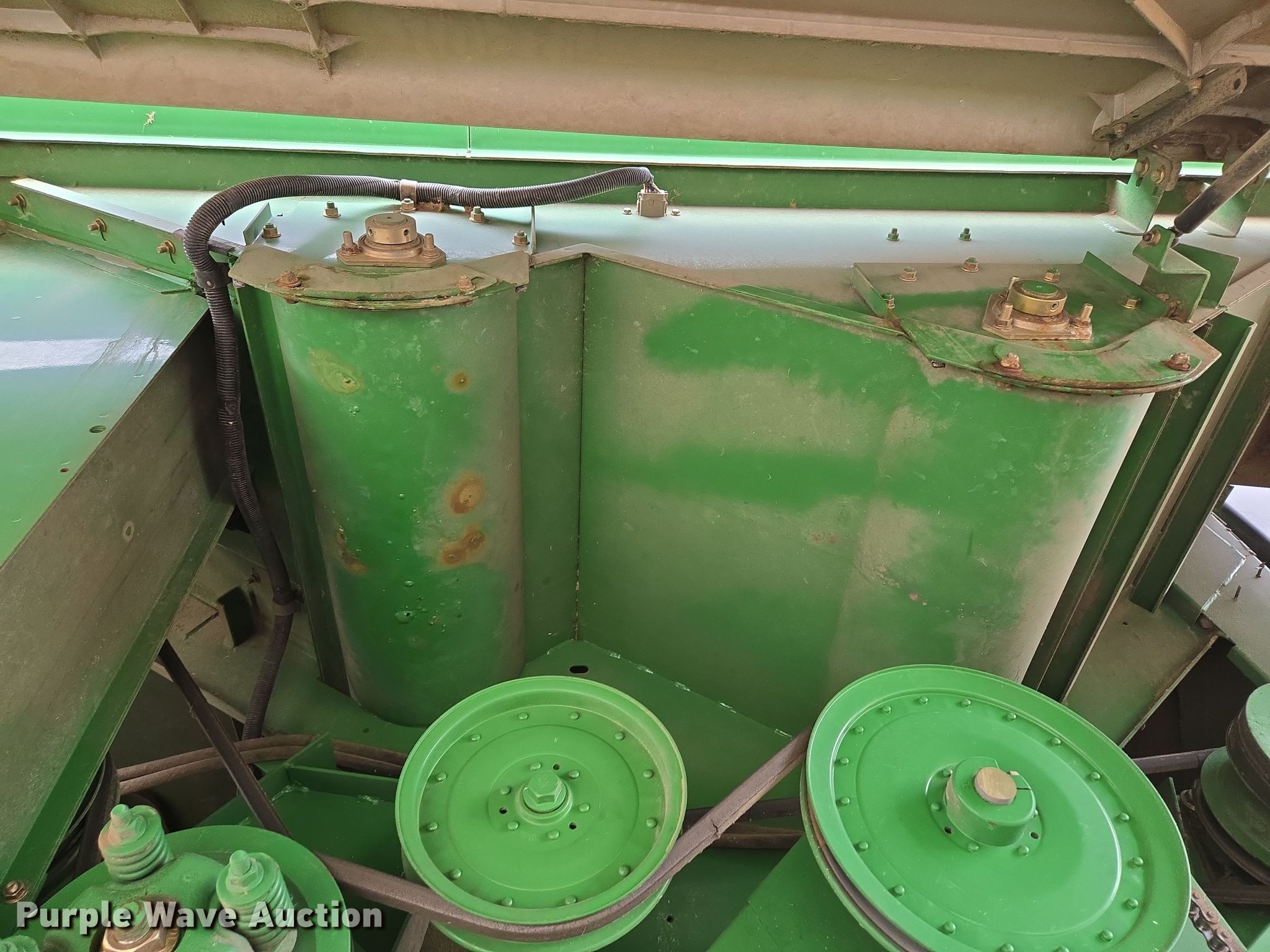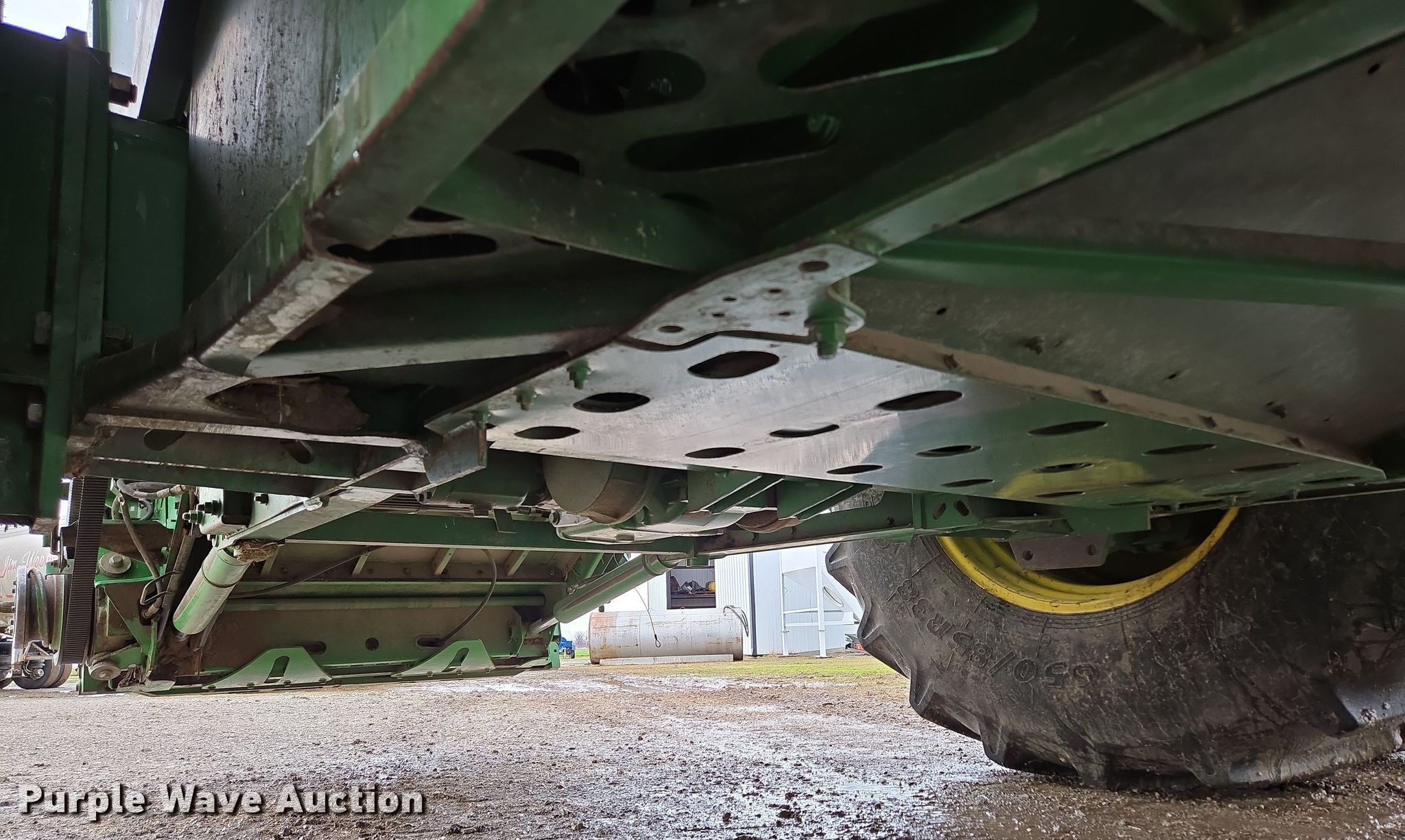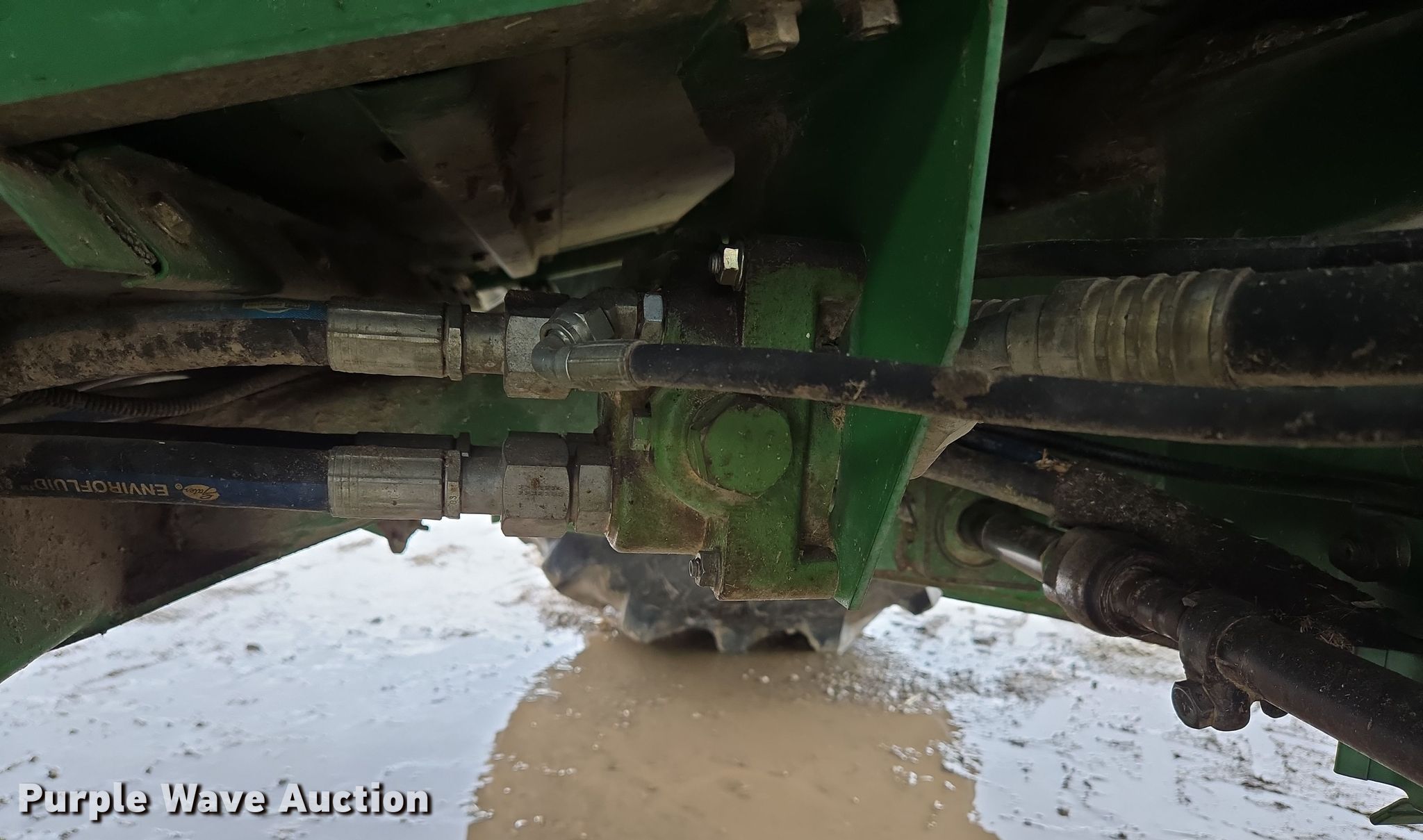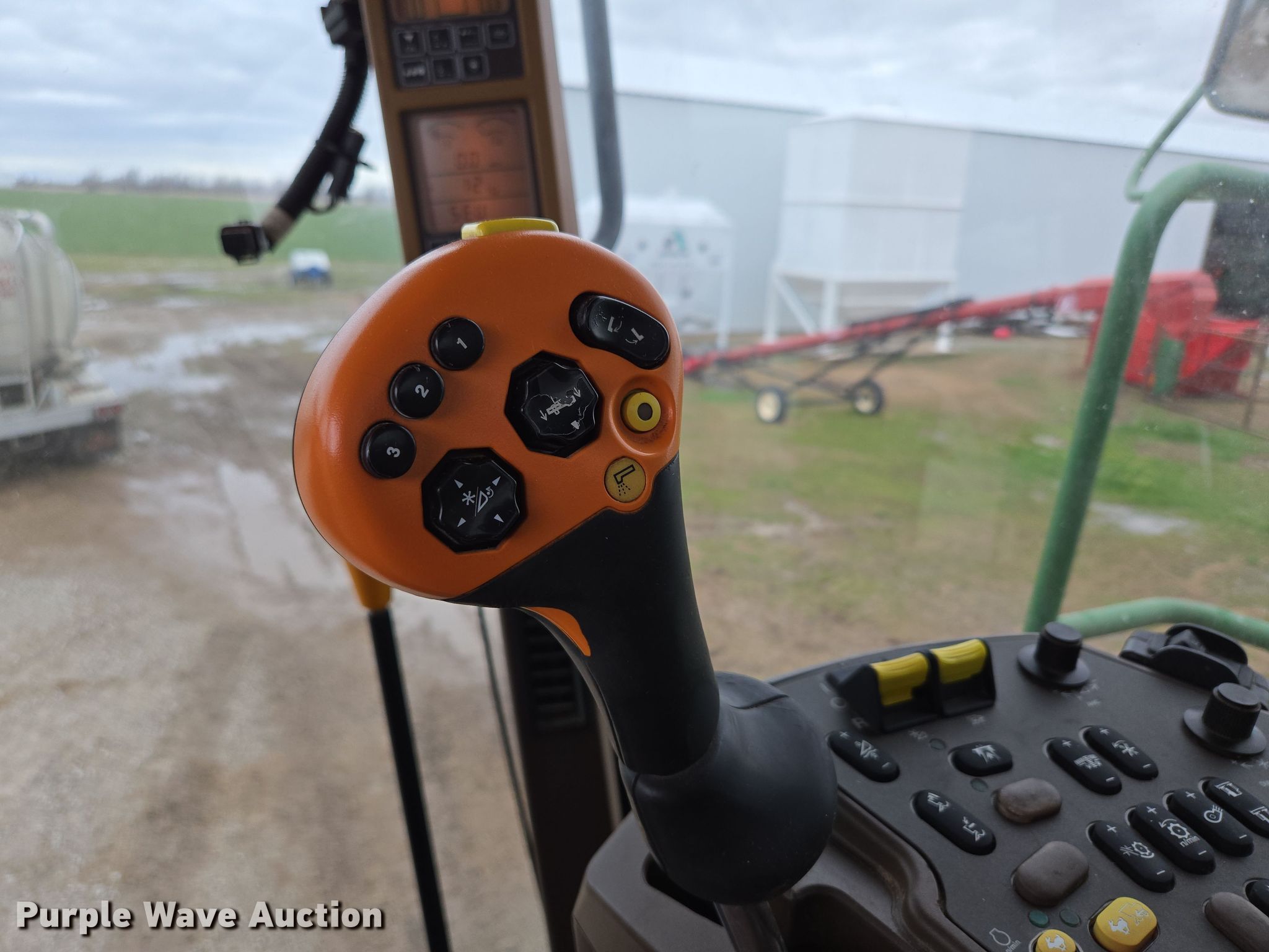 2007 John Deere 9860 STS RWA combine. Engine hours: 4,147 on meter, Separator hours: 2,783 on meter, Serial: H09860S720802. Engine John Deere 6125HH006B C, Serial: R525368, Displacement: 12.5L, Cylinders: 6, Fuel type: Diesel, HP: 375. Transmission Hydrostatic. Operators station AC, Heat, Auto steer John Deere AutoTrac Universal Steering Kit 200. Features Single point header coupler, Feederhouse: Lateral tilt, Variable speed, Reverser, Concaves: Round, Chaff spreader, Straw chopper, Power tailboard, Bin: Extensions, Unloading auger length: 24'. Tires Front: 650/85R38, Rear: 620/75R26, Duals. Notes GPS receiver missing, Grain elevator housing damaged. Jennings Farms. Quapaw, OK 74363