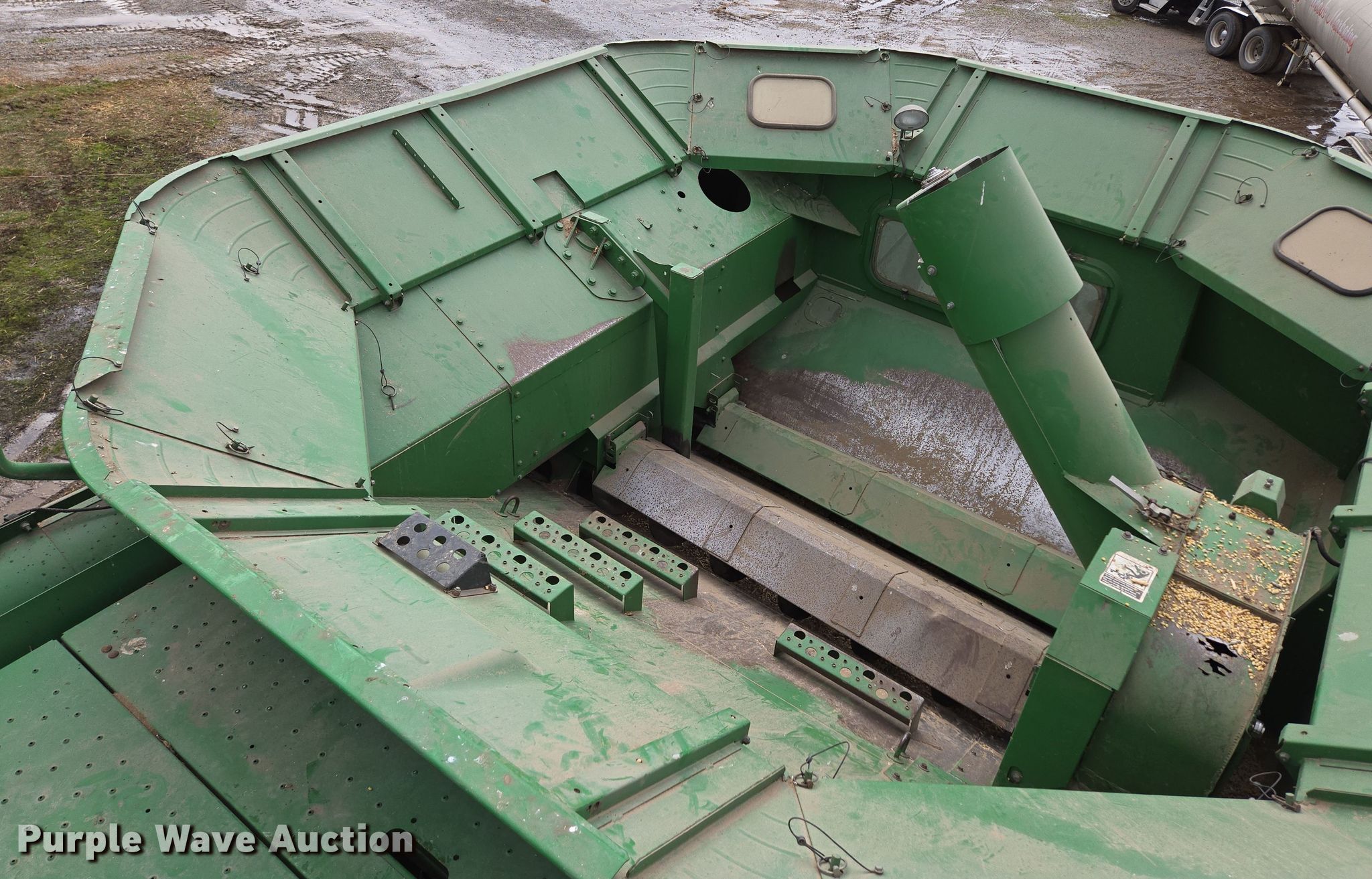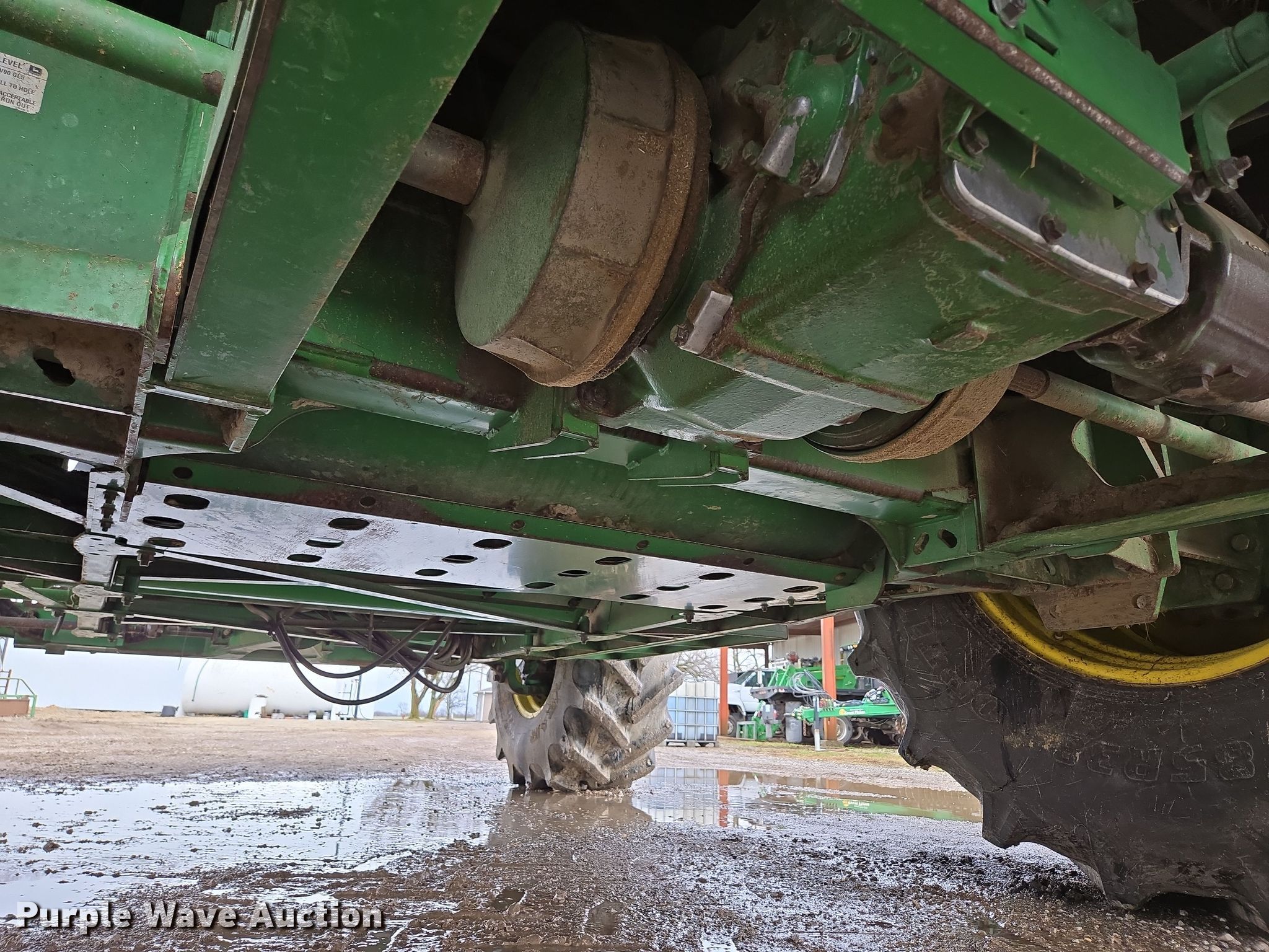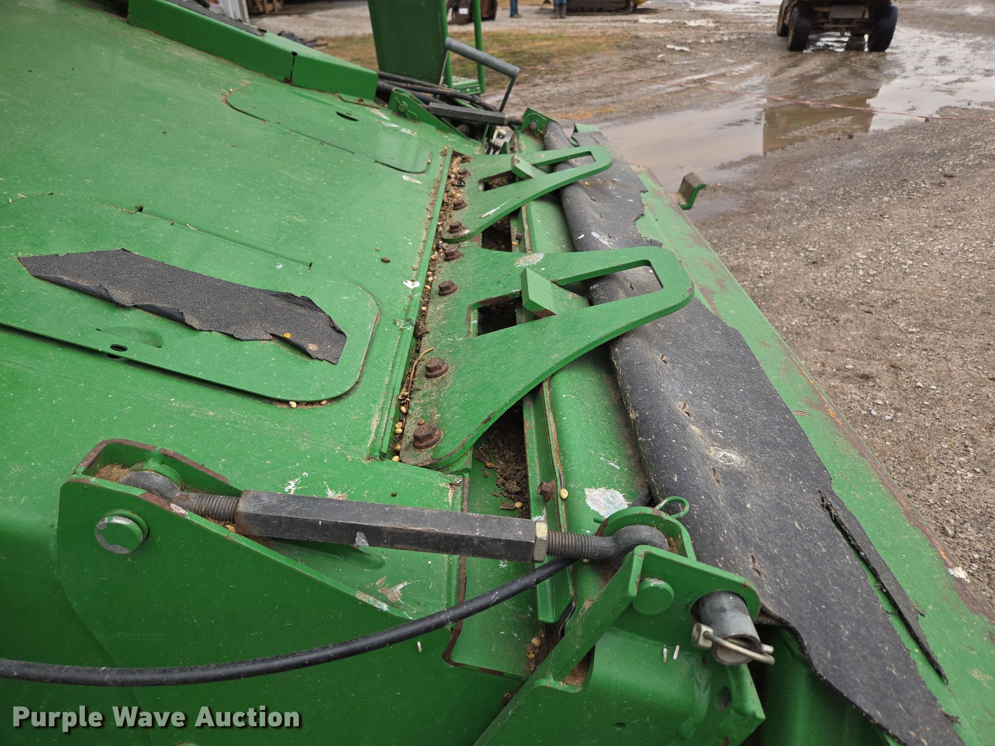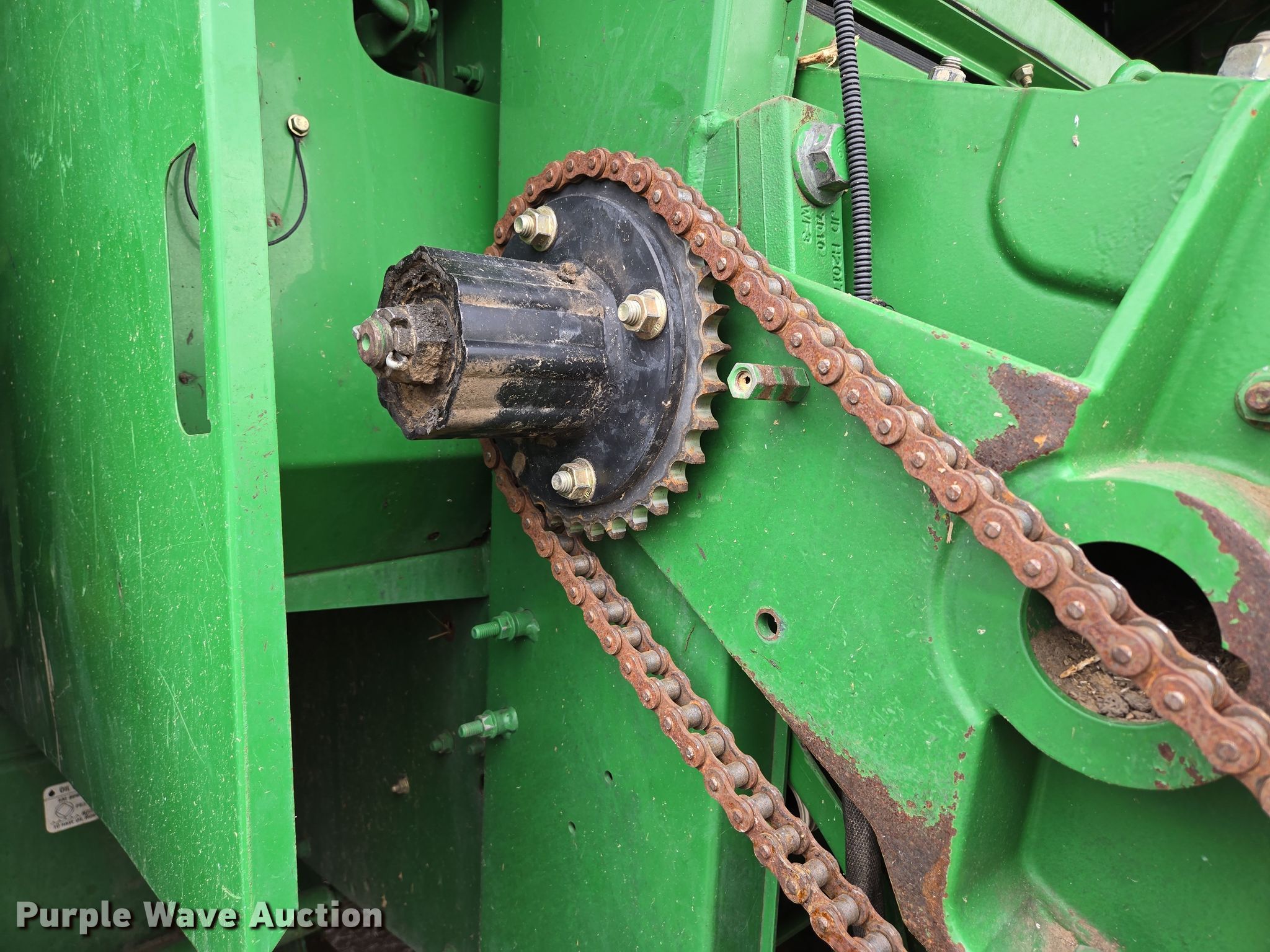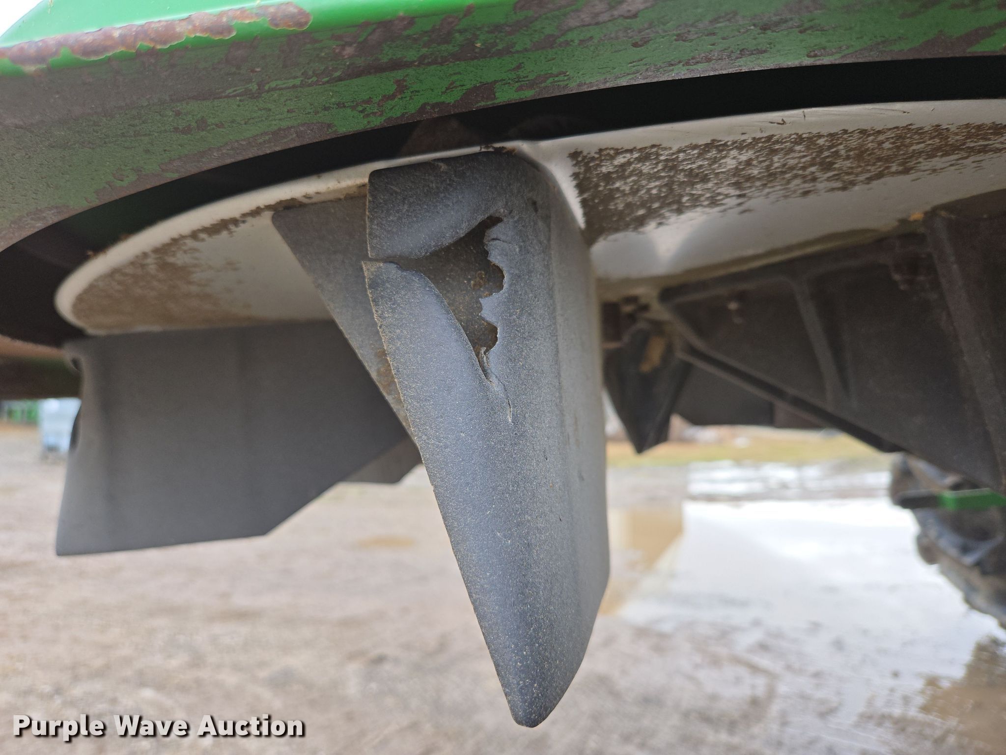 2007 John Deere 9860 STS RWA combine. Engine hours: 4,147 on meter, Separator hours: 2,783 on meter, Serial: H09860S720802. Engine John Deere 6125HH006B C, Serial: R525368, Displacement: 12.5L, Cylinders: 6, Fuel type: Diesel, HP: 375. Transmission Hydrostatic. Operators station AC, Heat, Auto steer John Deere AutoTrac Universal Steering Kit 200. Features Single point header coupler, Feederhouse: Lateral tilt, Variable speed, Reverser, Concaves: Round, Chaff spreader, Straw chopper, Power tailboard, Bin: Extensions, Unloading auger length: 24'. Tires Front: 650/85R38, Rear: 620/75R26, Duals. Notes GPS receiver missing, Grain elevator housing damaged. Jennings Farms. Quapaw, OK 74363