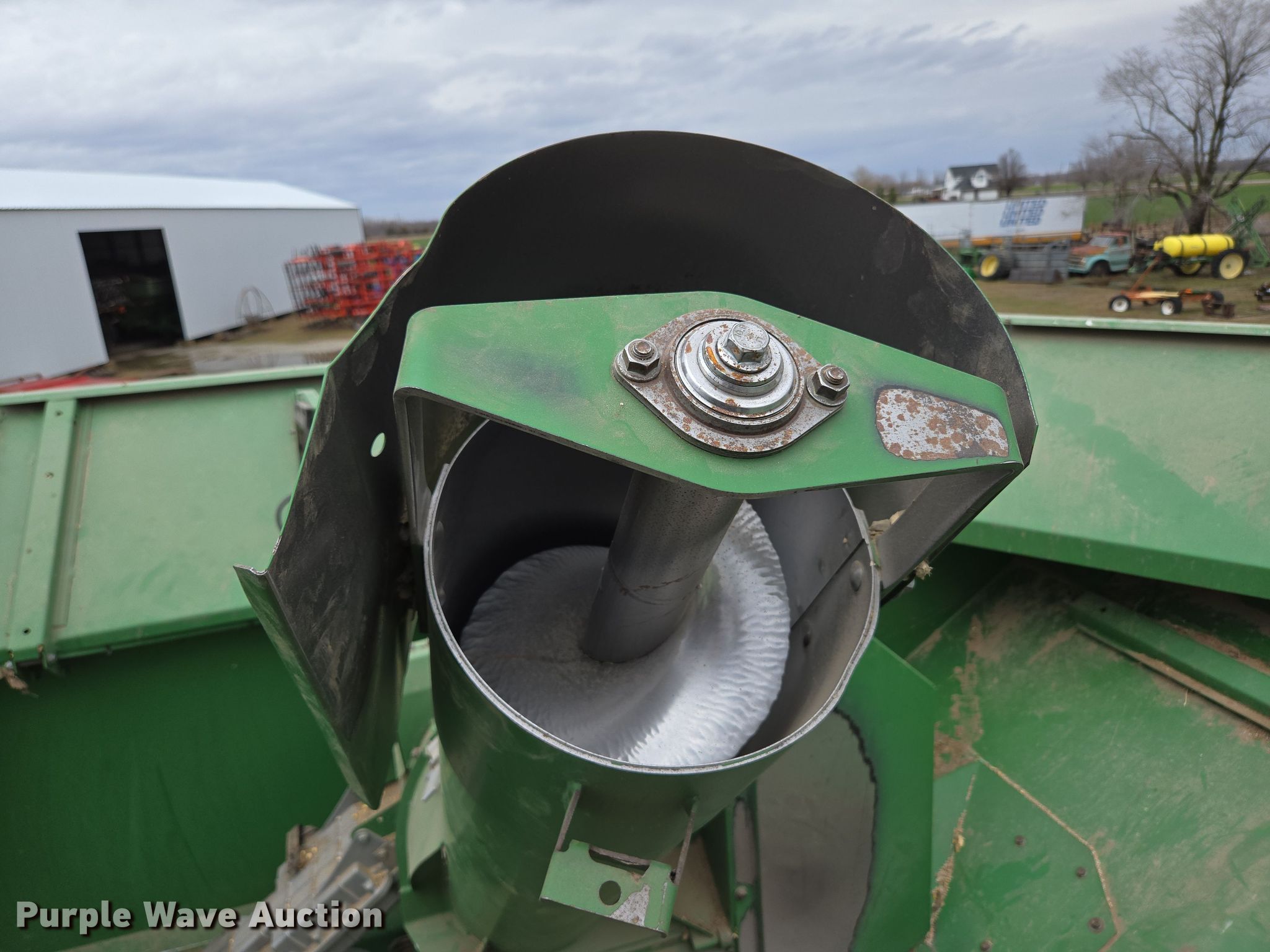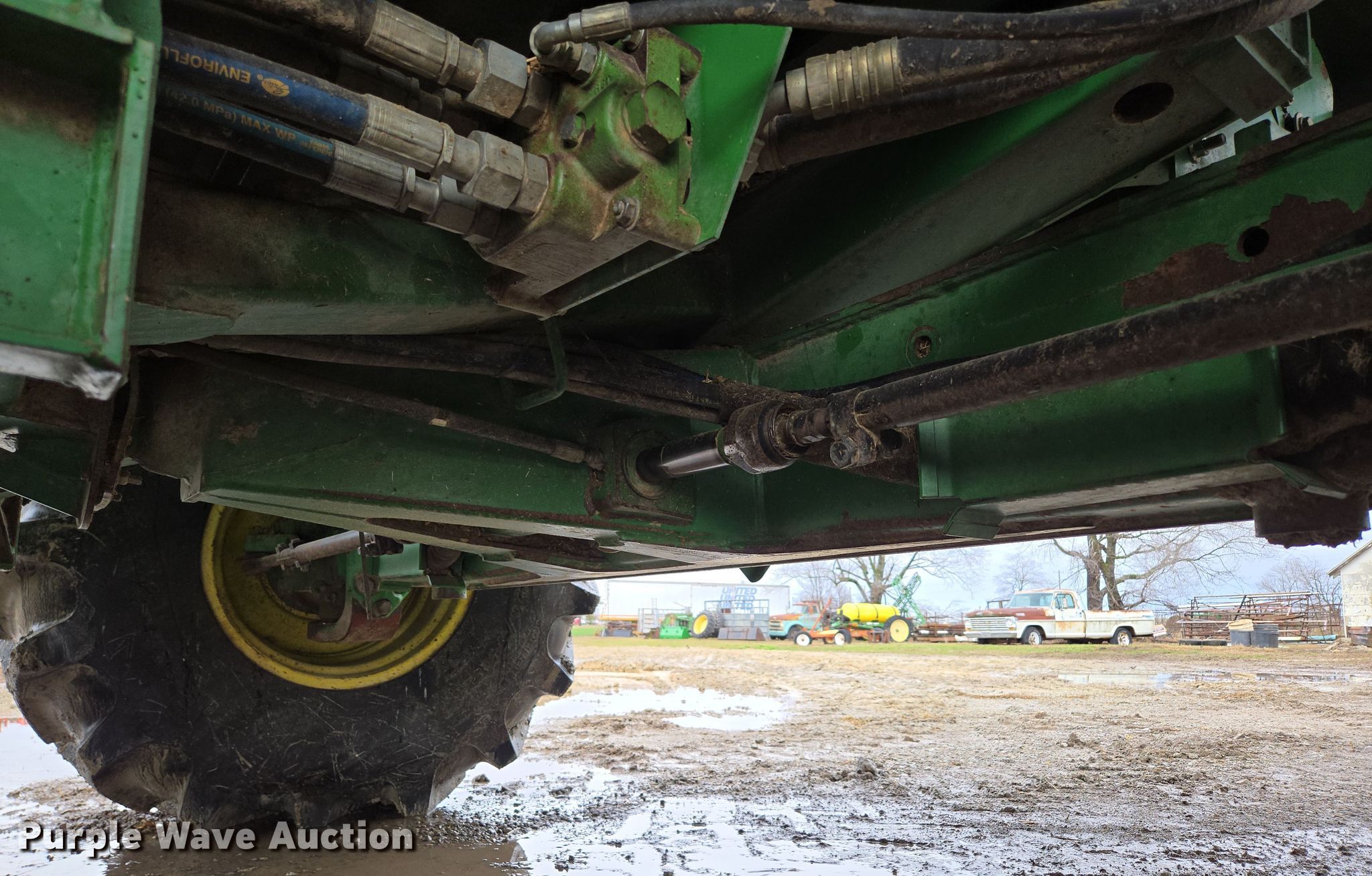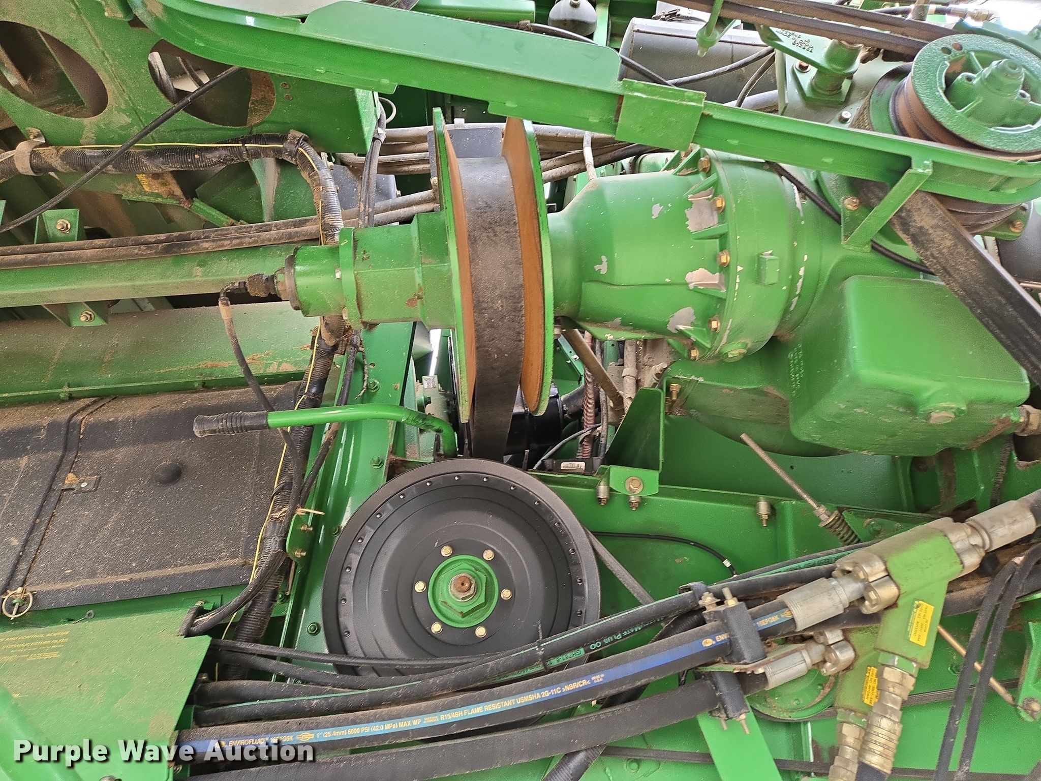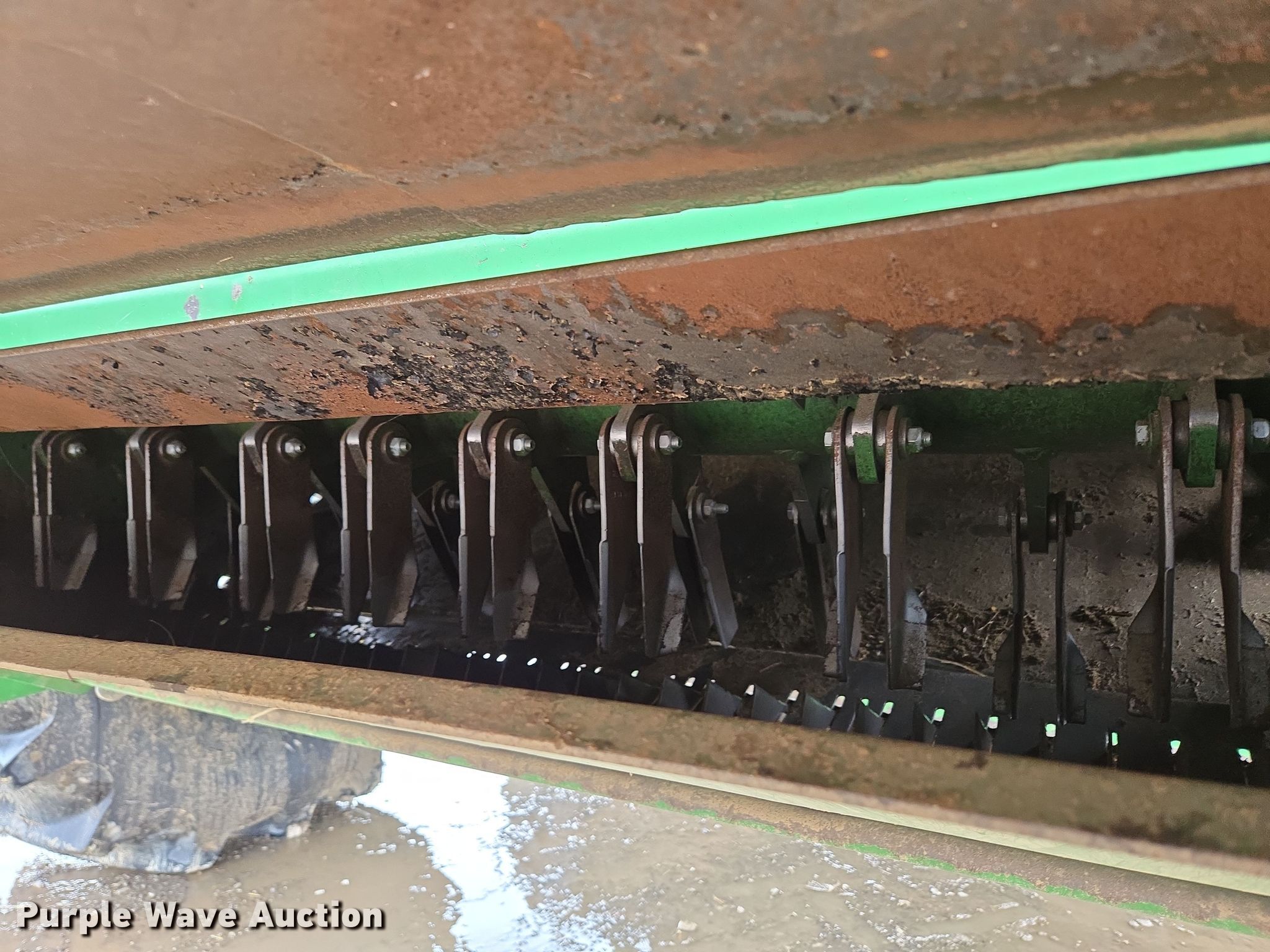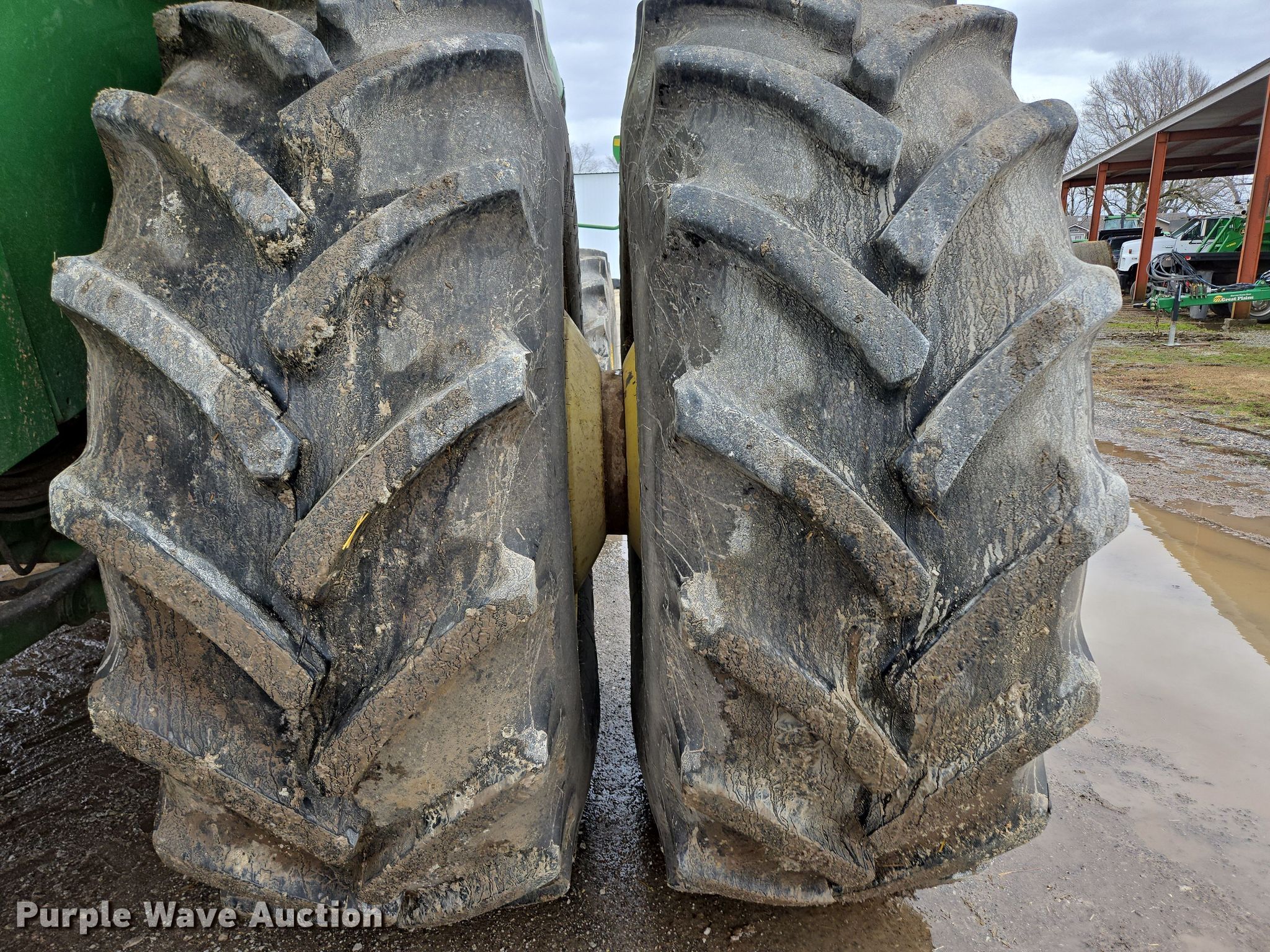 2007 John Deere 9860 STS RWA combine. Engine hours: 4,147 on meter, Separator hours: 2,783 on meter, Serial: H09860S720802. Engine John Deere 6125HH006B C, Serial: R525368, Displacement: 12.5L, Cylinders: 6, Fuel type: Diesel, HP: 375. Transmission Hydrostatic. Operators station AC, Heat, Auto steer John Deere AutoTrac Universal Steering Kit 200. Features Single point header coupler, Feederhouse: Lateral tilt, Variable speed, Reverser, Concaves: Round, Chaff spreader, Straw chopper, Power tailboard, Bin: Extensions, Unloading auger length: 24'. Tires Front: 650/85R38, Rear: 620/75R26, Duals. Notes GPS receiver missing, Grain elevator housing damaged. Jennings Farms. Quapaw, OK 74363
