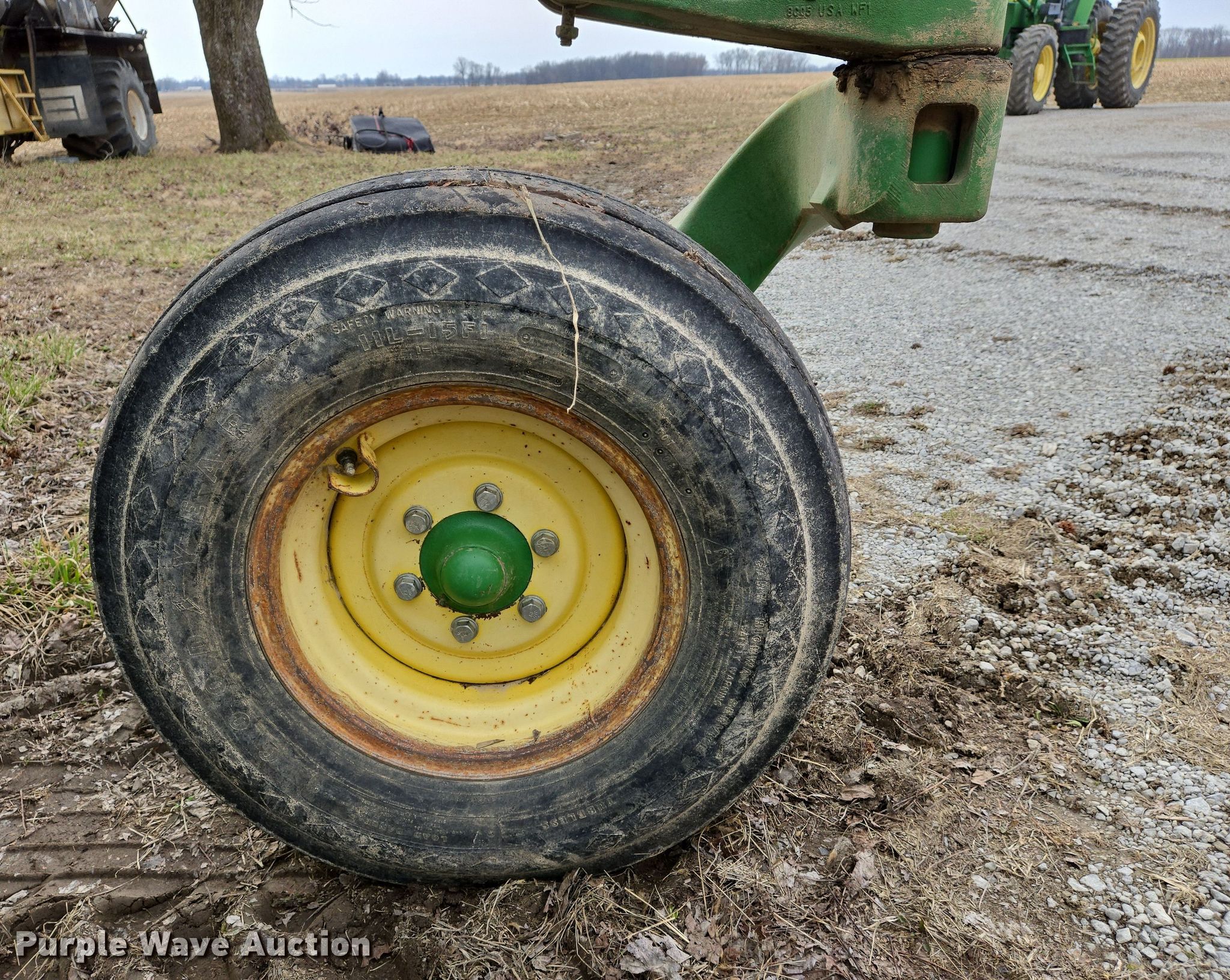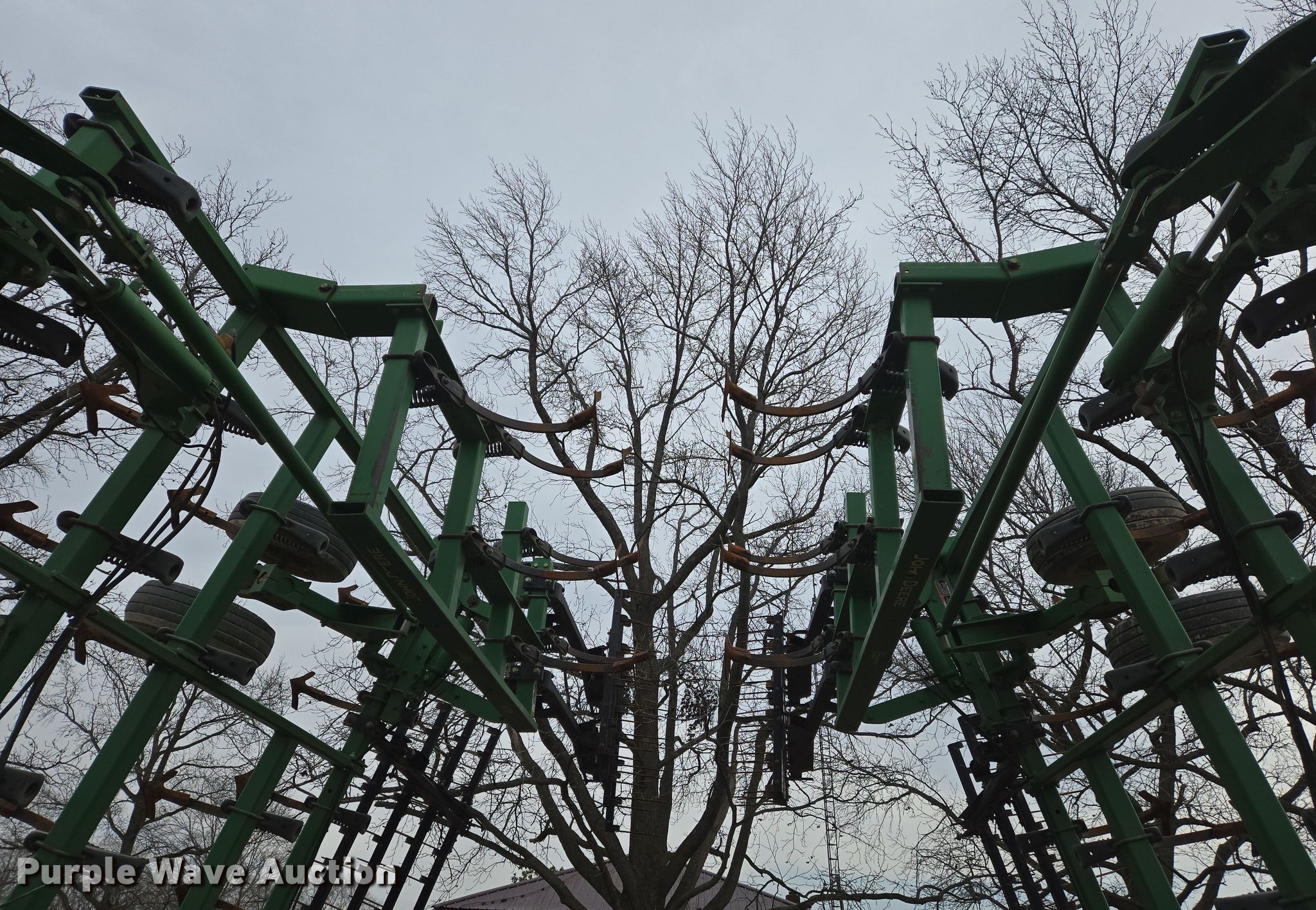 John Deere 2210 field cultivator. Overall width: 39' 9", Serial: N02210X006375. Features Sweep width: 9.5", Operation Hydraulic lift, Hydraulic fold, Leveler: Hydraulic, Attachments Tine harrow. Tires Tire size: 280/70R15, Gauge wheels Size: 11L-15. Scheller, IL 62883