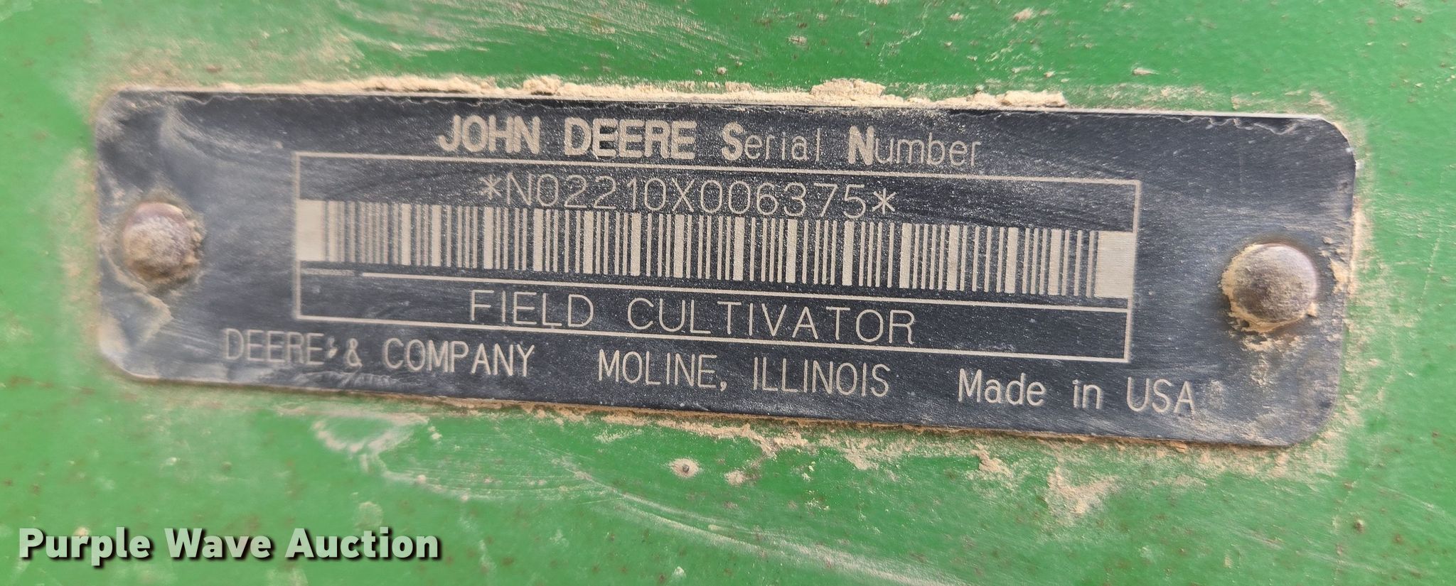 Purple Wave is selling a used Field Cultivator or Sweep Plow in Illinois. This item is a John Deere 2210 field cultivator with the following: Overall width: 39' 9", Serial: N02210X006375
