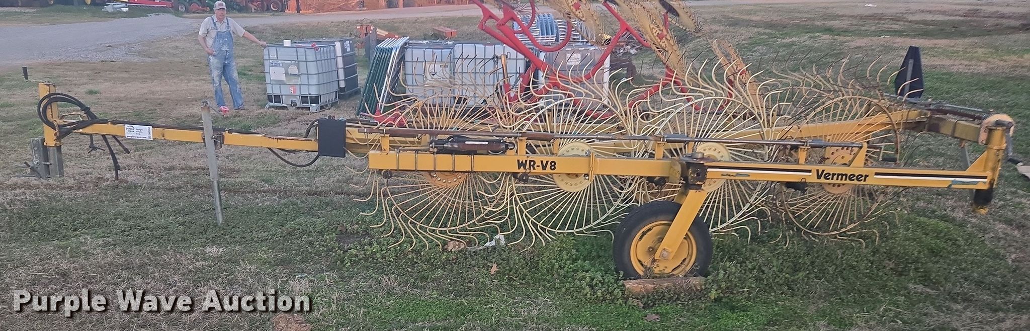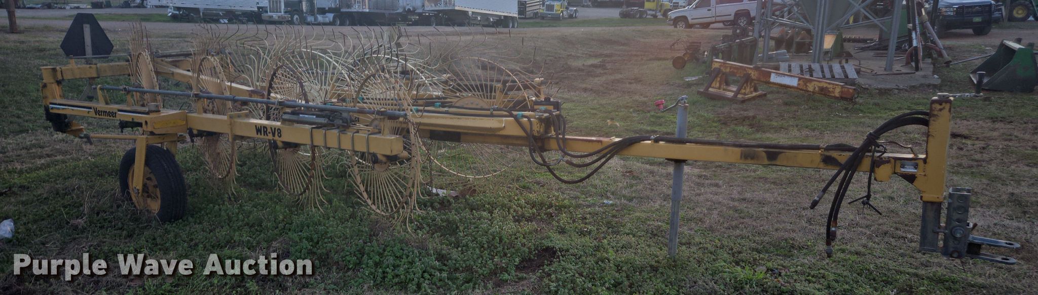 Purple Wave is selling a used Hay Rake in Alabama. This item is a Vermeer WR-V8 hay rake with the following: Wheels: 8, Diameter: 50", Hydraulic lift, Hydraulic fold, Ground driven