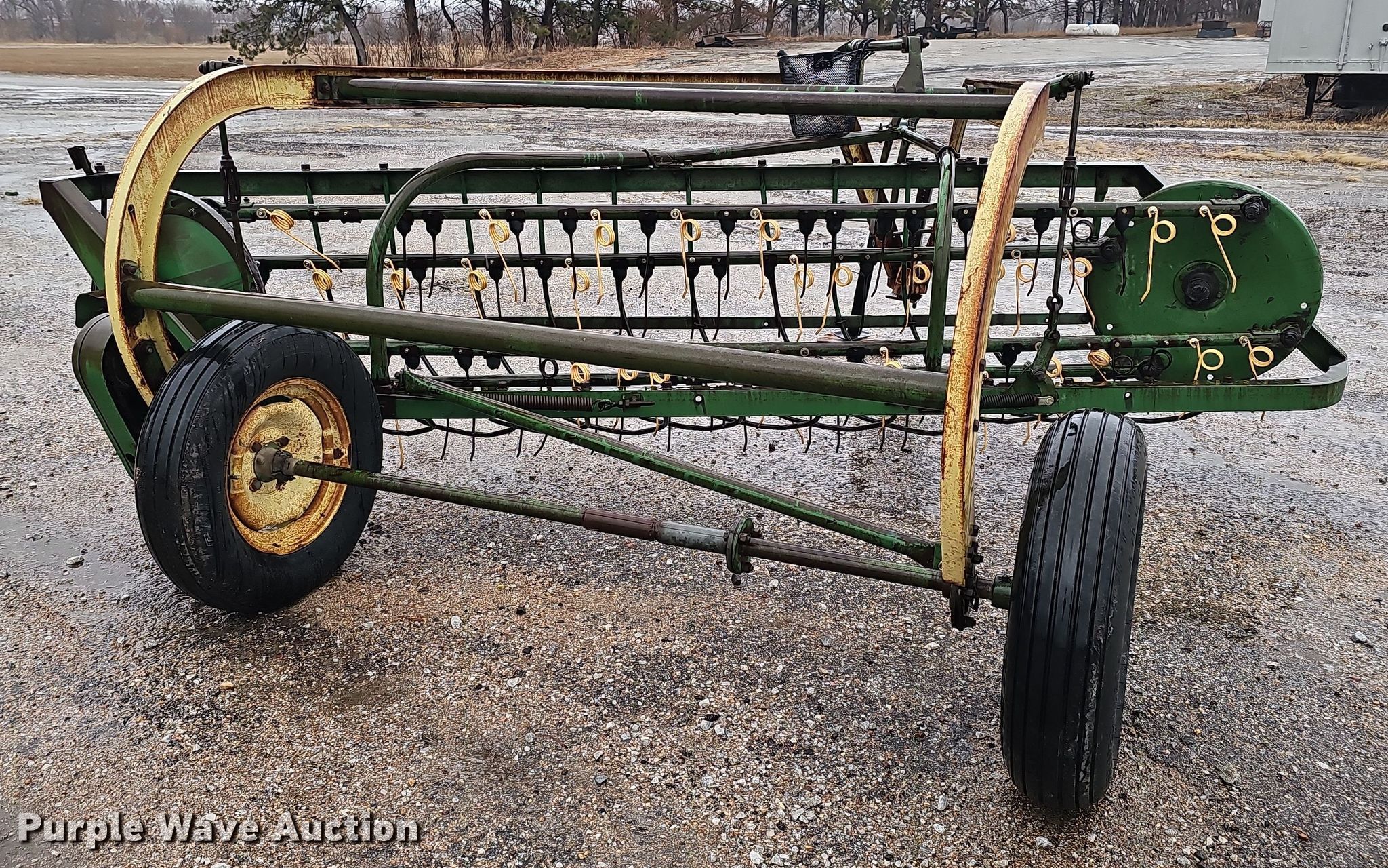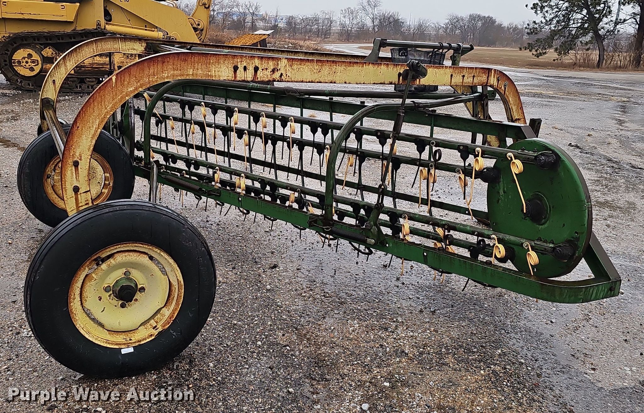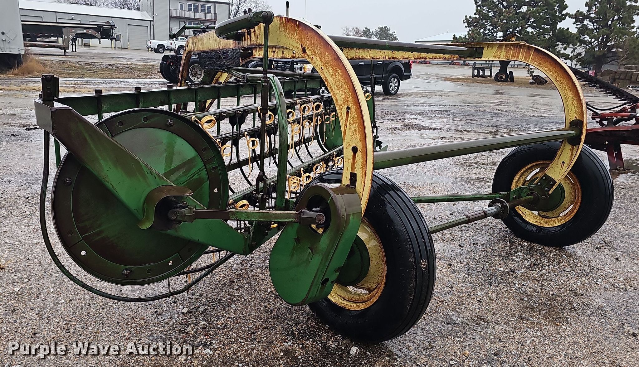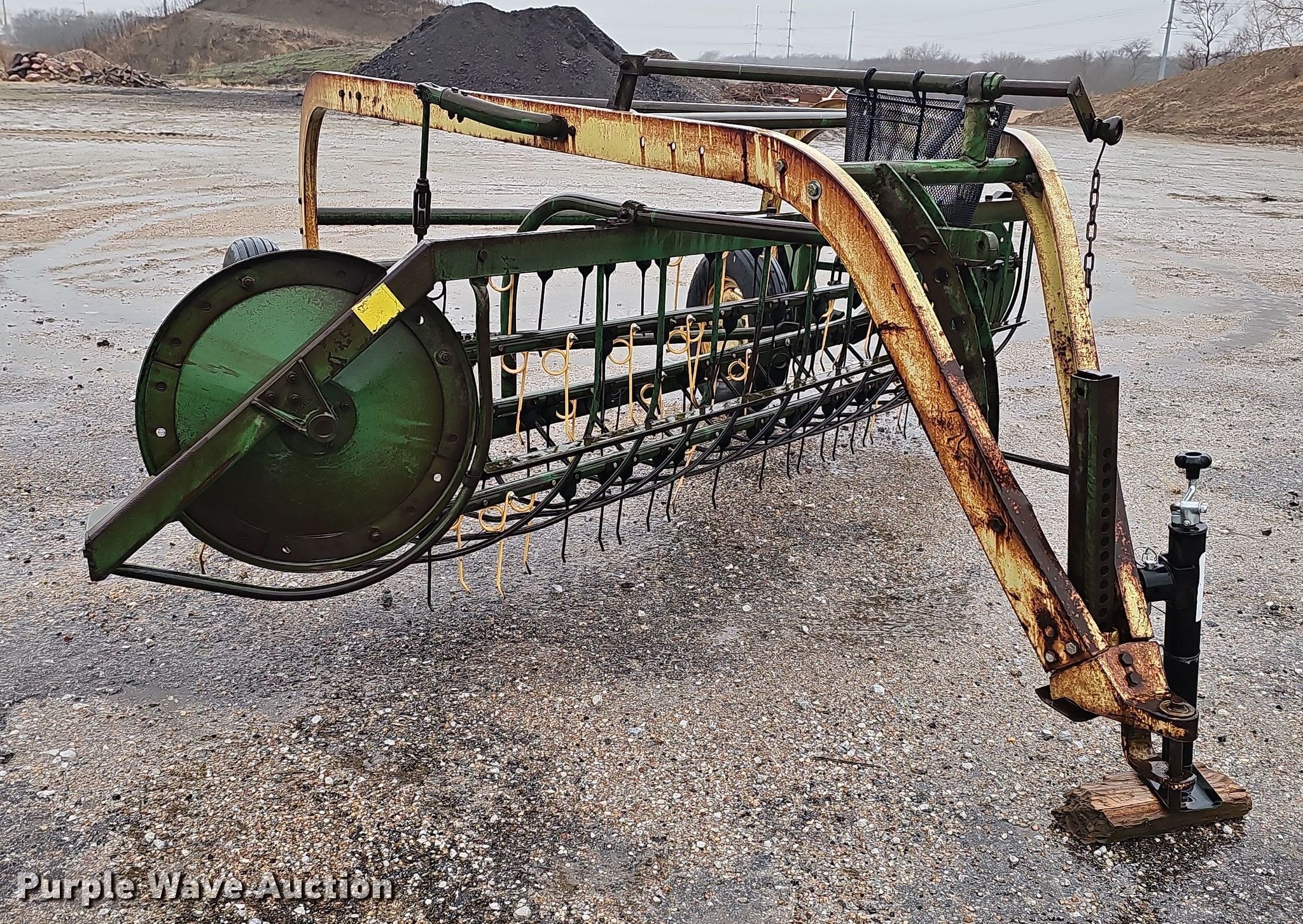 Purple Wave is selling a used Ag Equip. Other in Nebraska. This item is a Ag equipment with the following: Gill Manufacturing Co. 20A200 soil conditioner, Serial: 7371, Width: 72", International 1000 sickle mower, Serial: 0850000U004916, Width: 108", PTO: 540, Tire size: 4.80-8, John Deere 896A hay rake, Serial: 16651, Width: 10', Tire size: 6.70-15SL, Non-operational wheel bearing
