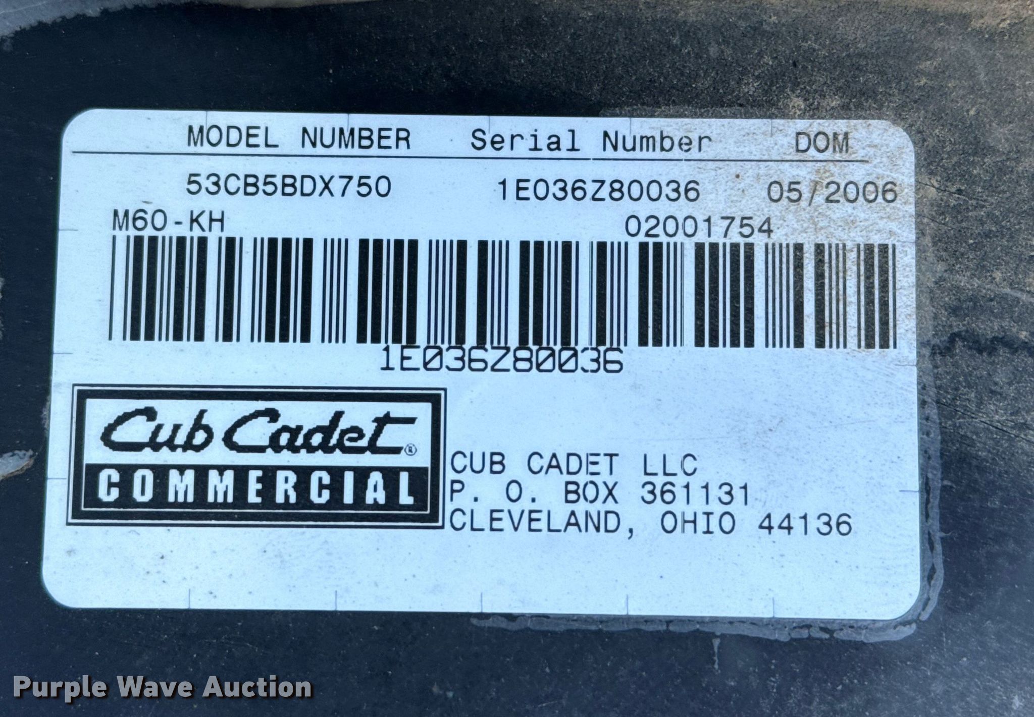 Purple Wave is selling a used Commercial Turf Mower in Texas. This item is a 2006 Cub Cadet M60–KH ZTR lawn mower with the following: Hours: Unknown, Cutting width: 60", Serial: 1E036Z80036