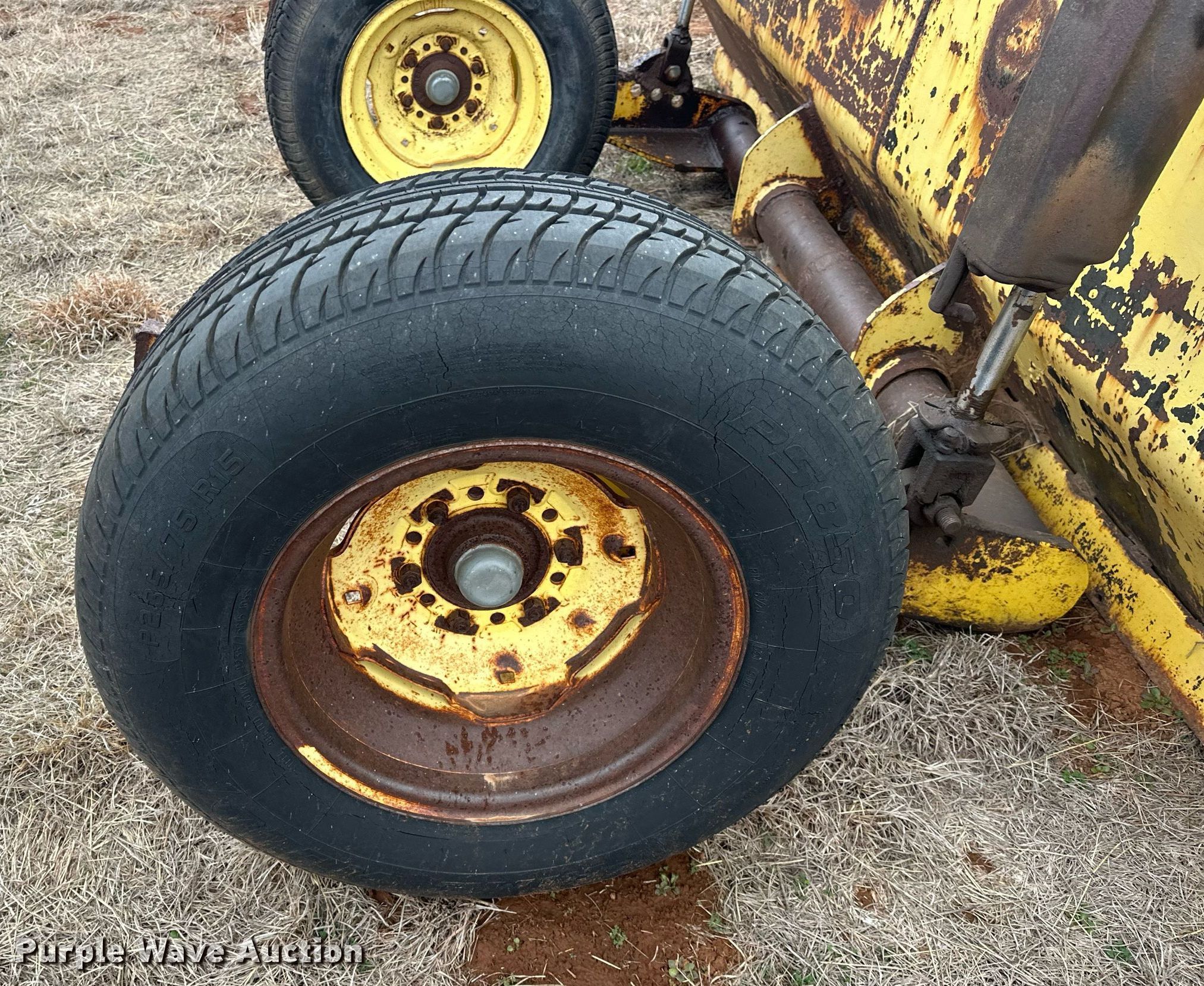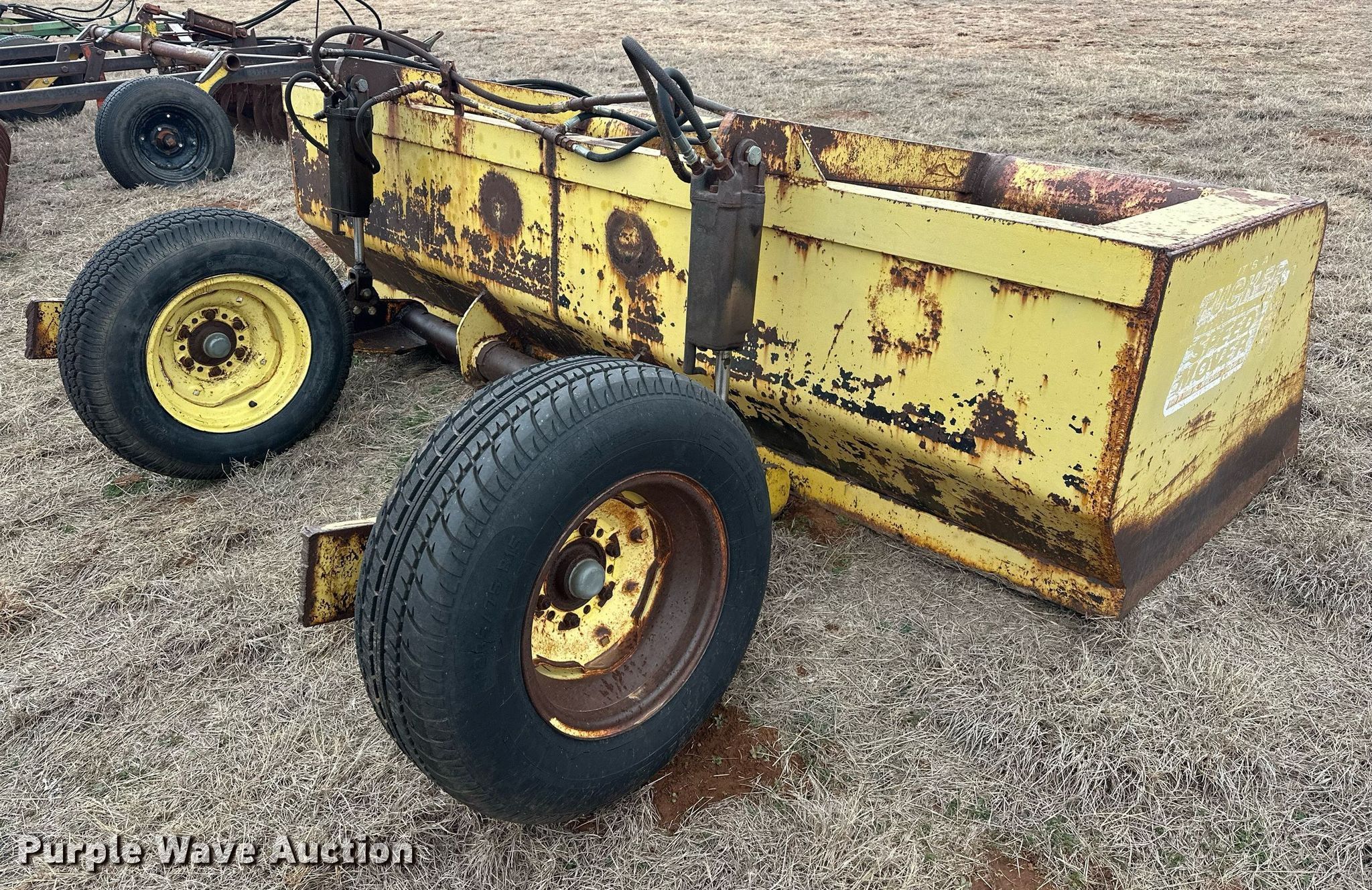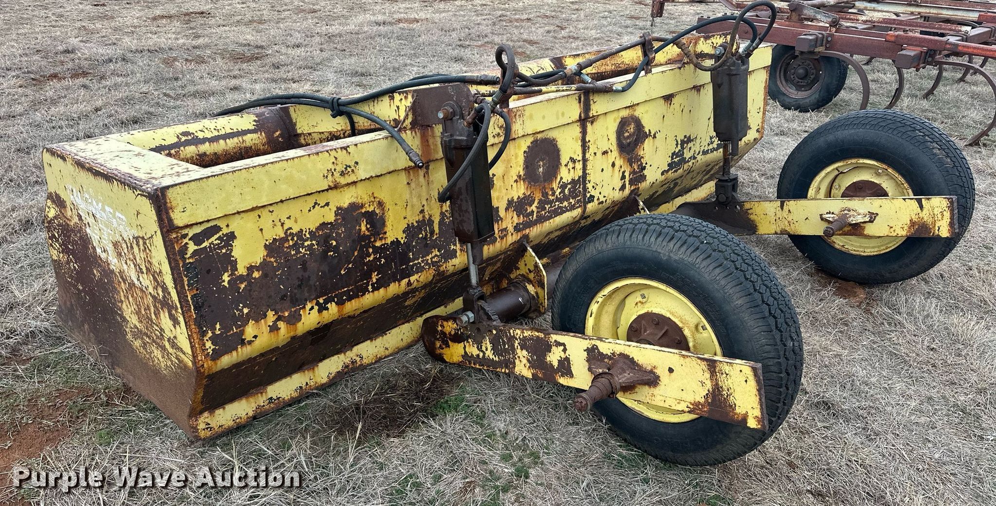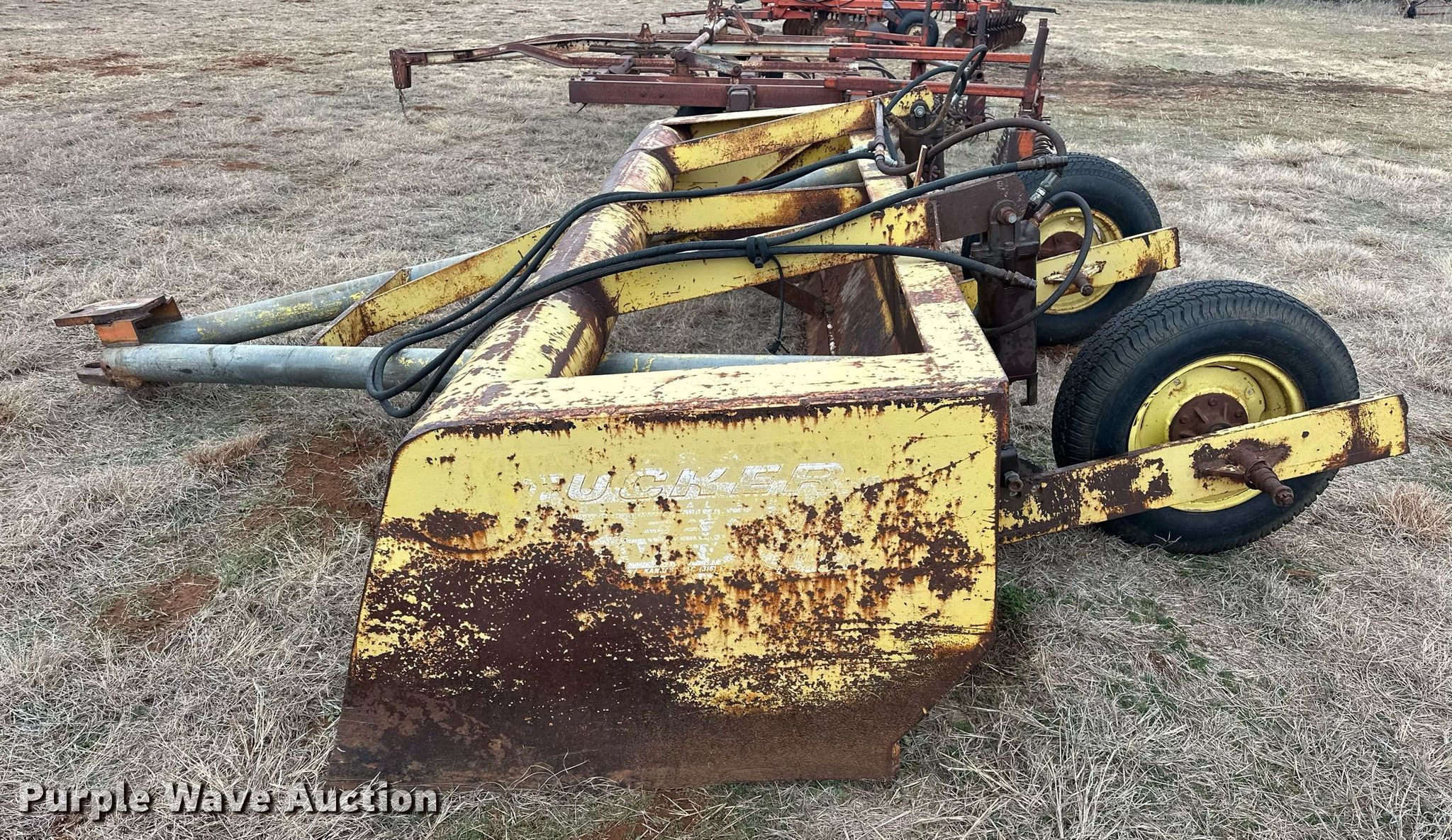Purple Wave is selling a used Pull Type Scraper in Oklahoma. This item is a Tucker Speed Mover box scraper with the following: Width: 10', Hydraulic lift, Tire size: P235/75R15