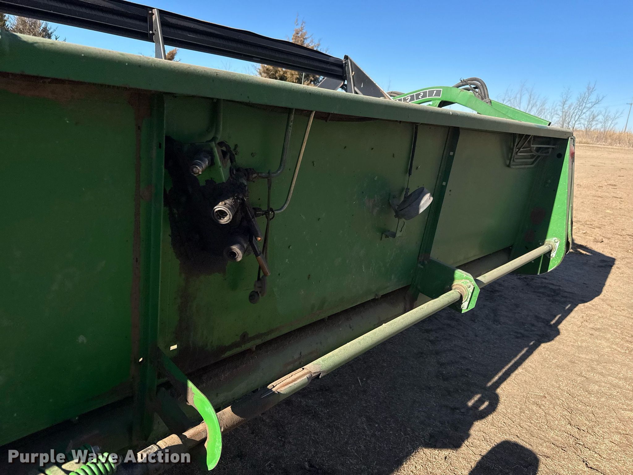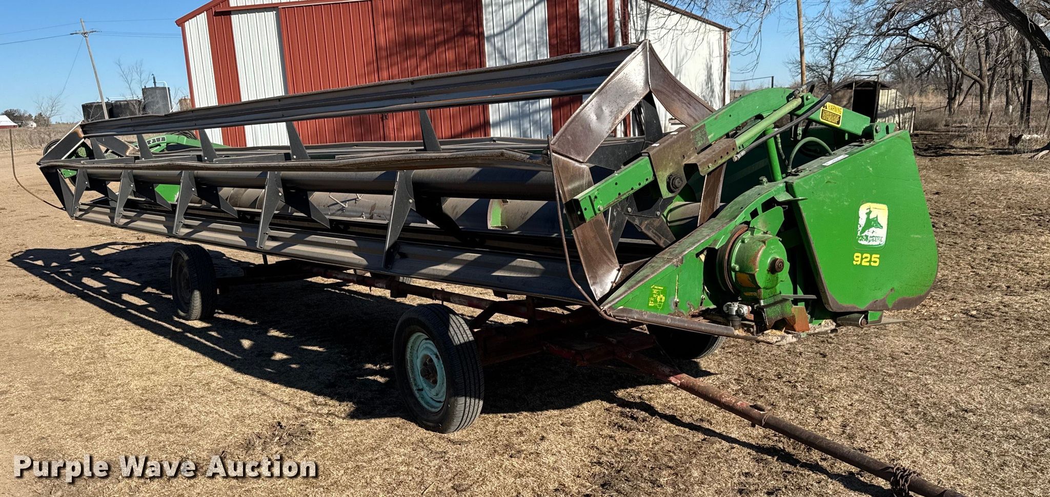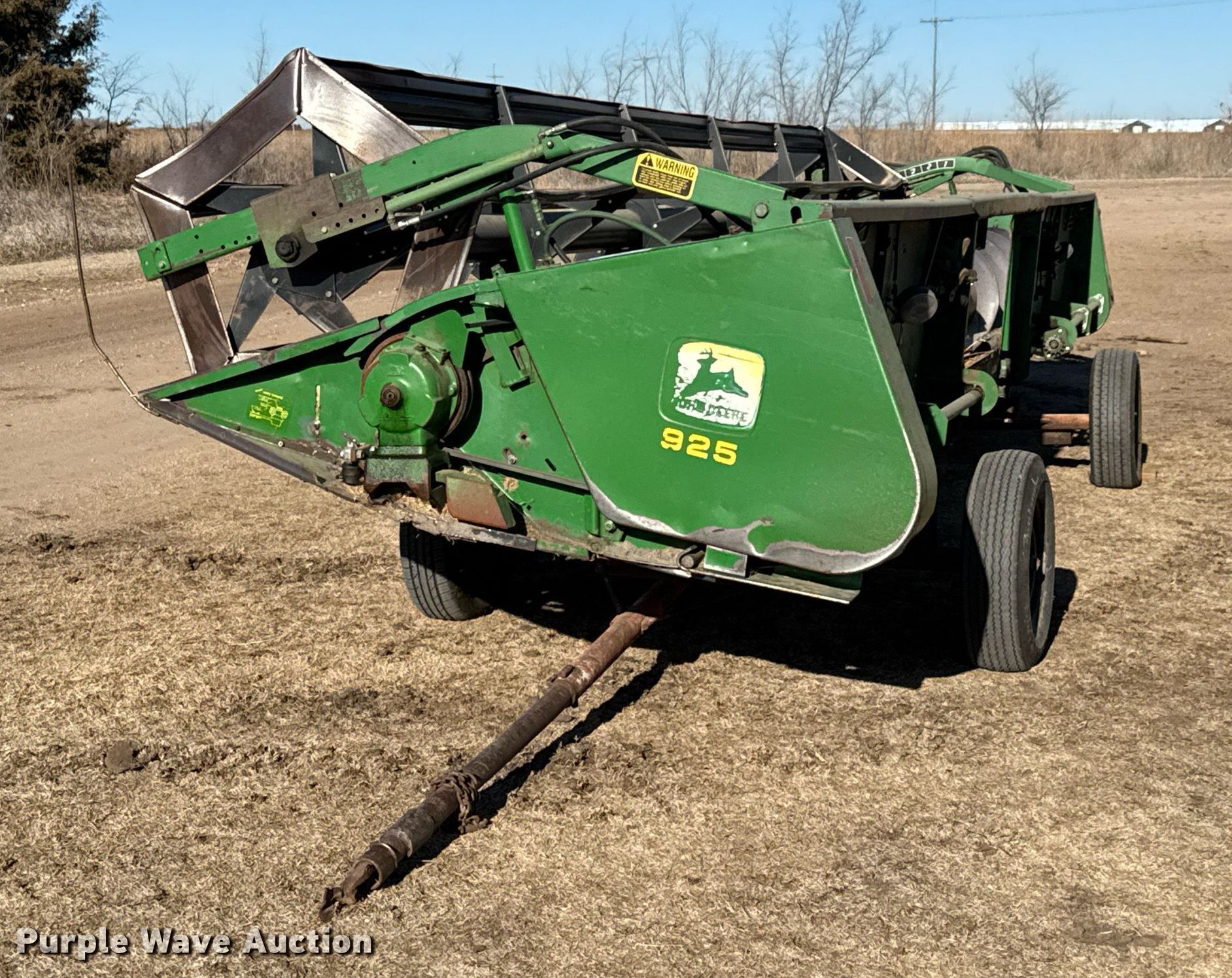Purple Wave is selling a used Platform or Stripper Head in Kansas. This item is a 1991 John Deere 925 rigid head with the following: Serial: H00925P641052