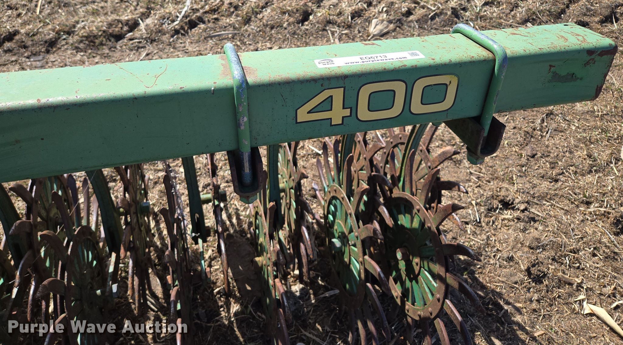 John Deere 400 rotary hoe. Overall width: 15' 5". Features Diameter: 18", Spacing: 3", Hitch: Three point. Pleasant Hill, MO 64080