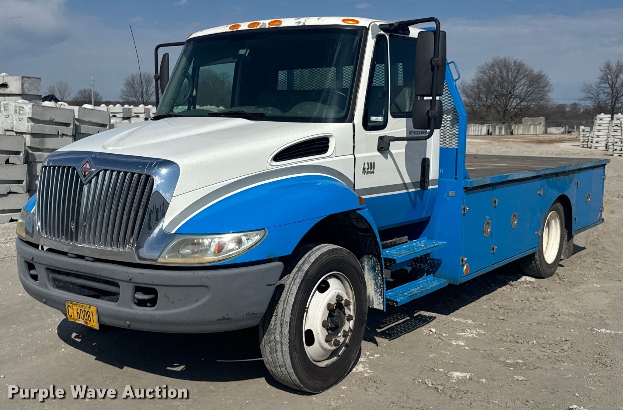 This 2004 International 4300 flatbed truck will sell to the highest bidder regardless of price.