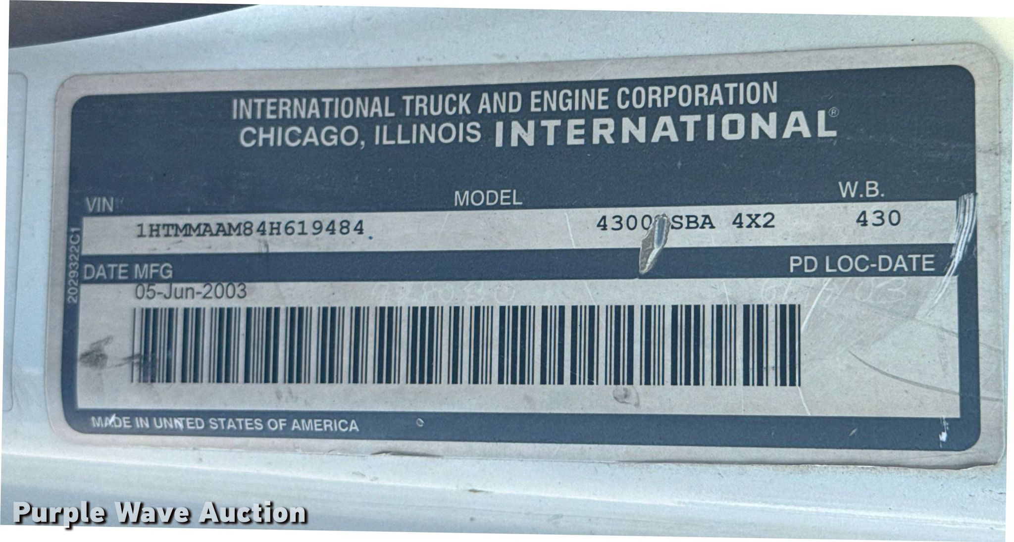 Purple Wave is selling a used Flat Bed Truck in Missouri. This item is a 2004 International 4300 flatbed truck with the following: Miles: 572,973 on odometer, VIN: 1HTMMAAM84H619484