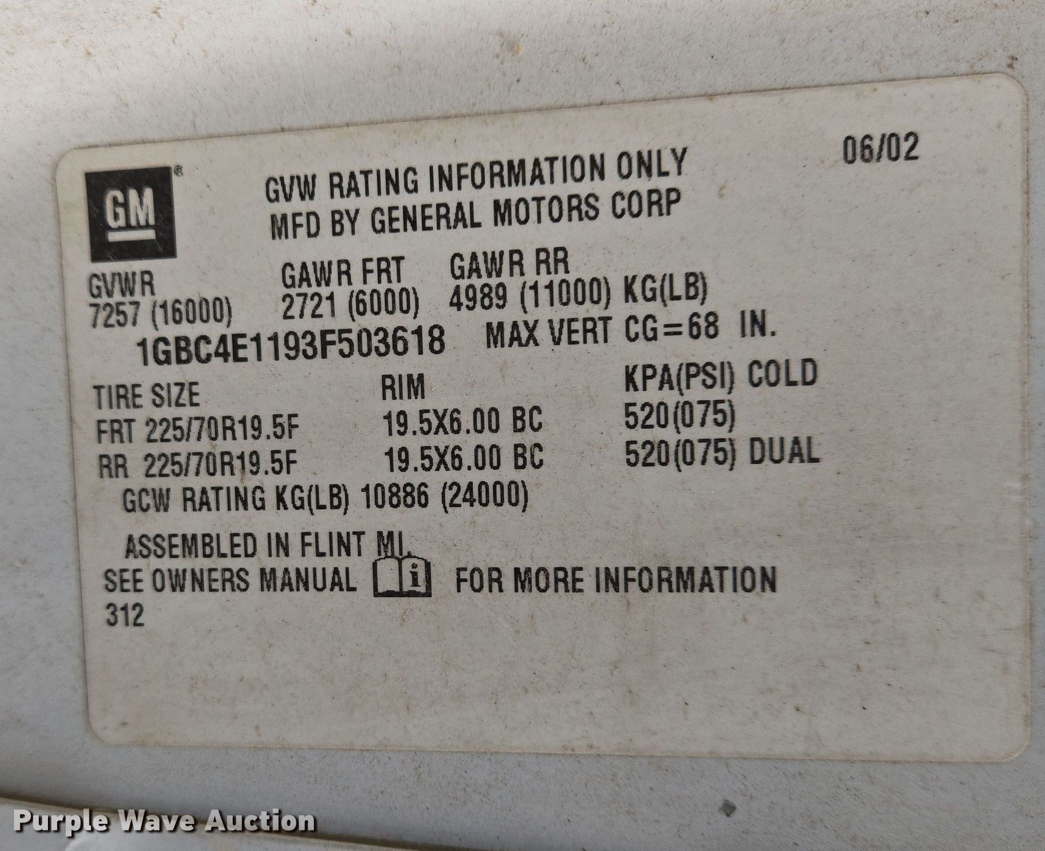 Purple Wave is selling a used Construction Dump Truck in Missouri. This item is a 2003 Chevrolet C4500 dump truck with the following: Miles: 154,462 on odometer, VIN: 1GBC4E1193F503618