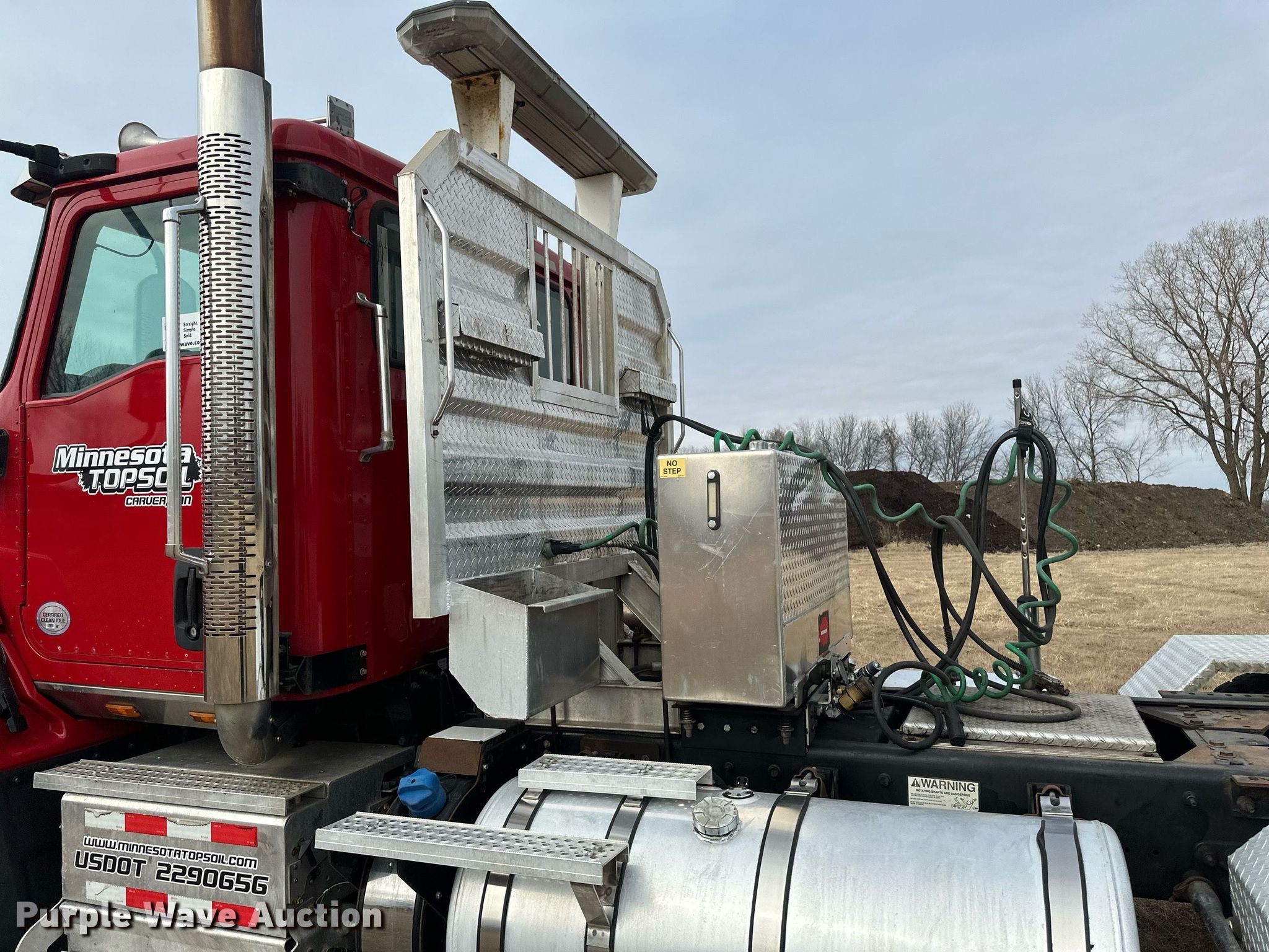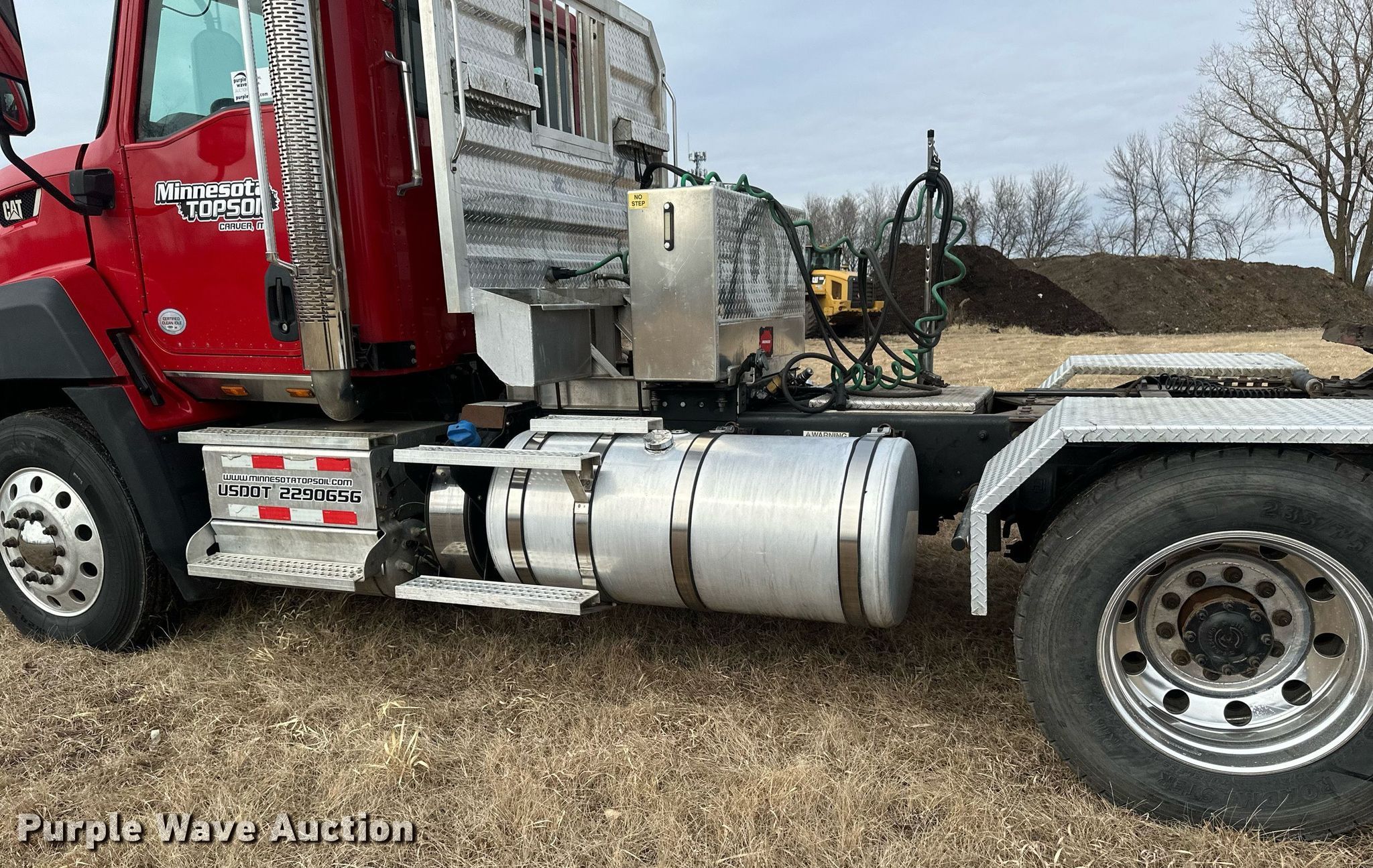 2015 Caterpillar CT660S semi truck. Miles: 256,039 on odometer, VIN: 3HSJGTKR4FN734029. Engine Caterpillar C13, Displacement: 13.0L, Cylinders: 6, Fuel type: Diesel, Engine brake. Transmission Automatic. Chassis Axles: Tandem, Differential lock: Full, Suspension: Air Dump valves, Brakes: Air, PTO, Wet kit, GVWR: 53,200 lbs FAWR: 13,200 lbs. Interior AC, Heat, Heated mirrors, Power windows, Power locks, Cruise control. Features Deck plate: Steel, Fifth wheel type: Air operated, Sliding, Fuel tank: Dual. Tires Front: 11R24.5, Rear: 285/75R24.5. Notes Dash warning indicator: Check engine. Minnesota title. Title distribution may be delayed up to 14 days from verification of funds. Minnesota Topsoil. Watertown, MN 55388