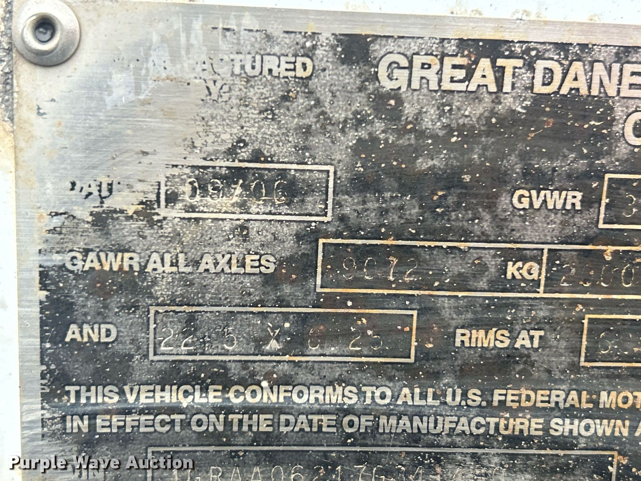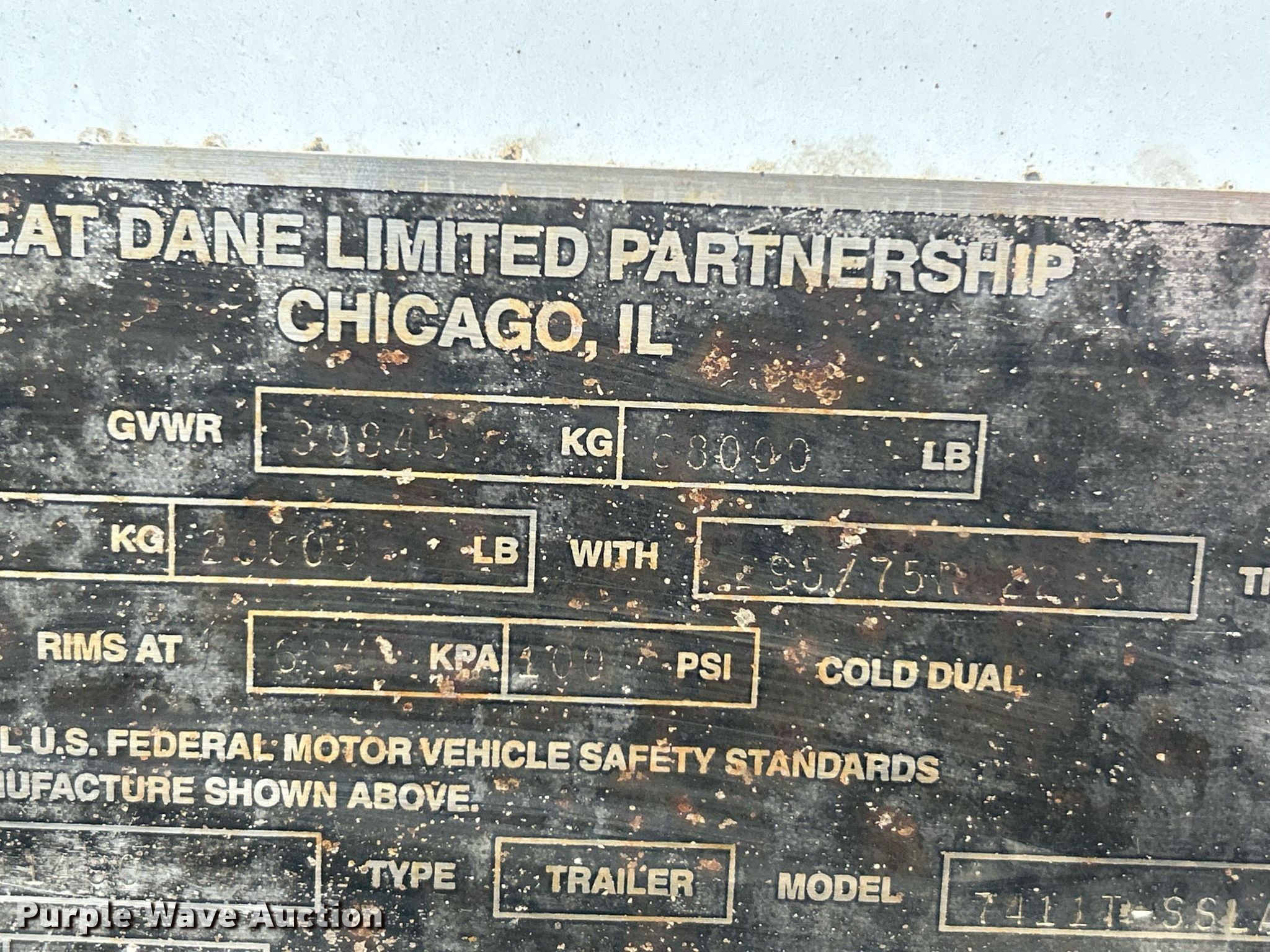Purple Wave is selling a used Dry Van Trailer in Missouri. This item is a 2007 Great Dane 7411T-SSLA dry van trailer with the following: VIN: 1GRAA06217G341490