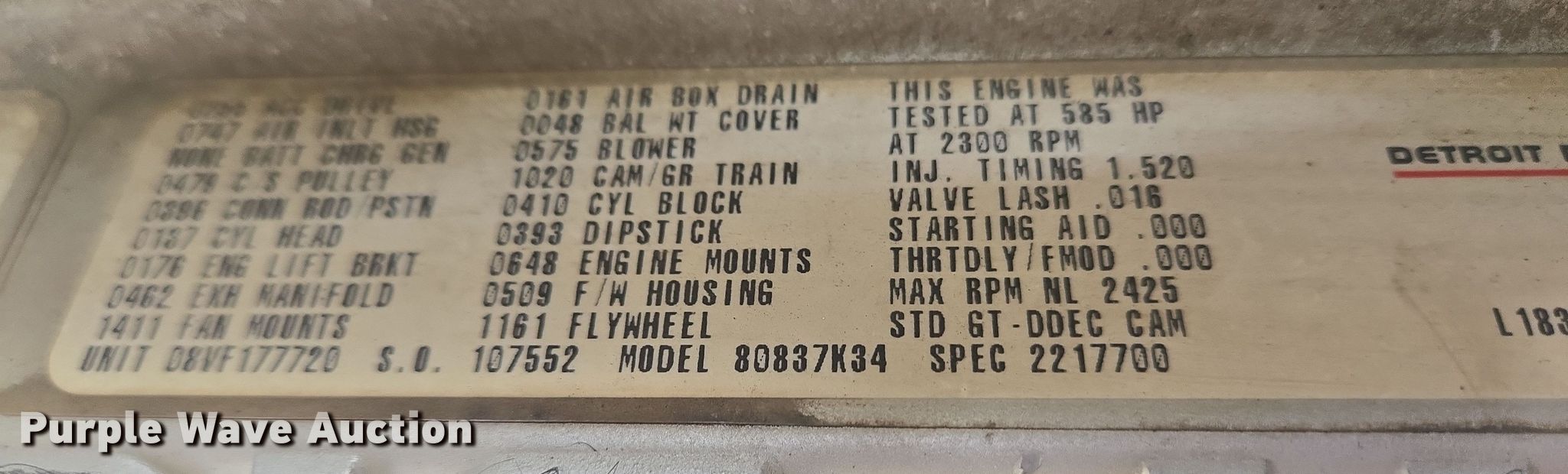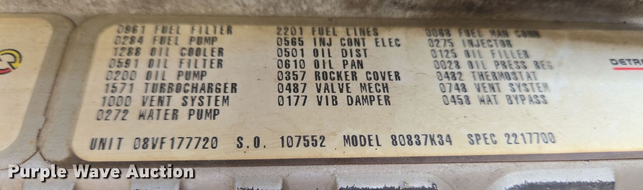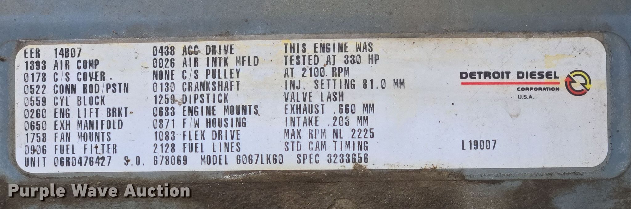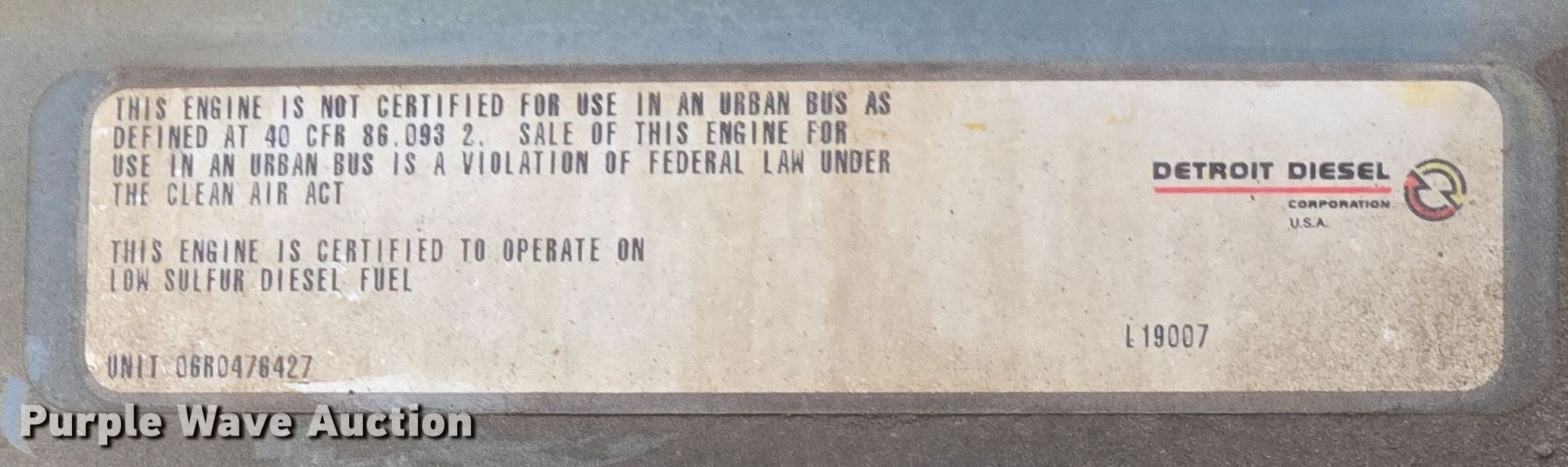 1999 Oshkosh H-2718B sweeper. Miles: 6,466 on odometer, Hours: 4,730 on meter, VIN: 10TBFPY14XS065585. Engine Detroit Diesel Series 60, Cylinders: 6, Fuel type: Diesel. Second engine Detroit Diesel 8V92, Cylinders: 8, Fuel type: Diesel. Transmission Automatic. Chassis Four wheel drive, Suspension: Spring, Brakes: Air, PTO, GVWR: 45,000 lbs FAWR: 27,000 lbs, RAWR: 18,000 lbs. Interior Heat, Heated mirrors. Features Fuel tank: Single. Tires Size: 395/85R20. Notes Broom missing, Attachment driveshaft removed at the yoke, Dead battery. Pennsylvania title. Seller is a Pennsylvania licensed motor vehicle dealer. The buyer may be required to pay sales tax and/or registration fees to the dealer prior to taking possession. Title will be assigned and distributed by the dealer. Please contact the seller for distribution questions. Somerset, PA 15501