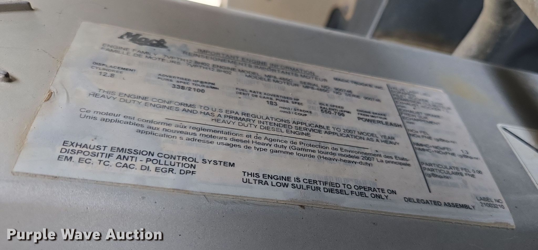 2008 Mack CHU613 semi truck. Miles: 426,239 on odometer, VIN: 1M1AN09YX8N001153. Engine Mack MP8, Displacement: 12.8L, Cylinders: 8, Fuel type: Diesel, HP: 415, Engine brake. Transmission Mack Maxitorque, Manual, Speed: 10. Chassis Axles: Tandem, Differential lock: Inter-axle, Suspension: Camelback, Brakes: Air, GVWR: 49,680 lbs FAWR: 11,680 lbs, RAWR: 19,000 lbs. Interior AC, Heat, Heated mirrors, Power windows, Power locks, Cruise control. Features Fifth wheel type: Air operated, Fuel tank: Dual. Tires Size: 11R24.5. Notes Dash warning indicator: DPF Service, Electrical fault, Windshield chipped or cracked. Texas title. Title distribution may be delayed up to 30 days from verification of funds. Dun Transportation & Stringing, Inc.. Sherman, TX 75092