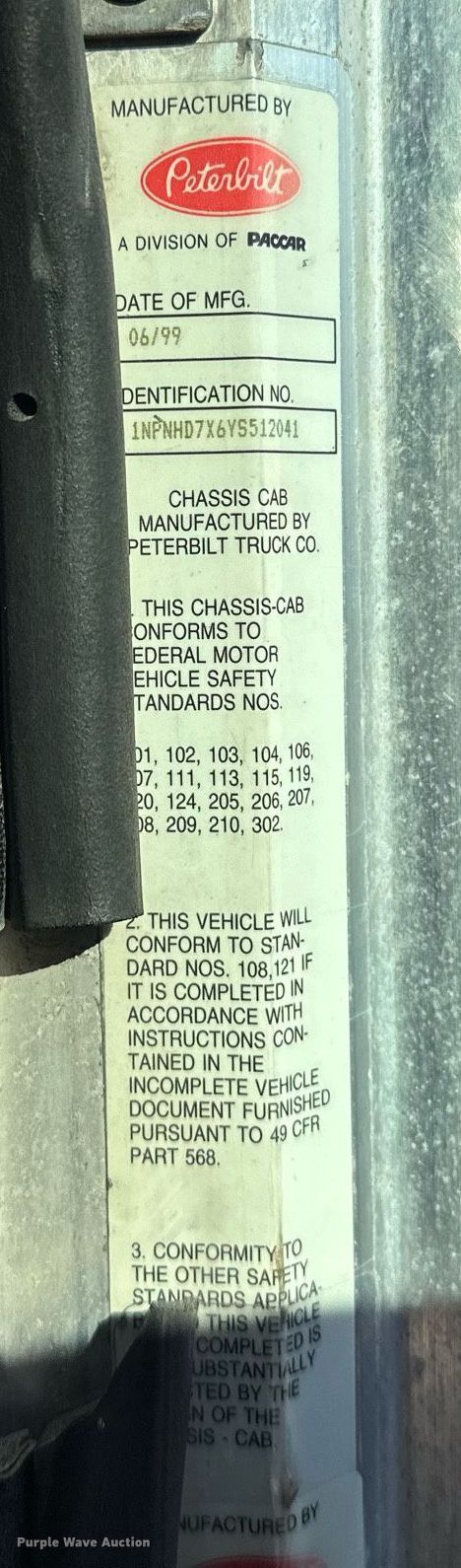 Purple Wave is selling a used Truck Chassis in Oklahoma. This item is a 2000 Peterbilt 330 truck cab and chassis with the following: Miles: 323,367 on odometer, Hours: 10,291 on meter, Miles: Unknown, VIN: 1NPNHD7X6YS512041