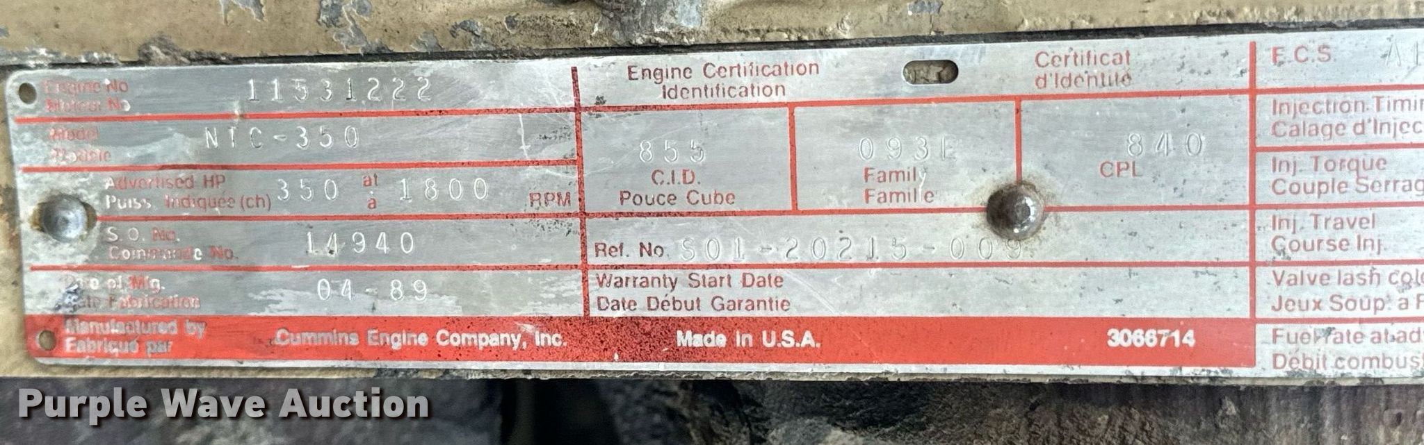 (2) Cummins engines | SOLD! April 03 Truck and Trailer Auction