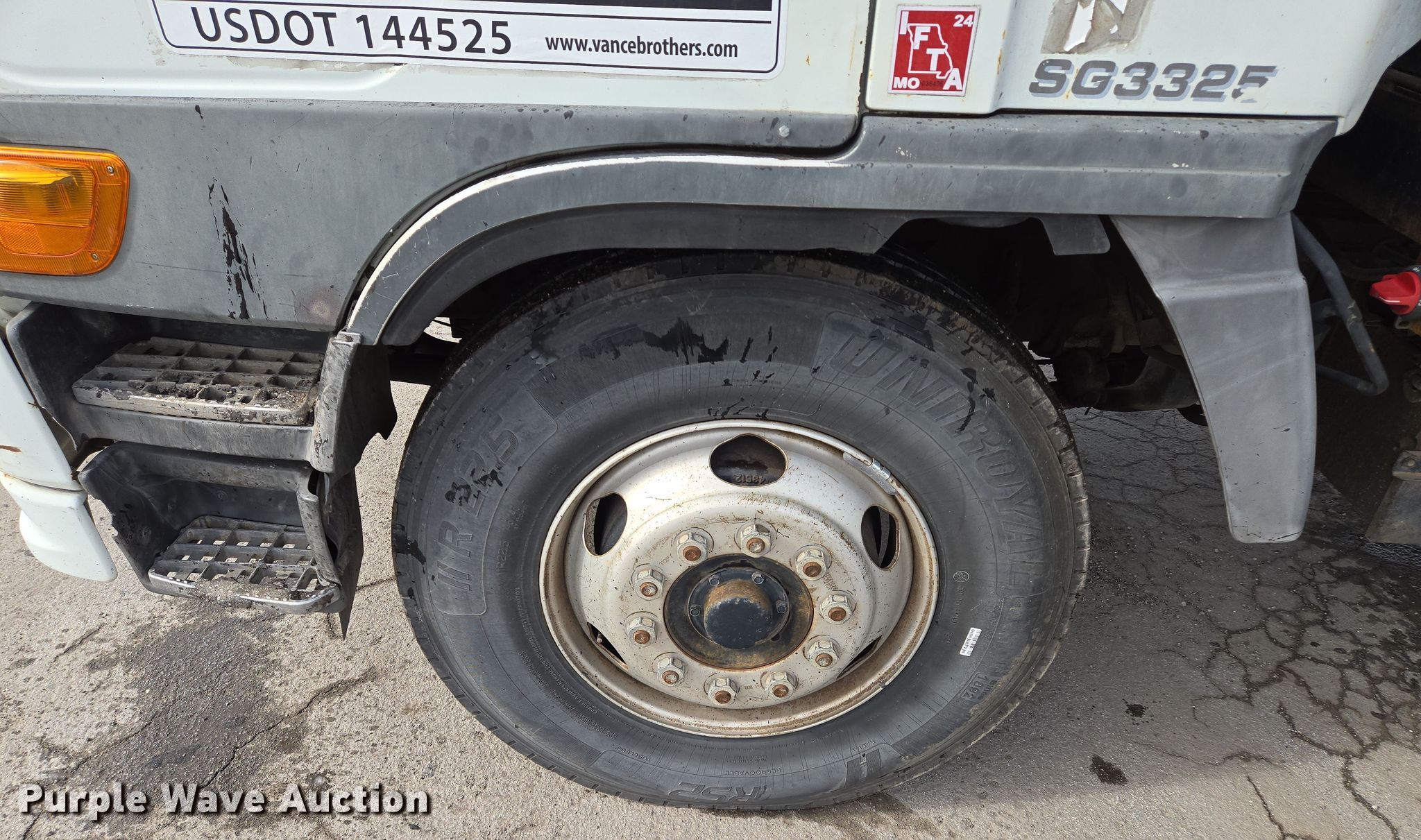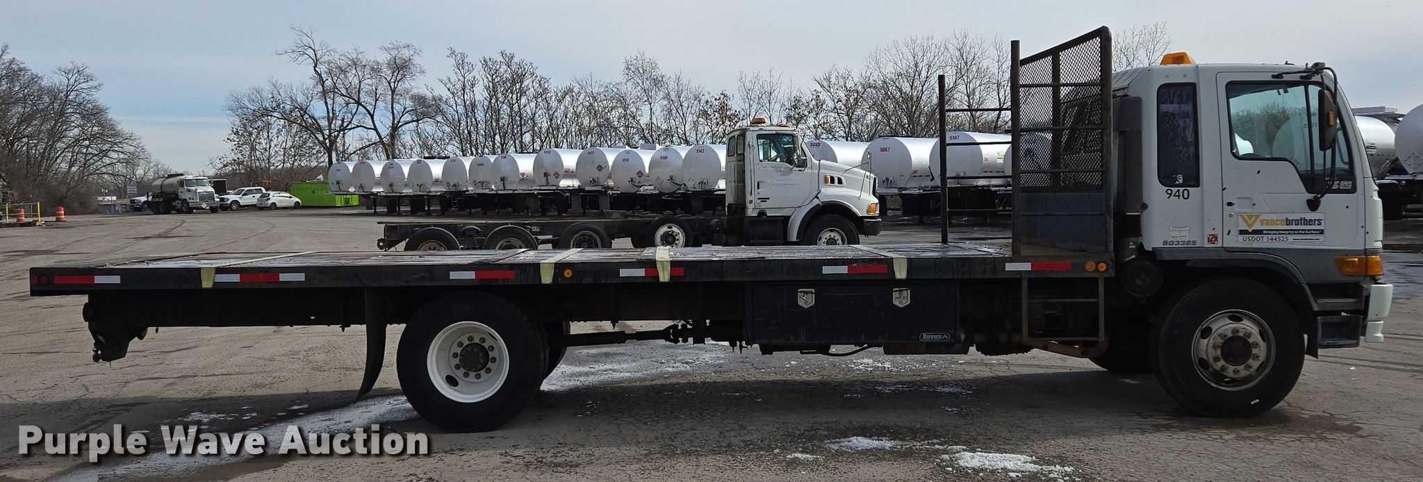 2004 Hino SQ3325 flatbed truck. Miles: 170,191 on odometer, VIN: JHBSG1JP541S10283, Unit #: 940. Engine Hino J08C-TR, Displacement: 7.6L, Cylinders: 6, Fuel type: Diesel. Transmission Allison, Automatic. Chassis Axles: Single, Suspension: Spring, Brakes: Air, GVWR: 32,850 lbs. Interior AC, Heat, Power windows. Features Flatbed 25' L x 101" W. Tires Size: 11R22.5. Notes Windshield chipped or cracked, Dead battery, Passenger door handle missing. Missouri title. Title distribution may be delayed up to 14 days from verification of funds. Vance Bros Inc.. Kansas City, MO 64130
