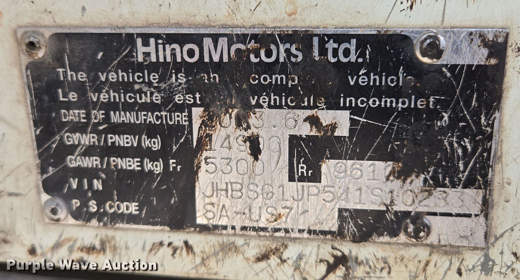 Purple Wave is selling a used Flat Bed Truck in Missouri. This item is a 2004 Hino SQ3325 flatbed truck with the following: Miles: 170,191 on odometer, VIN: JHBSG1JP541S10283, Unit #: 940