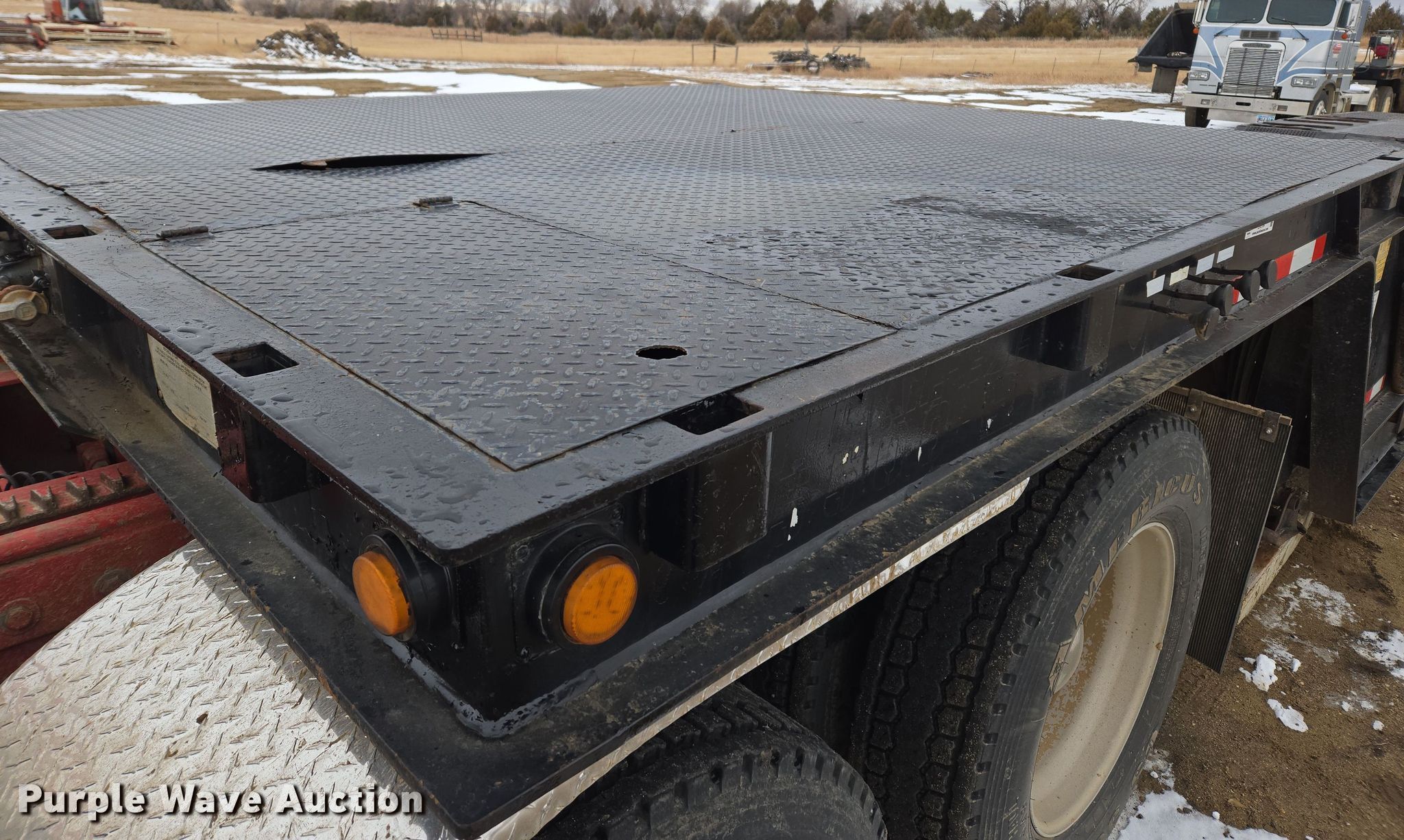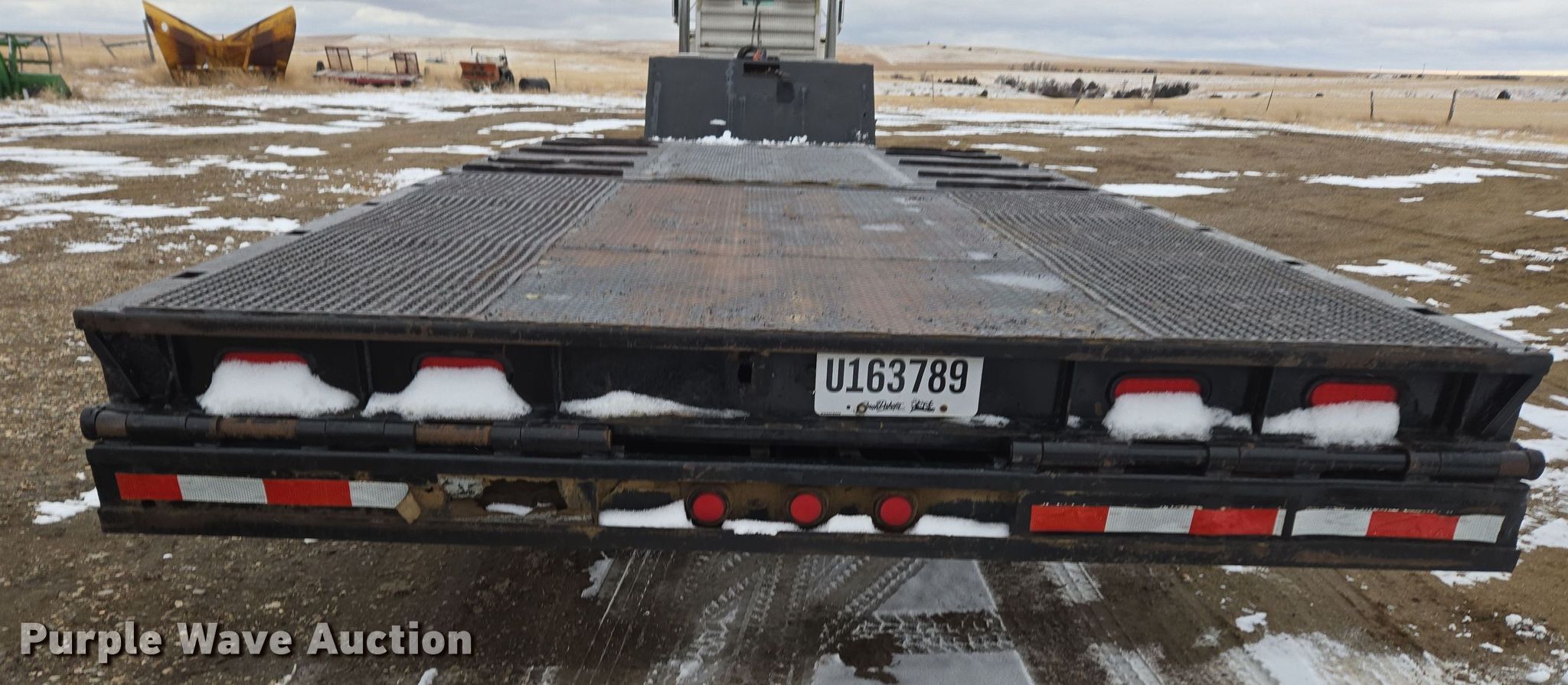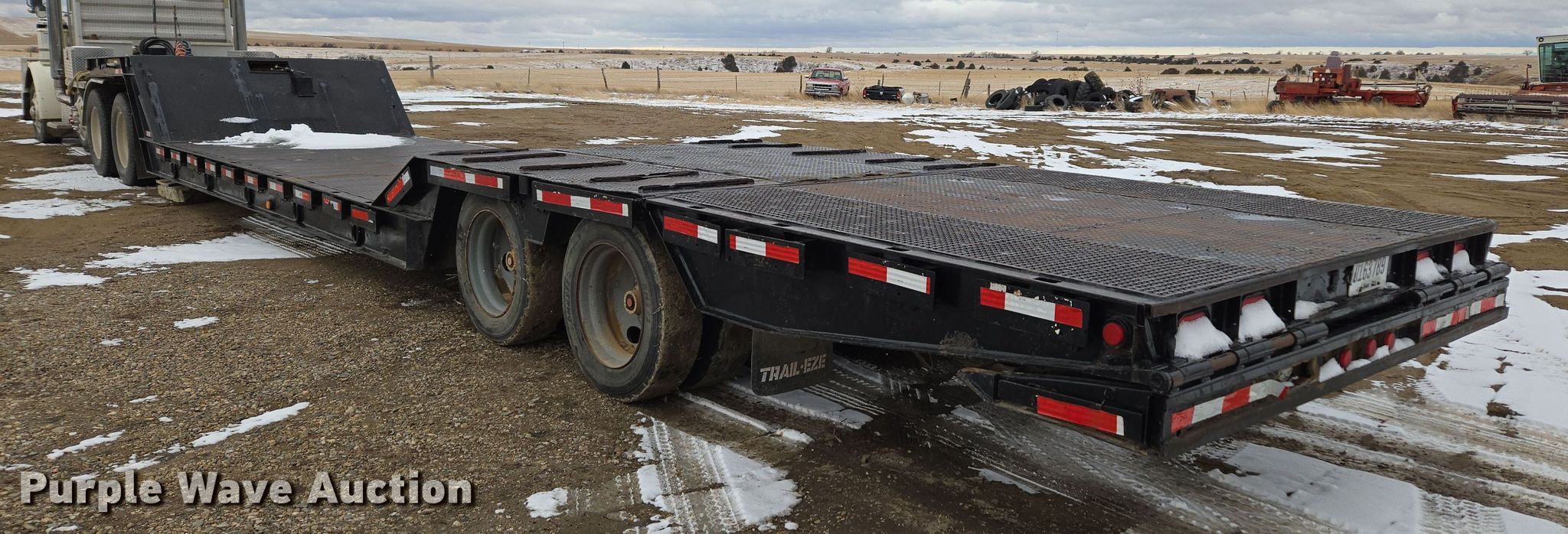 1992 Trail-Eze 5549-1329WS double drop deck hydraulic tail equipment trailer. VIN: 1DA72D84XNM010543. Dimensions Overall: 49' L x 102" W, Deck: 19' L x 102" W, Top deck length: 9', Rear deck length: 15' 10", Hydraulic tail length: 8'. Features Deck type: Steel, Outriggers: Pull-out Board size: 30", Winch Broken Arrow. Chassis Landing gear: Dual, Suspension: Air, Brakes: Air, Axles: Tandem, GVWR: 78,020 lbs, GAWR: 20,280 lbs. Tires Steel wheels, Size: 255/70R22.5. Notes Semi truck not included. South Dakota title. Title distribution may be delayed up to 14 days from verification of funds. Holsether Trucking. Wall, SD 57790