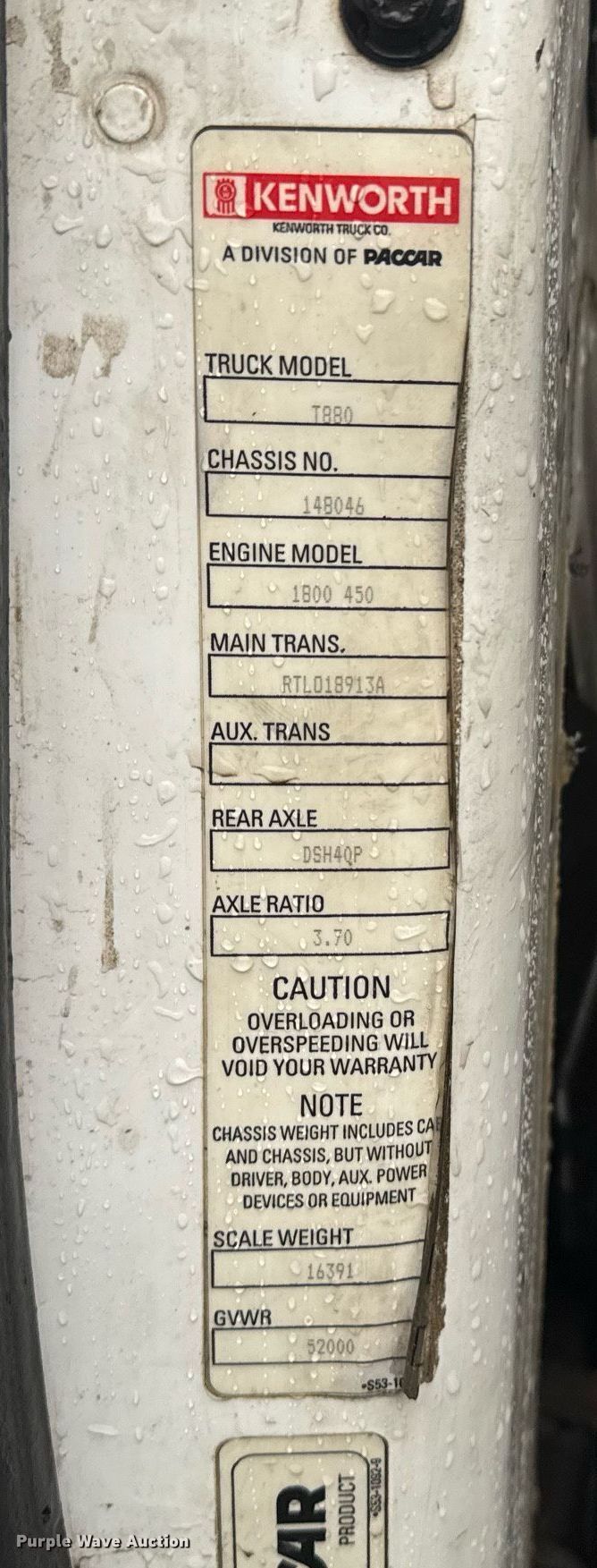 Purple Wave is selling a used Truck Tractor in South Carolina. This item is a 2017 Kenworth T880 semi truck with the following: Miles: 575,329 on odometer, Hours: 25,190 on meter, VIN: 1XKZD49X9HJ148046, Unit #: 82314624