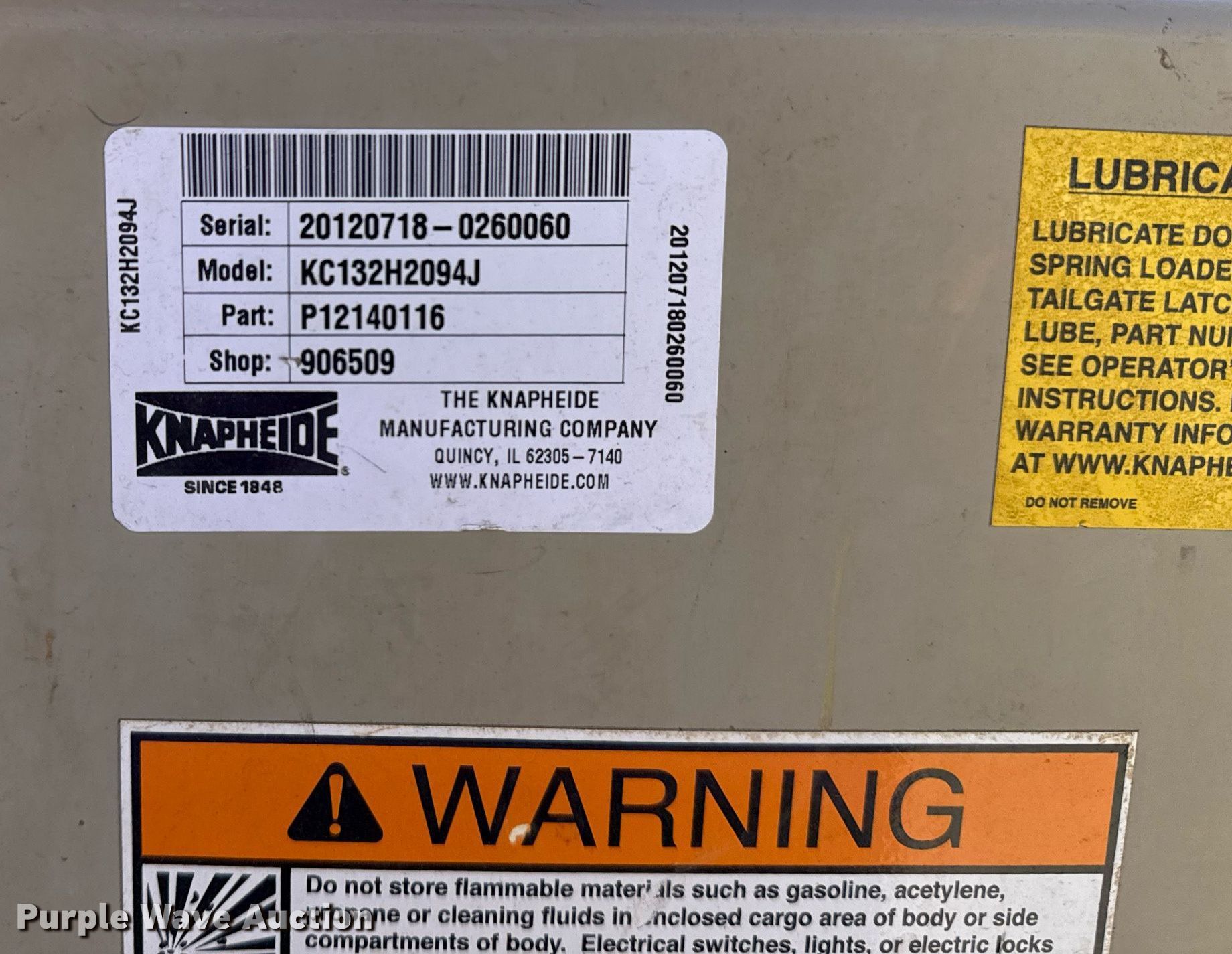 2012 Dodge Ram 5500HD Crew Cab utility / service truck. Miles: 135,681 on odometer, Engine hours: 11,503 on meter, VIN: 3C7WDMFL4CG163437. Engine Displacement: 6.7L, Cylinders: 6, Fuel type: Diesel, HP: 305. Transmission Automatic. Interior AC, Heat, Heated mirrors, Power windows, Power locks, Cruise control, Auxiliary controls, Brake Controller. Features Utility bed Knapheide KC132H2094J, 11' 1" L x 94" W. Tires Size: 225/70R19.5. Notes Dash warning indicator: Check engine. Oklahoma title. Title distribution may be delayed up to 14 days from verification of funds. TLS Group, Inc. Tulsa, OK 74107