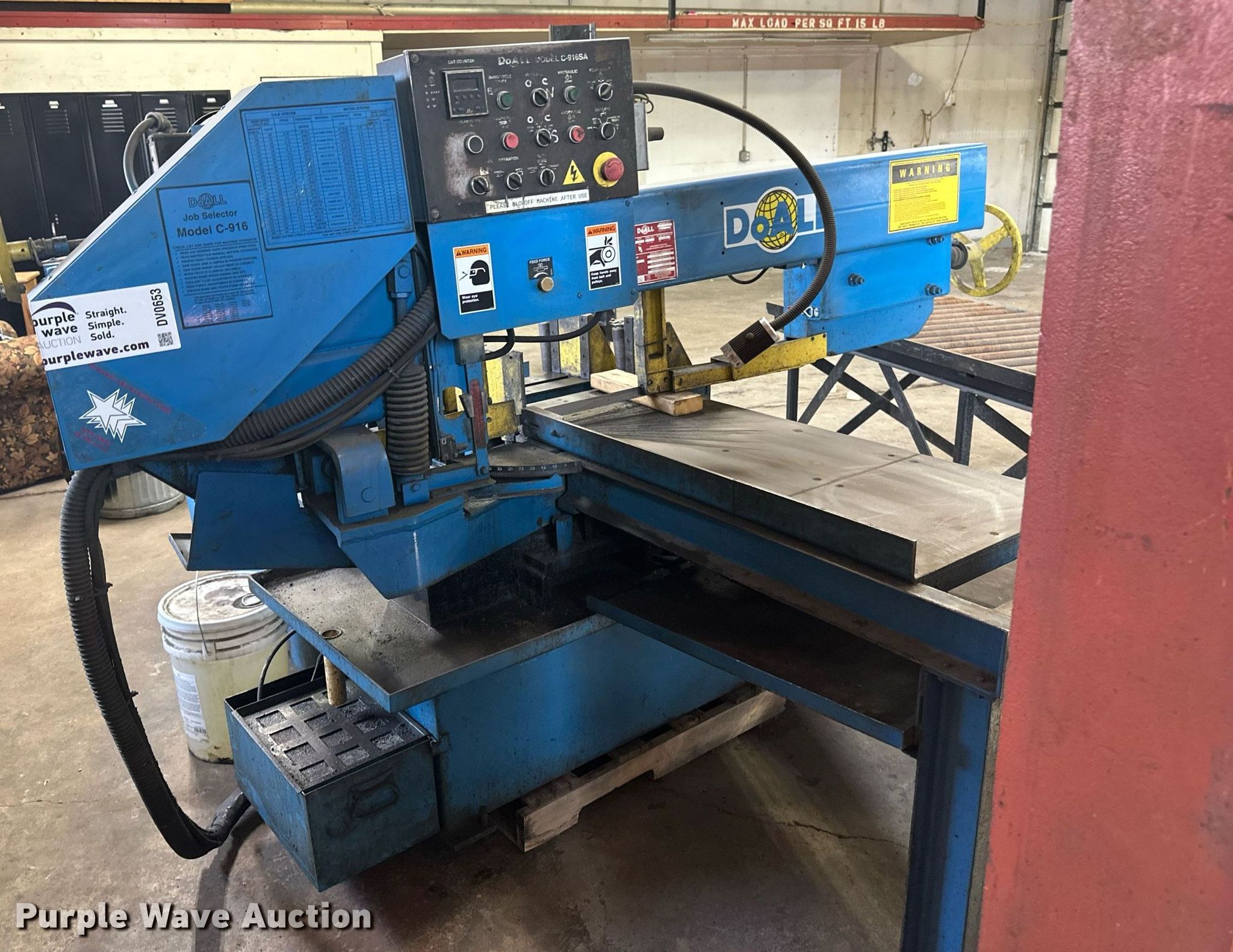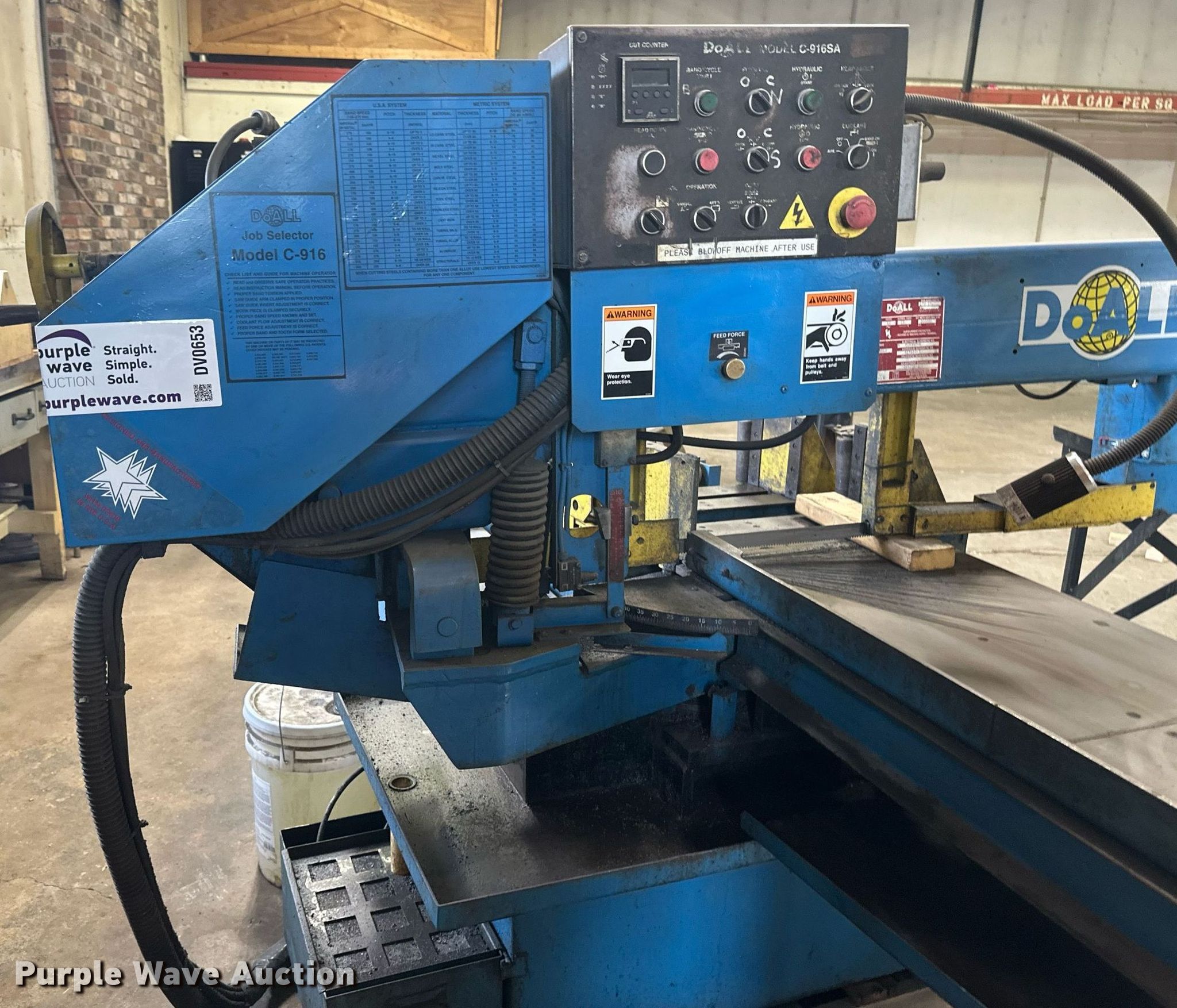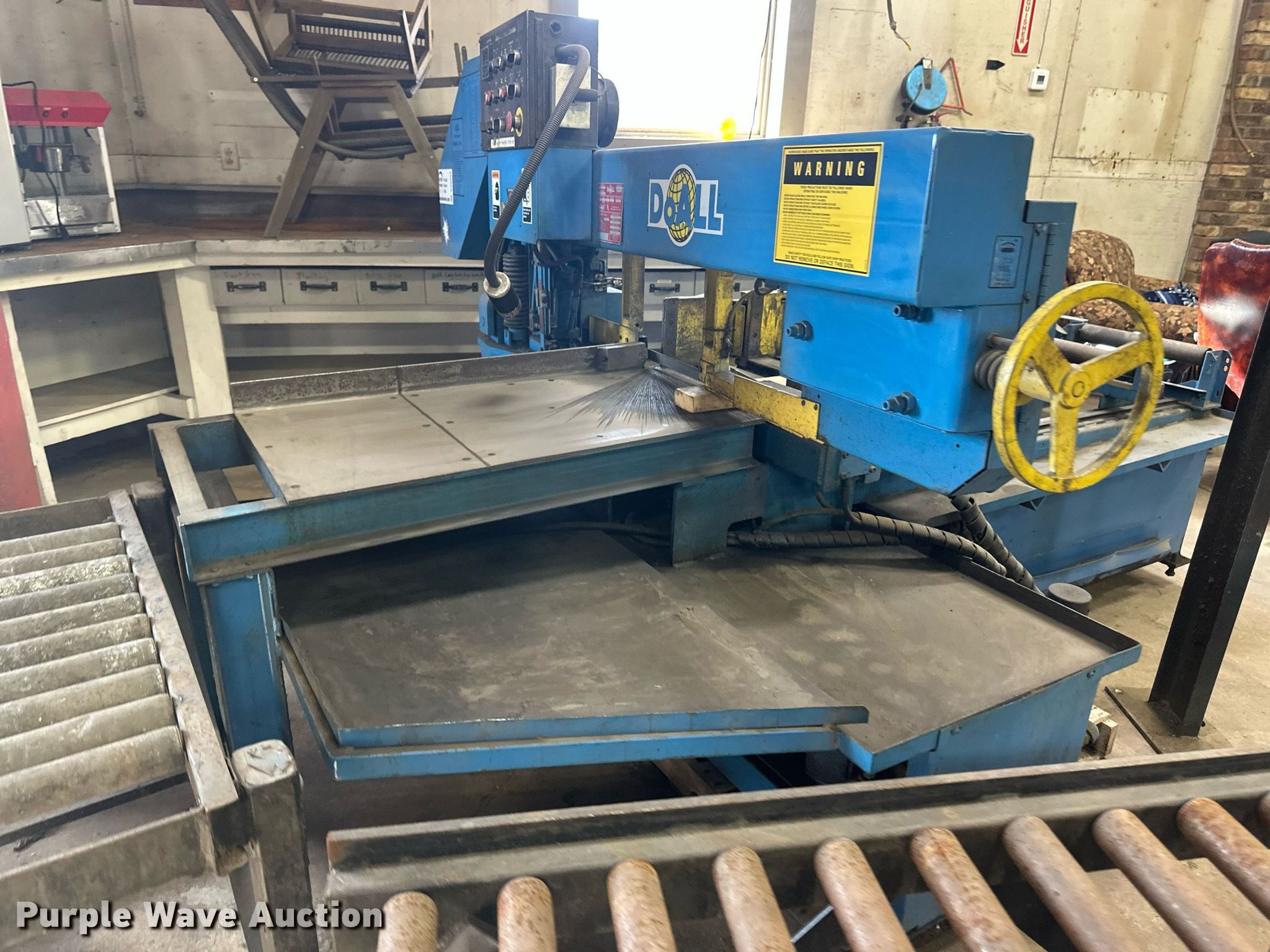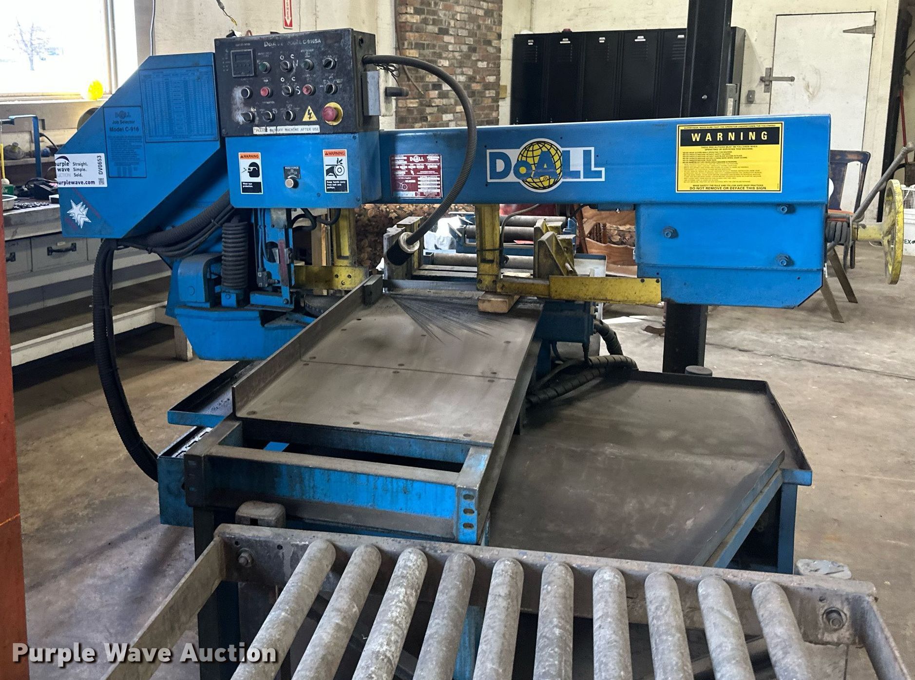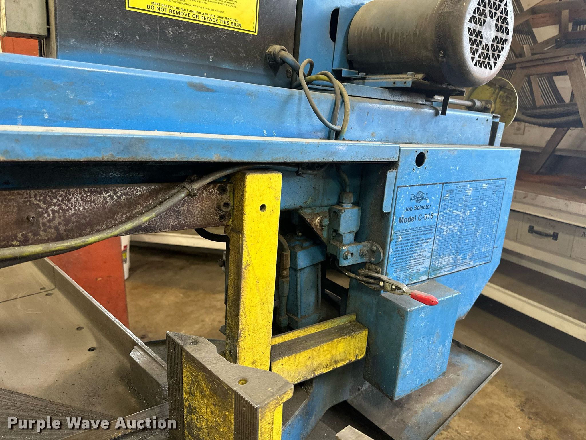 Purple Wave is selling a used Metal Cutting Saw in Minnesota. This item is a DoAll C916SA metal band saw with the following: Baldor, HP: 2, kW: 1.5, Volts: 200, Phase: Three