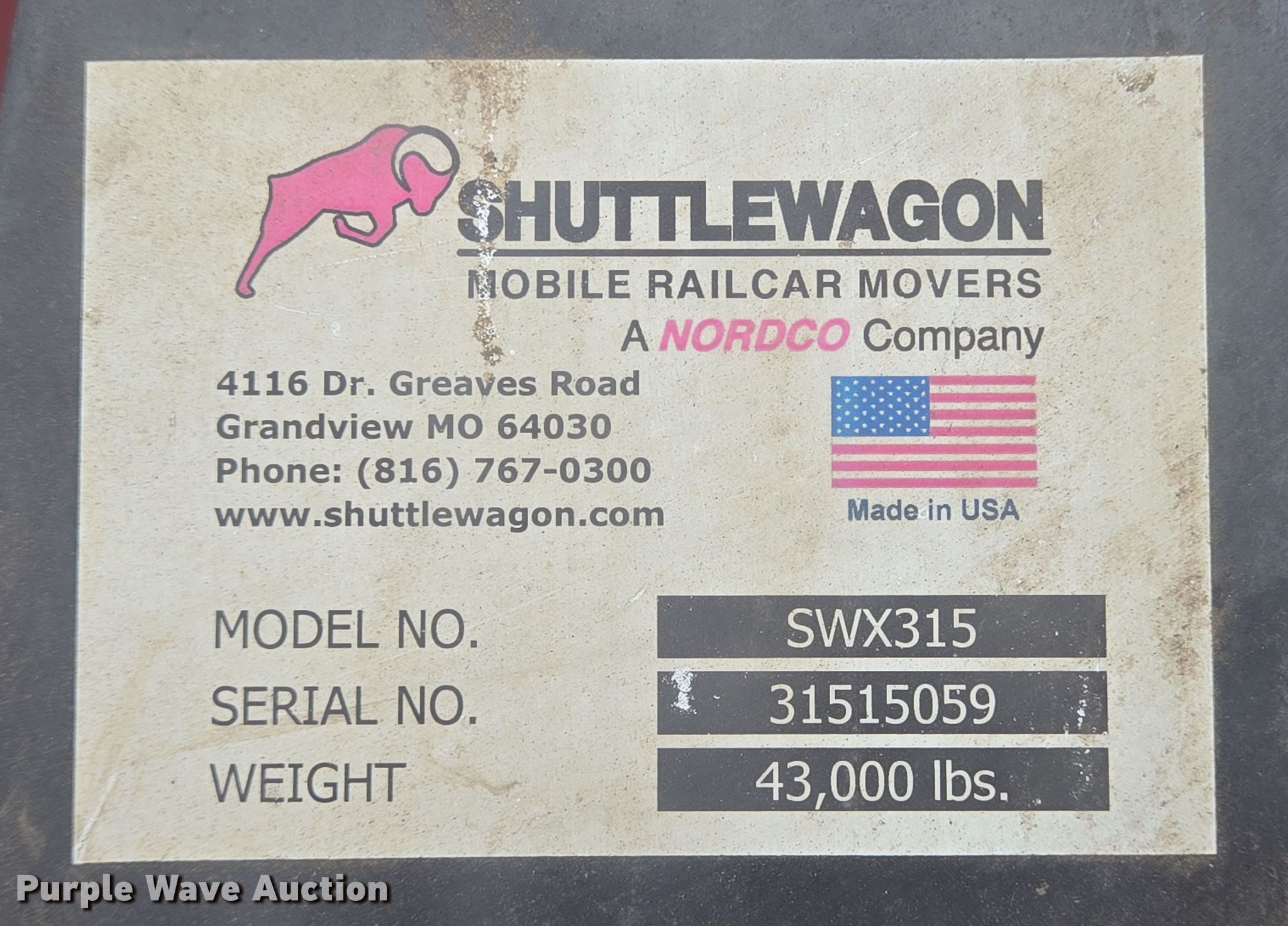 Purple Wave is selling a used Other Industrial or Business in Texas. This item is a 2015 ShuttleWagon SWX315 railcar mover with the following: Engine hours: 15,284 on meter, VIN: 31515059