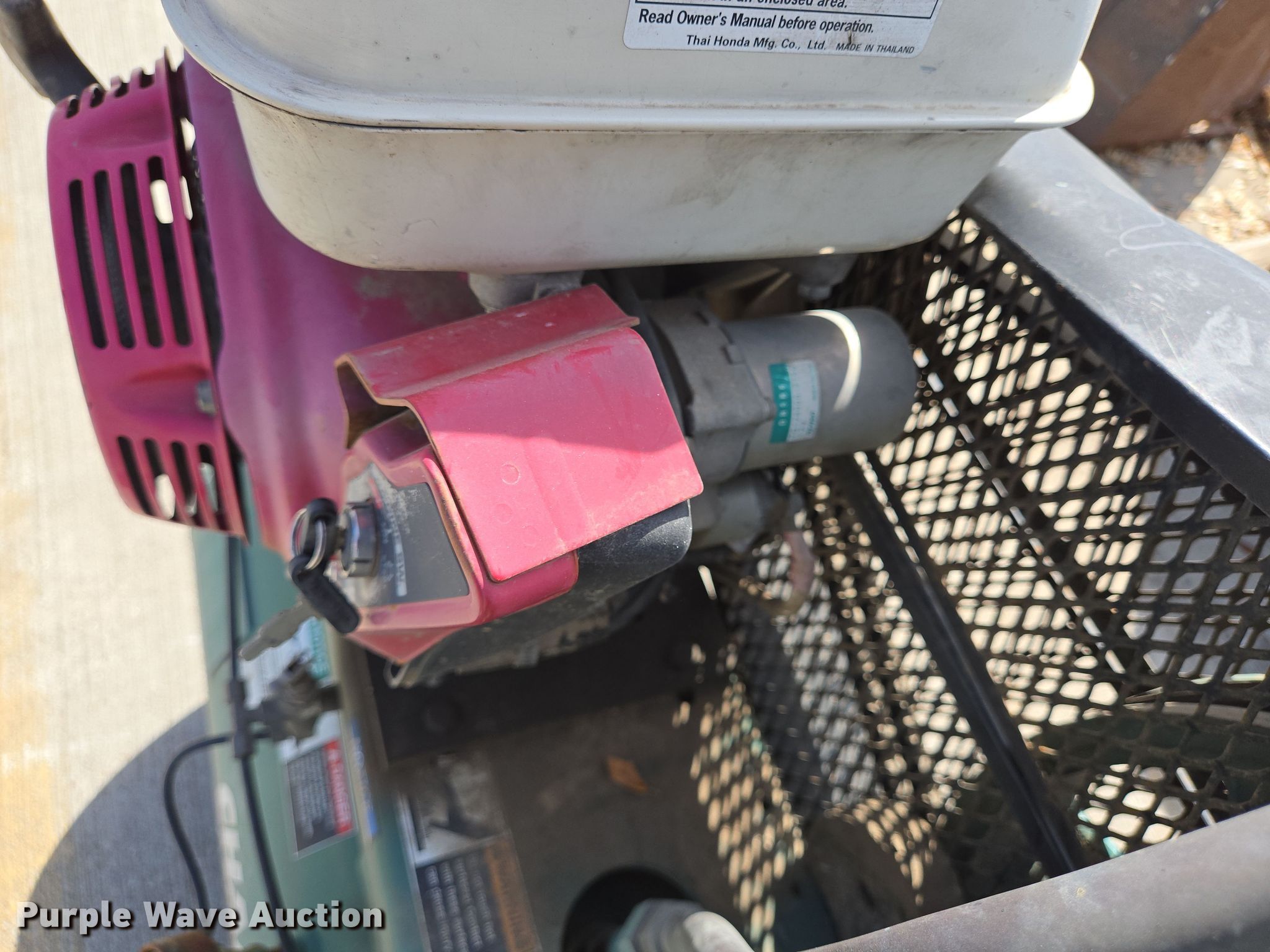 Champion HGR7-3H air compressor. Serial: D152660. Engine Honda GX390, Displacement: 389 cc, Cylinders: 1, Fuel type: Gas, HP: 13. Features Air compressor CFM: 23.2, PSI: 175, Tank capacity: 30 gallons. Bobcat of Houston Pearland. Houston, TX 77047