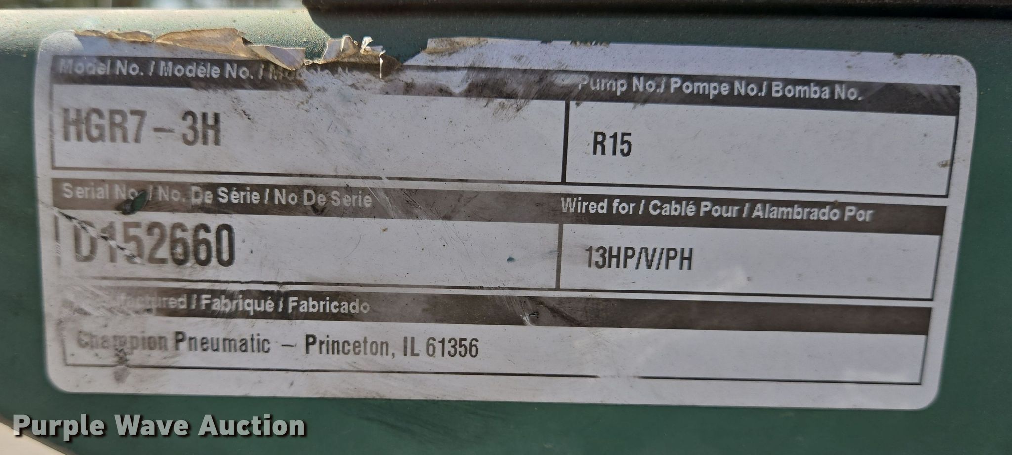 Purple Wave is selling a used Air Compressor in Texas. This item is a Champion HGR7-3H air compressor with the following: Serial: D152660