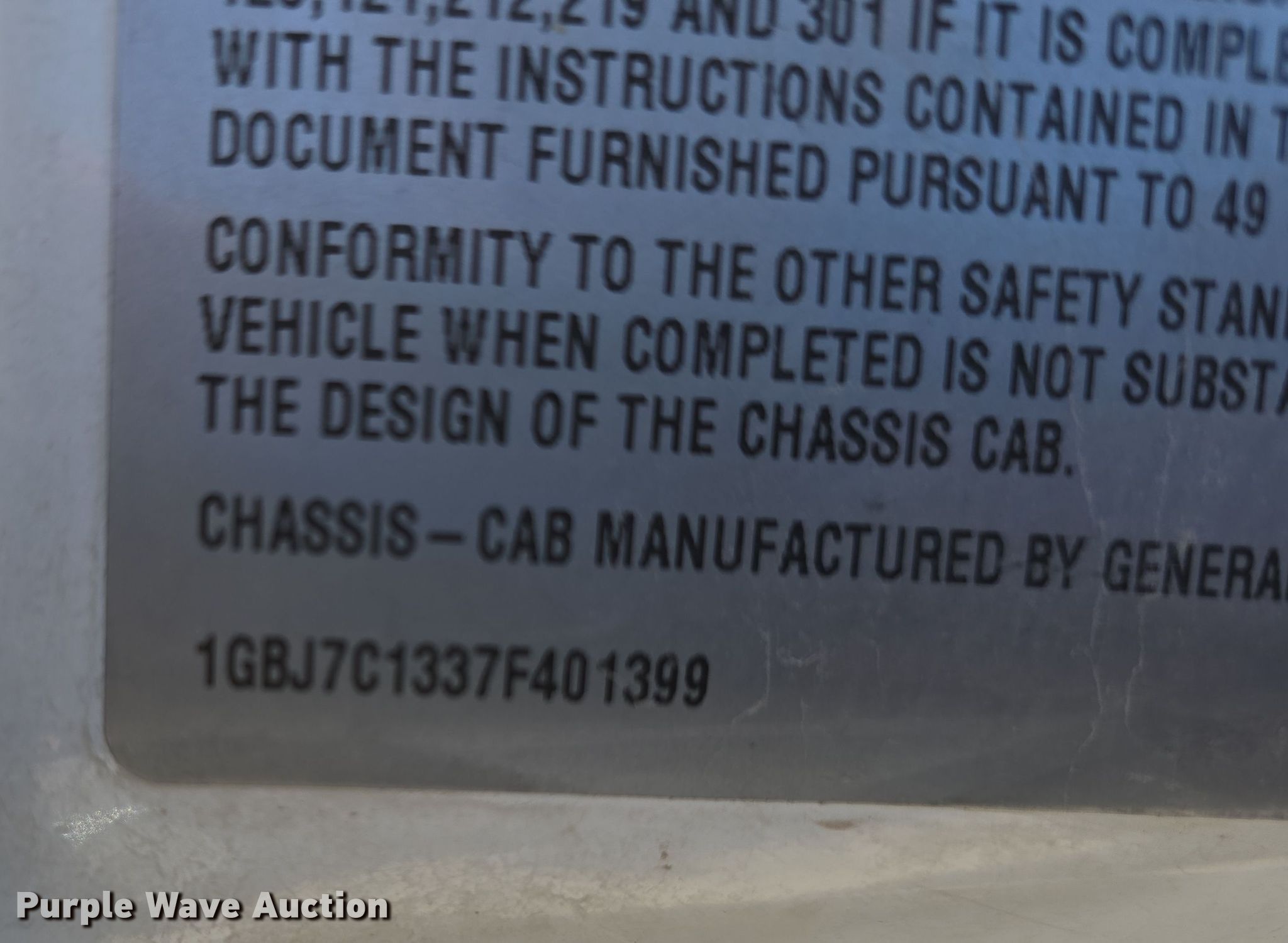 Purple Wave is selling a used Delivery Truck or Van in Nebraska. This item is a 2007 Chevrolet C7500 delivery truck with the following: Miles: 247,558 on odometer, VIN: 1GBJ7C1337F401399