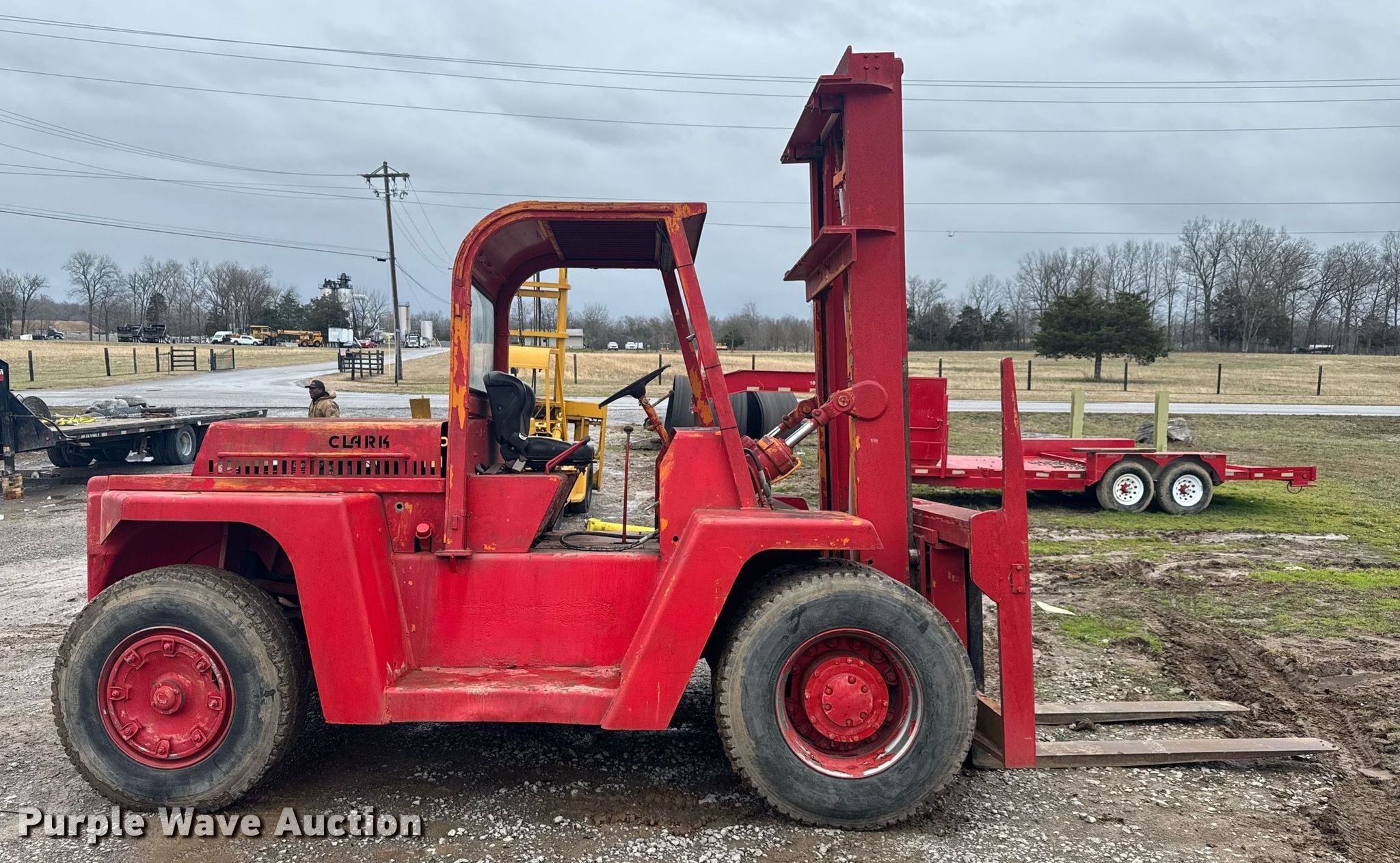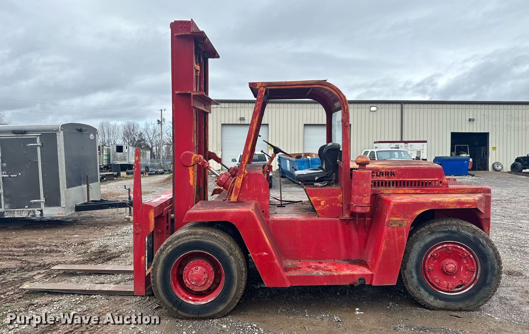 Purple Wave is selling a used Strt. Mast Rough Terr. Forklift in Tennessee. This item is a Clark CFY150B forklift with the following: Hours: 596 on meter, Serial: 191481463