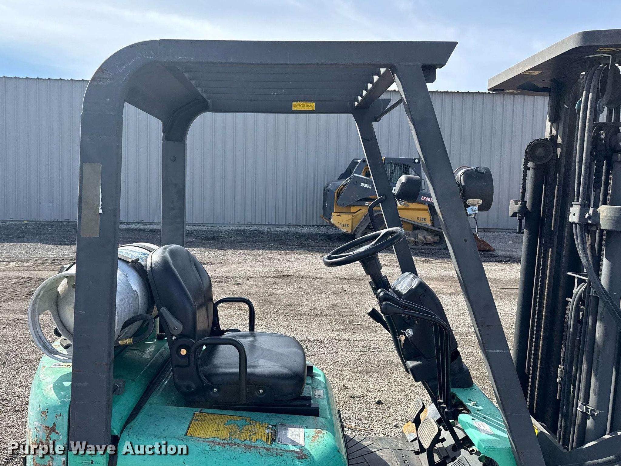 Purple Wave is selling a used Warehouse Forklift in Oklahoma. This item is a Mitsubishi FGC15K forklift with the following: Hours: 6,798 on meter, Serial: AFS1C-00730