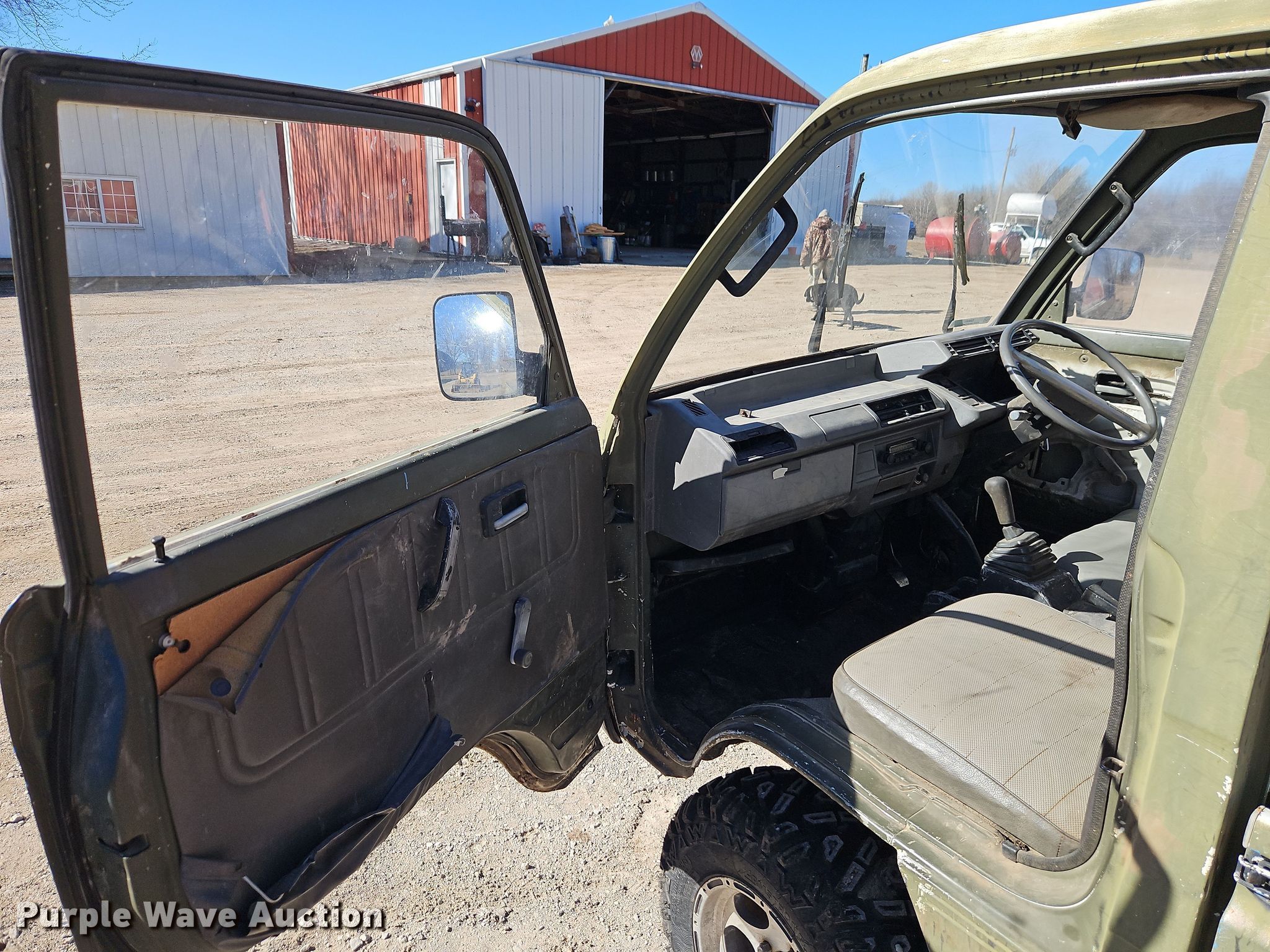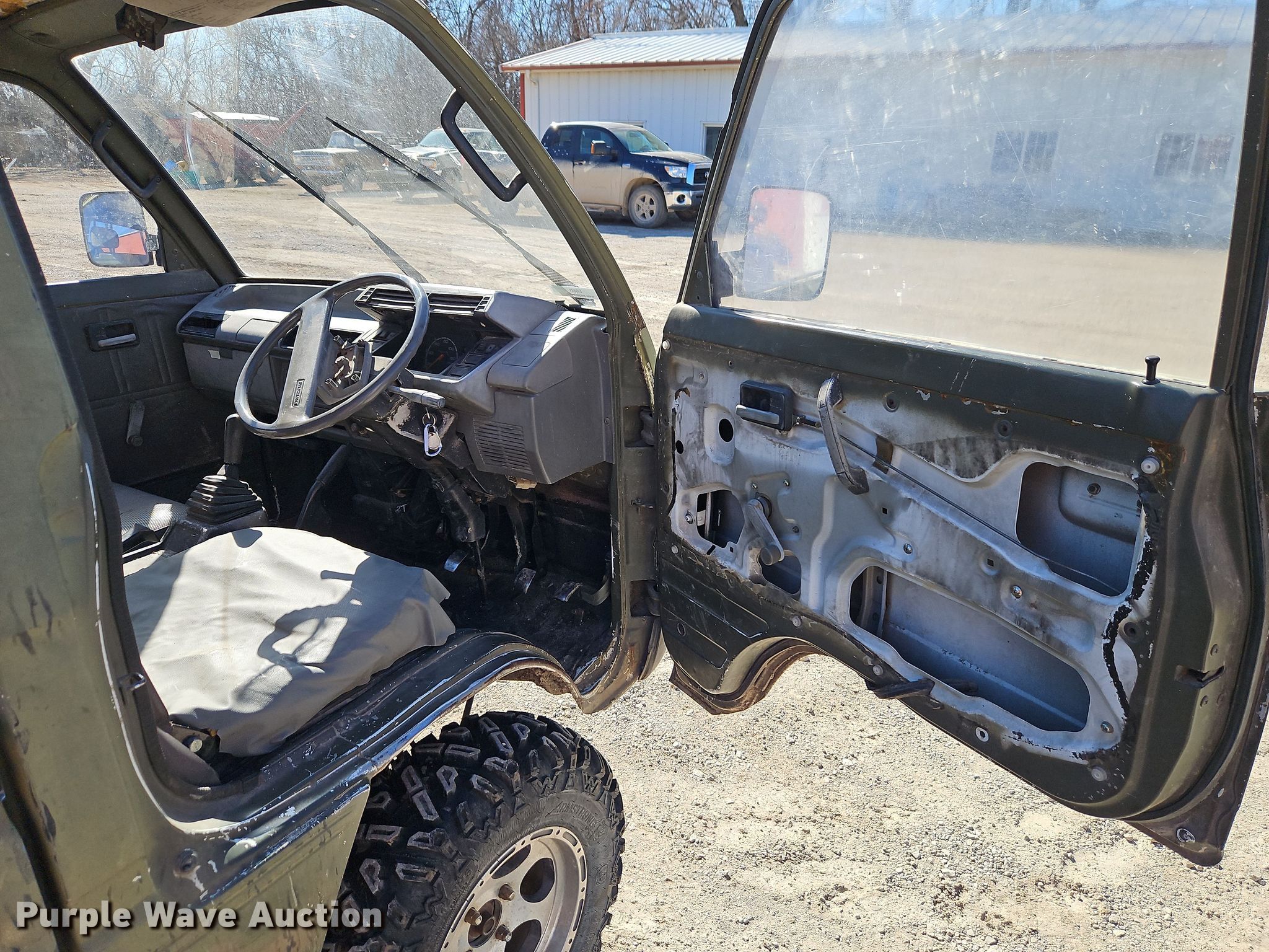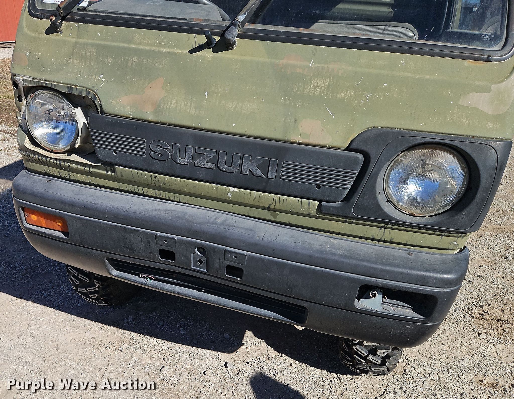 Suzuki M-DB51T mini truck. Miles: 79,420 on odometer, VIN: DB51T145754. Engine Cylinders: 3, Fuel type: Gas, Electric start. Transmission Manual, Speed: 4. Chassis Four wheel drive/ All wheel drive. Operators station Enclosed cab, Heat. Features Receiver hitch, 76" L x 50" W. Tires Size: 27x9.00R14. Transfer of ownership documentation will be a bill of sale. Fulton, KS 66738