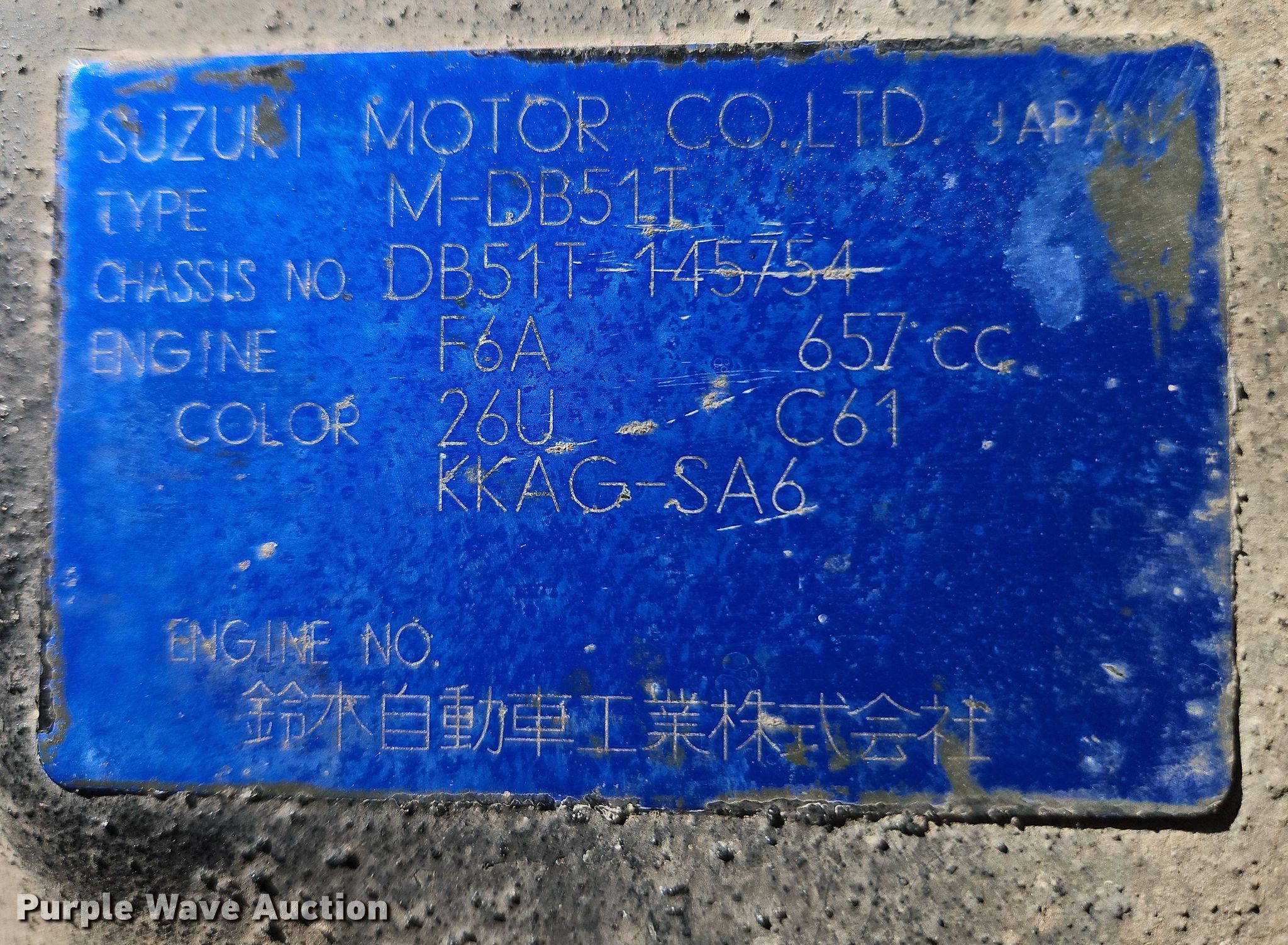 Purple Wave is selling a used Utility Vehicle in Kansas. This item is a Suzuki M-DB51T mini truck with the following: Miles: 79,420 on odometer, VIN: DB51T145754