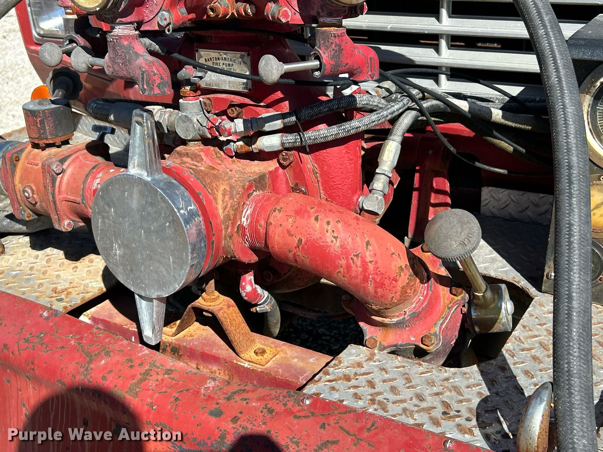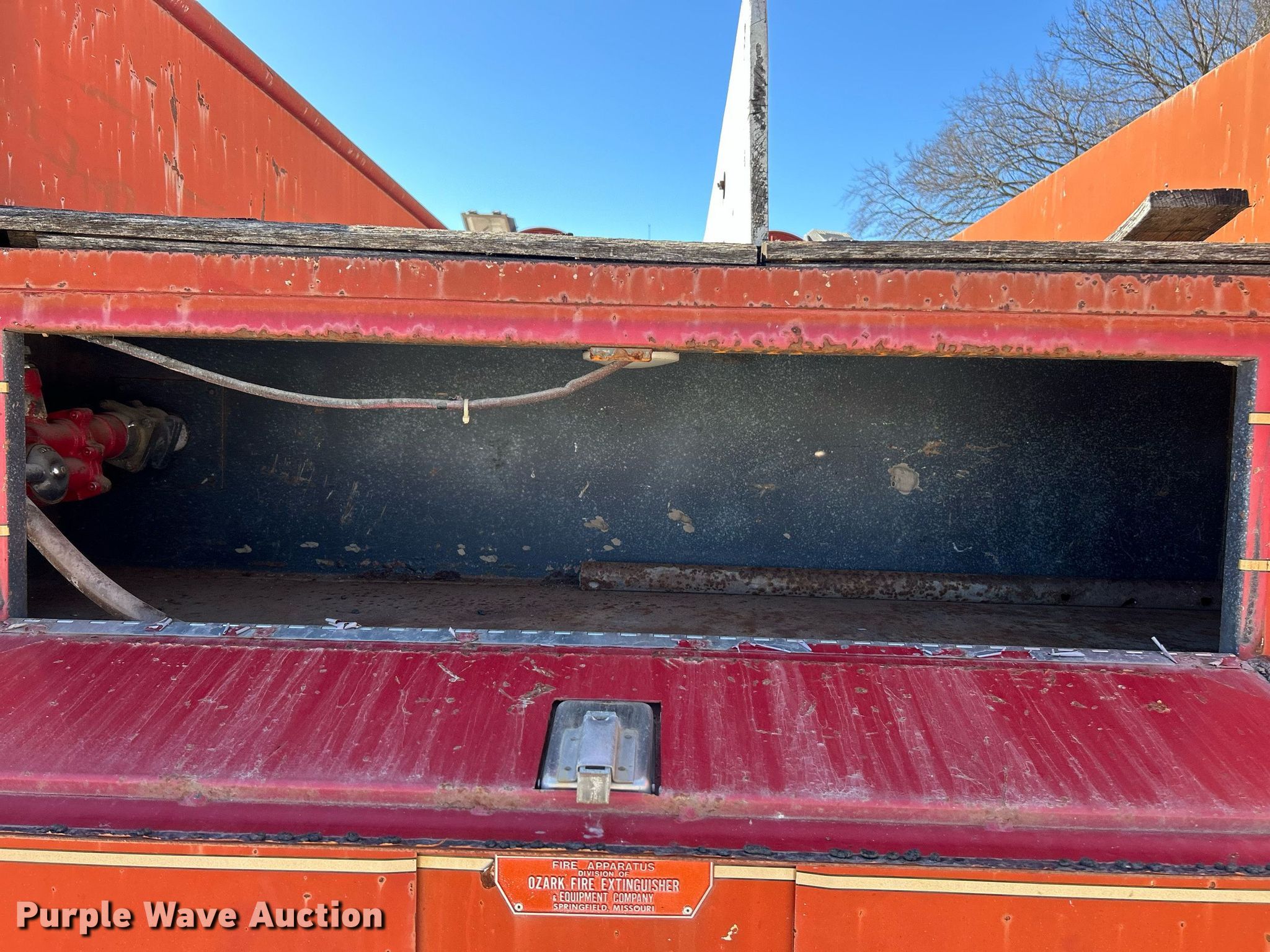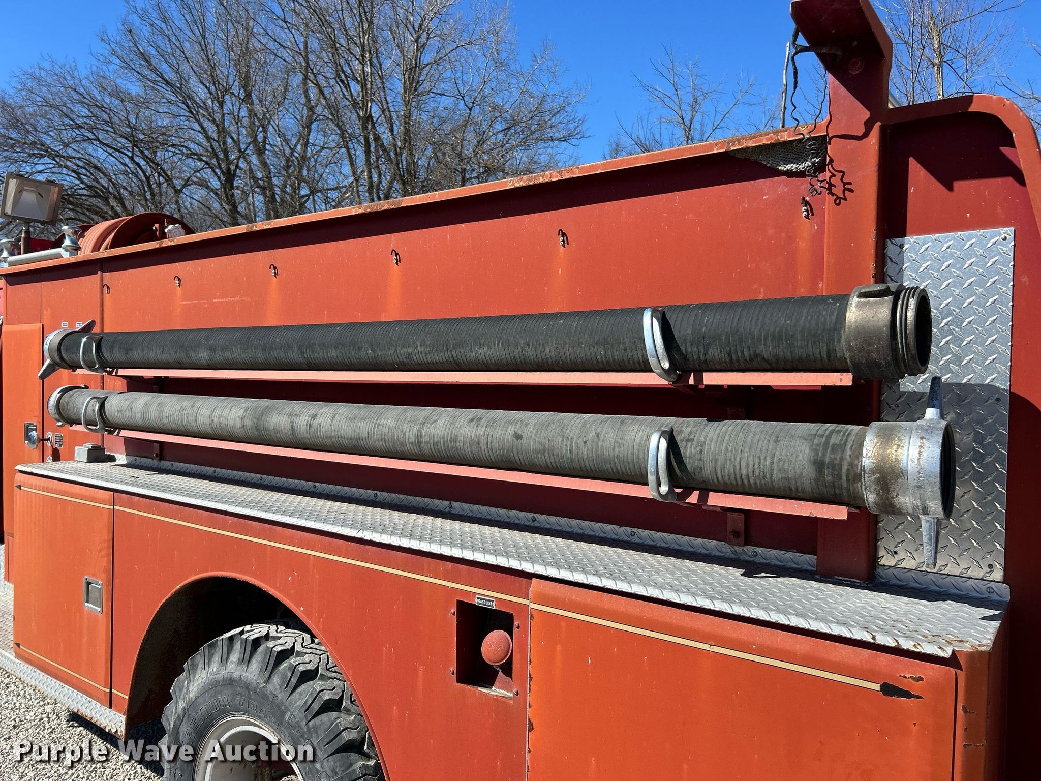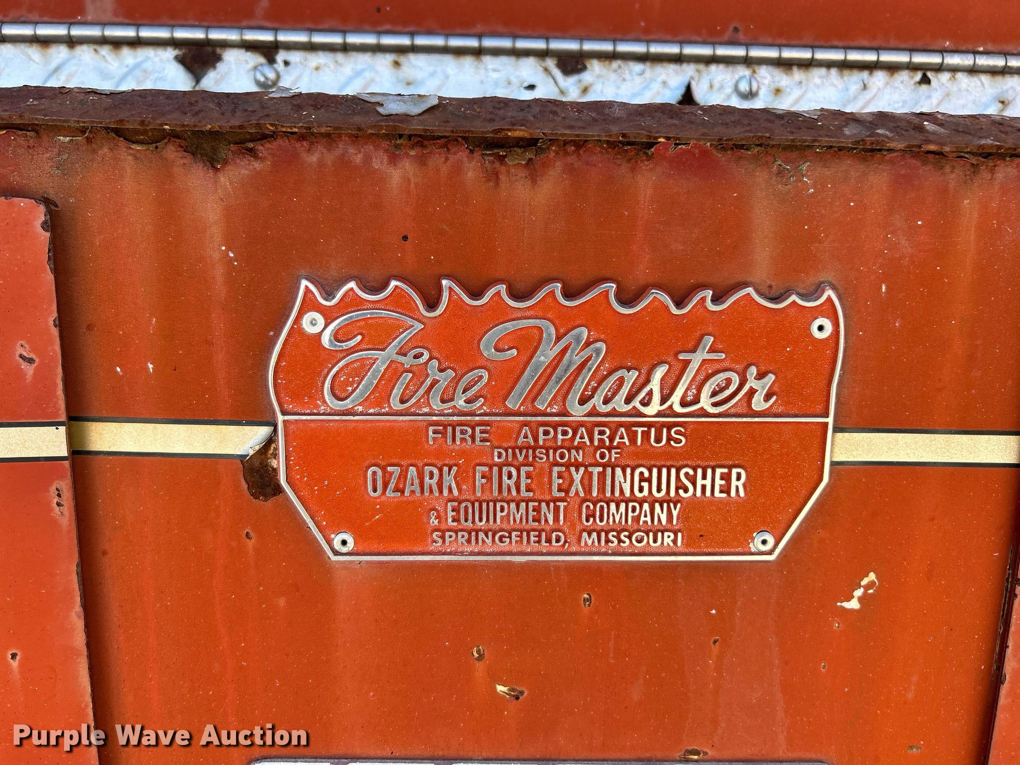 1980 Ford F700 Custom Cab pumper fire truck. Miles: 9,264 on odometer, VIN: F70KVJA7475. Engine Cylinders: 8, Fuel type: Gas. Transmission Manual, Speed: 5, plus 2. Chassis Axles: Single, Suspension: Spring, Brakes: Hydraulic, GVWR: 27,500 lbs. Interior Heat. Features Fire truck body Fire Master, Hours: 974 on meter, Pump 750 gpm.. Tires Size: 10.00-20. Notes Brake issues Unit must be towed or hauled. Illinois title. Seller is a Missouri licensed motor vehicle dealer. Title will be assigned and distributed by the dealer. Please contact the seller for distribution questions. Title distribution may be delayed up to 30 days from verification of funds. Fruendly Auto Source Inc.. Moscow Mills, MO 63362