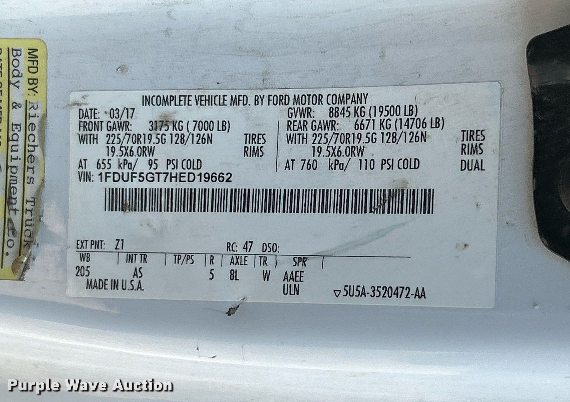 - VIN: 1FDUF5GT7HED19662
