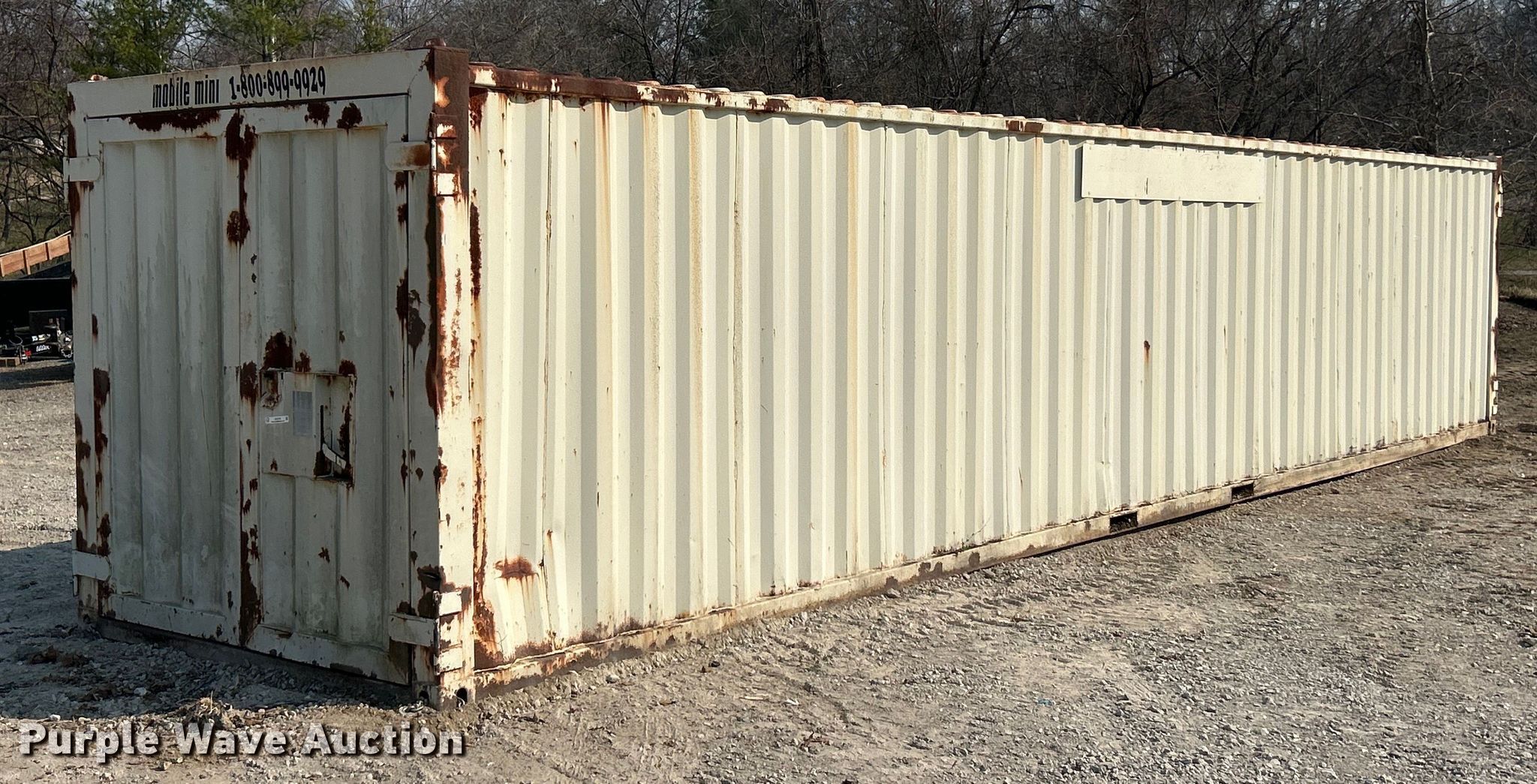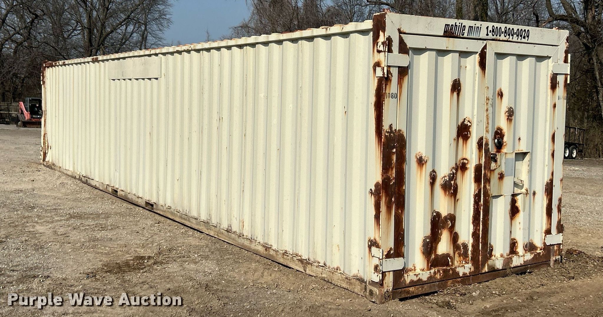 Purple Wave is selling a used Storage or Shipping Container in Missouri. This item is a Mobile-Mini container with the following: 40' L x 95" W x 94" H, Shelves included, Rust damage