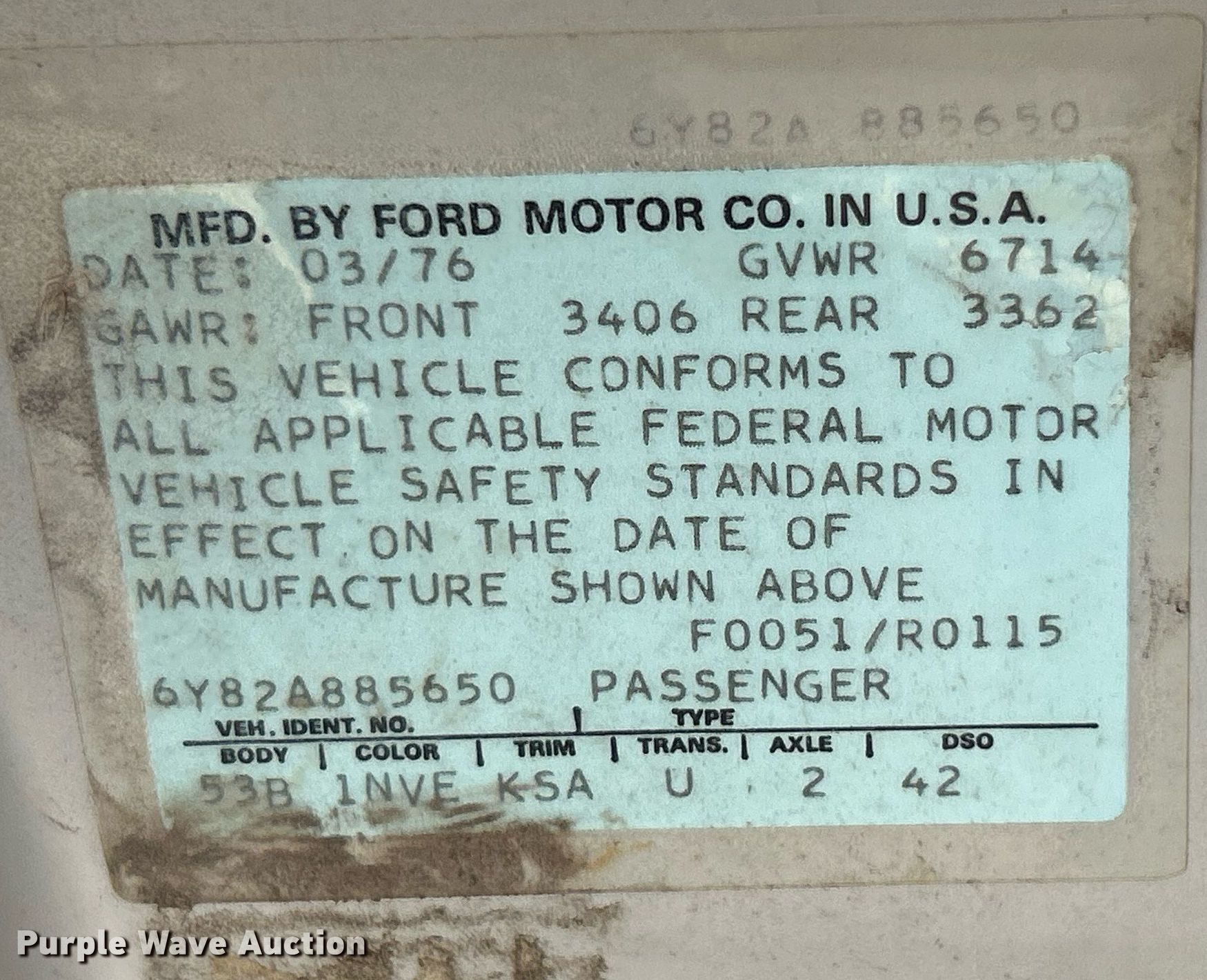 1976 Lincoln Continental. Miles: 10,666 on odometer, VIN: 6Y82A885650. Engine Displacement: 460 C.I.D., Cylinders: 8, Fuel type: Gas. Transmission Automatic. Interior AC, Heat, Power windows, Power locks, Cruise control, Powered sunroof. Tires Size: 225/75R15. Notes Windshield chipped or cracked. Illinois title. Title distribution may be delayed up to 14 days from verification of funds. Innovative Construction Concepts. Caseyville, IL 62232