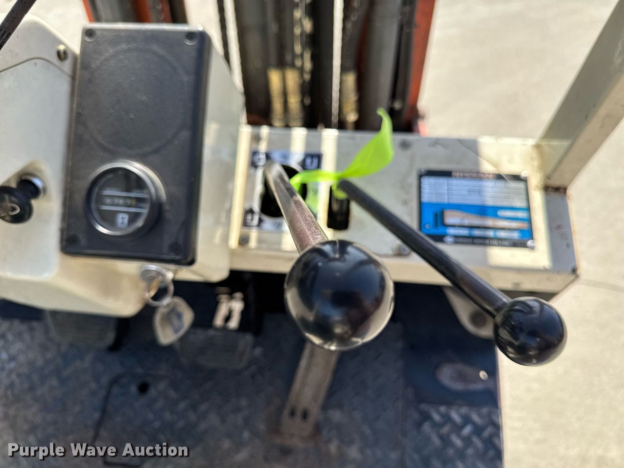Purple Wave is selling a used Warehouse Forklift in Iowa. This item is a Nissan KCPH01A15PV forklift with the following: Hours: 6,758 on meter, Serial: LCPH01P902533