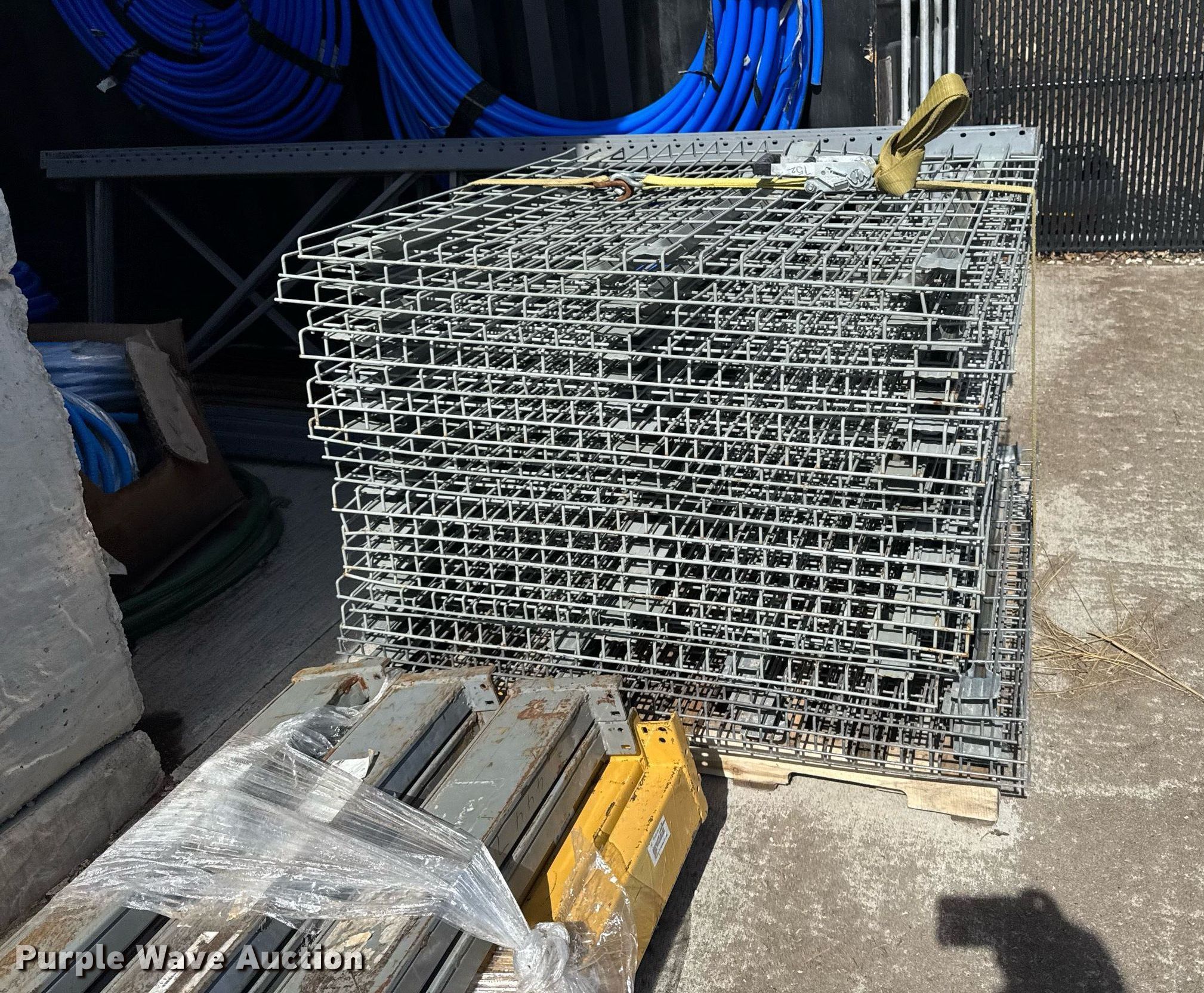 Purple Wave is selling a used Pallet Racking in Iowa. This item is a Pallet racking with the following: (23) wire sections, (16) cross sections, (3) uprights