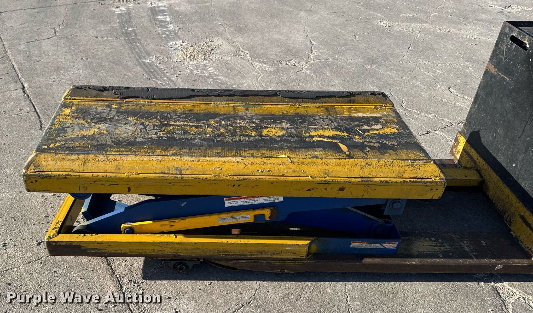 Yale MPB040ACN24C2748 pallet jack. Serial: A827N32696X. Electric Motor Volts: 24. Features Maximum lift capacity: 4,000 lbs, Fork length: 48", Lift table. Rail and Road Equipment Co.. Des Moines, IA 50313