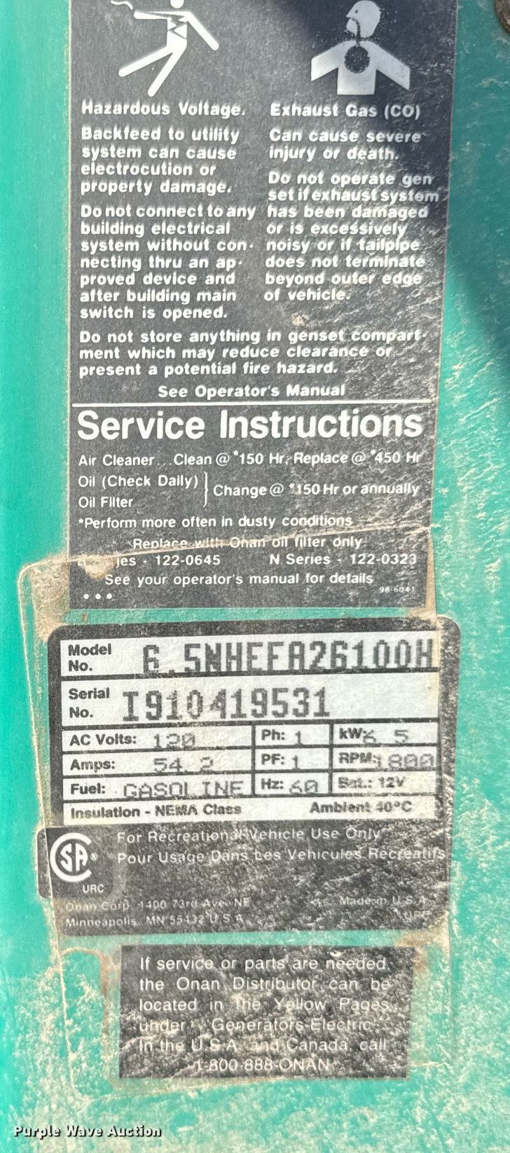 1991 Holiday Rambler Aluma Lite RV. Miles: 76,483 on odometer, Camper length: 32', VIN: 3FCMF53GXMJA03207. Engine Displacement: 7.5L, Cylinders: 8, Fuel type: Gas. Transmission Automatic. Chassis Axles: Tandem, Suspension: Spring, Brakes: Hydraulic. Interior Kitchen: Sink, Refrigerator, Freezer, Microwave, Oven, Stove: Propane, Living room: Table, Couch, Pull out couch, Bathroom, Beds: 1 Bed type: Queen, Sound system, Heater, AC units: 2. Features Awnings: 5 Awning type: Manual, Generator Onan 6500 emerald plus genset, Hours: 983 on meter, Fuel type: Gas, Watts: 6,500, Rear hitch. Tires Size: 235/85R16. Notes Non-operational generator, engine turns over but does not start Battery missing. Iowa title. Title distribution may be delayed up to 14 days from verification of funds. Henkle Crane Company. Vinton, IA 52349