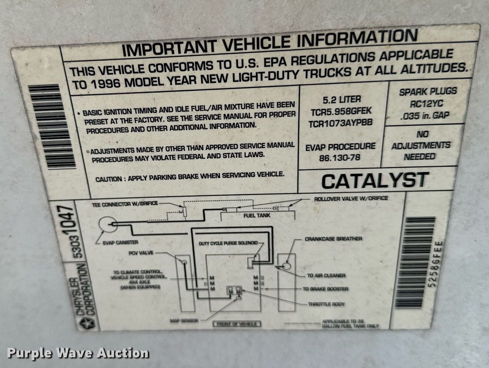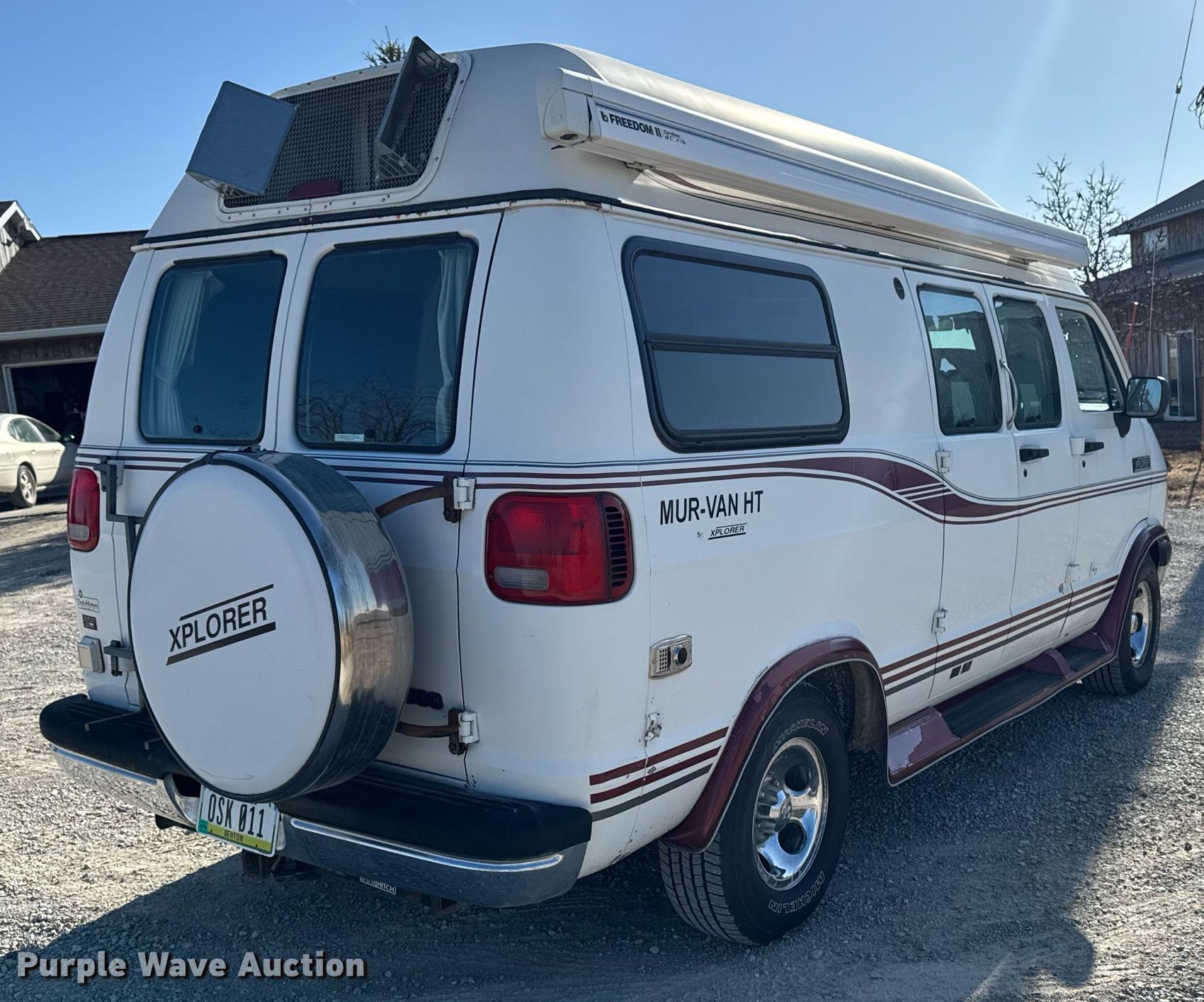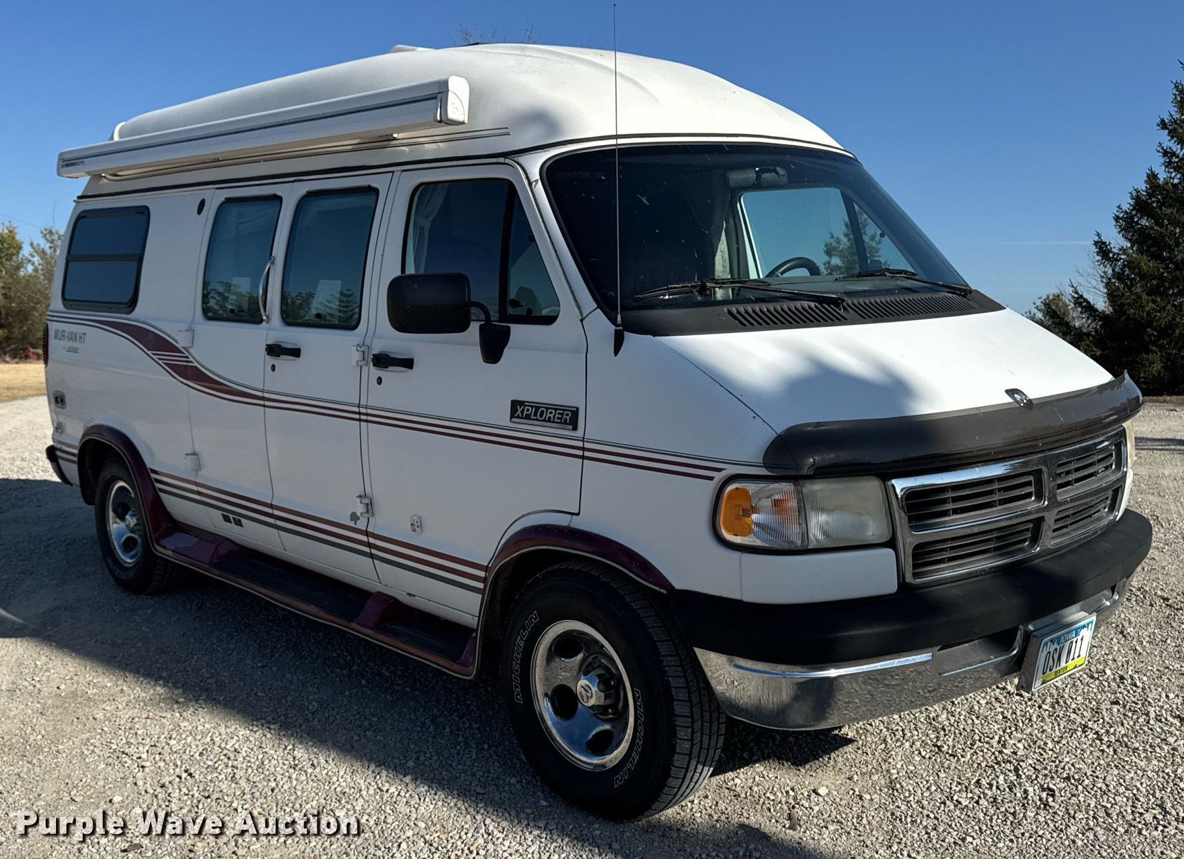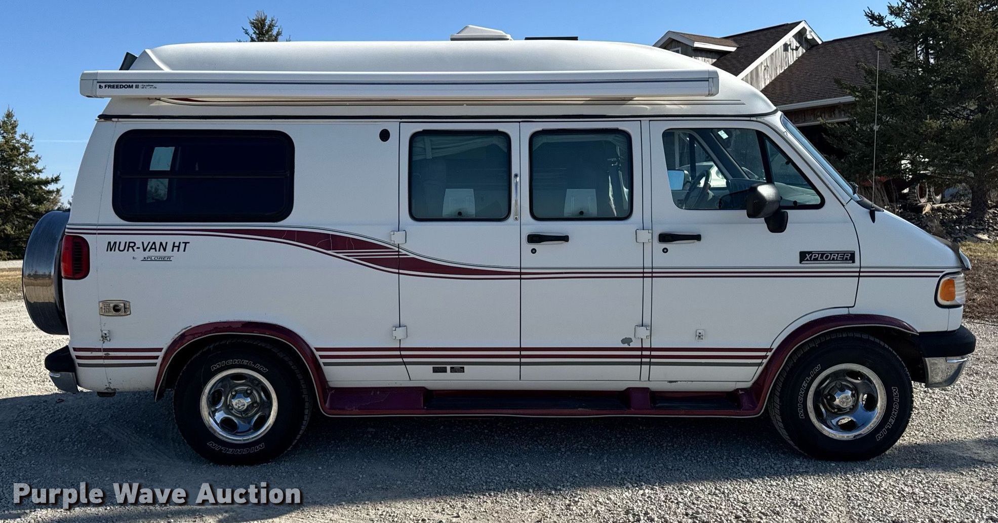 1997 Xplorer MUR-VAN HT RV. Miles: 69,947 on odometer, Camper length: 17', VIN: 2B6HB21Y5TK171069. Engine Displacement: 5.2L, Cylinders: 8, Fuel type: Gas. Transmission Automatic. Chassis Axles: Single, Suspension: Spring, Brakes: Hydraulic, GVWR: 6,800 lbs. Interior Kitchen: Sink, Refrigerator, Microwave, Oven, Stove: Propane, Living room: Table, Couch, Bathroom, Beds: 1 Bed type: Double, Sound system, Heater, Gas stove top, Electric toaster oven, AC units: 1. Features Awnings: 1 Awning type: Electric, Rear door / ramp Width: 84", Rear hitch. Tires Size: 235/75R15. Iowa title. Title distribution may be delayed up to 14 days from verification of funds. Henkle Crane Company. Vinton, IA 52349