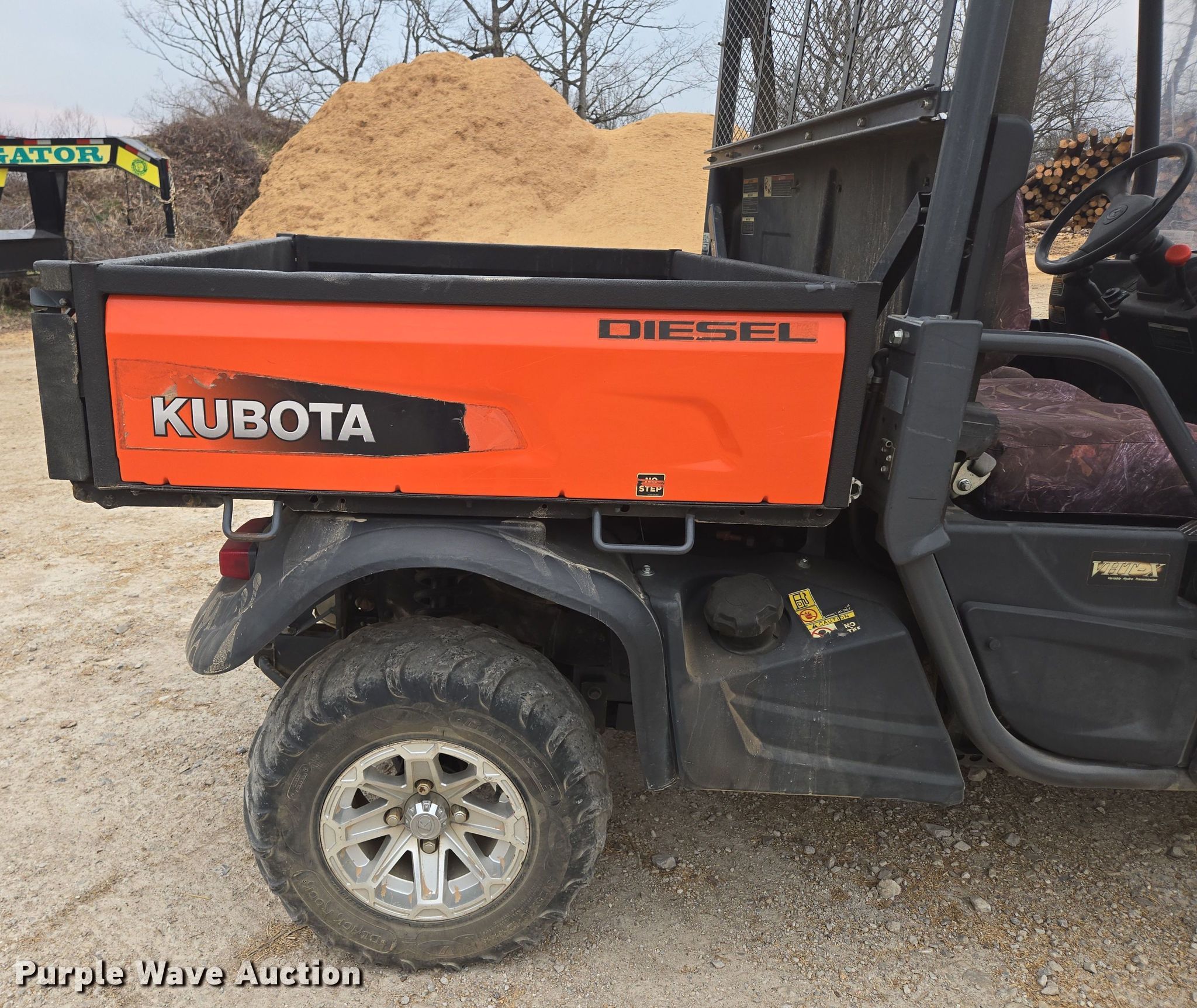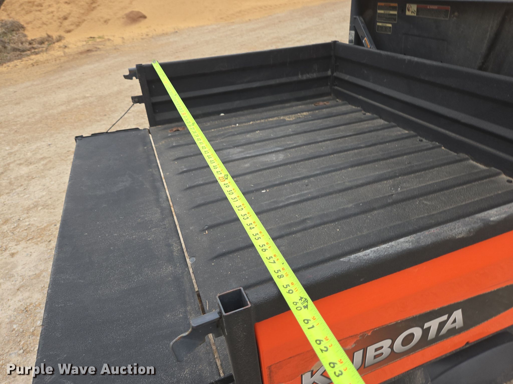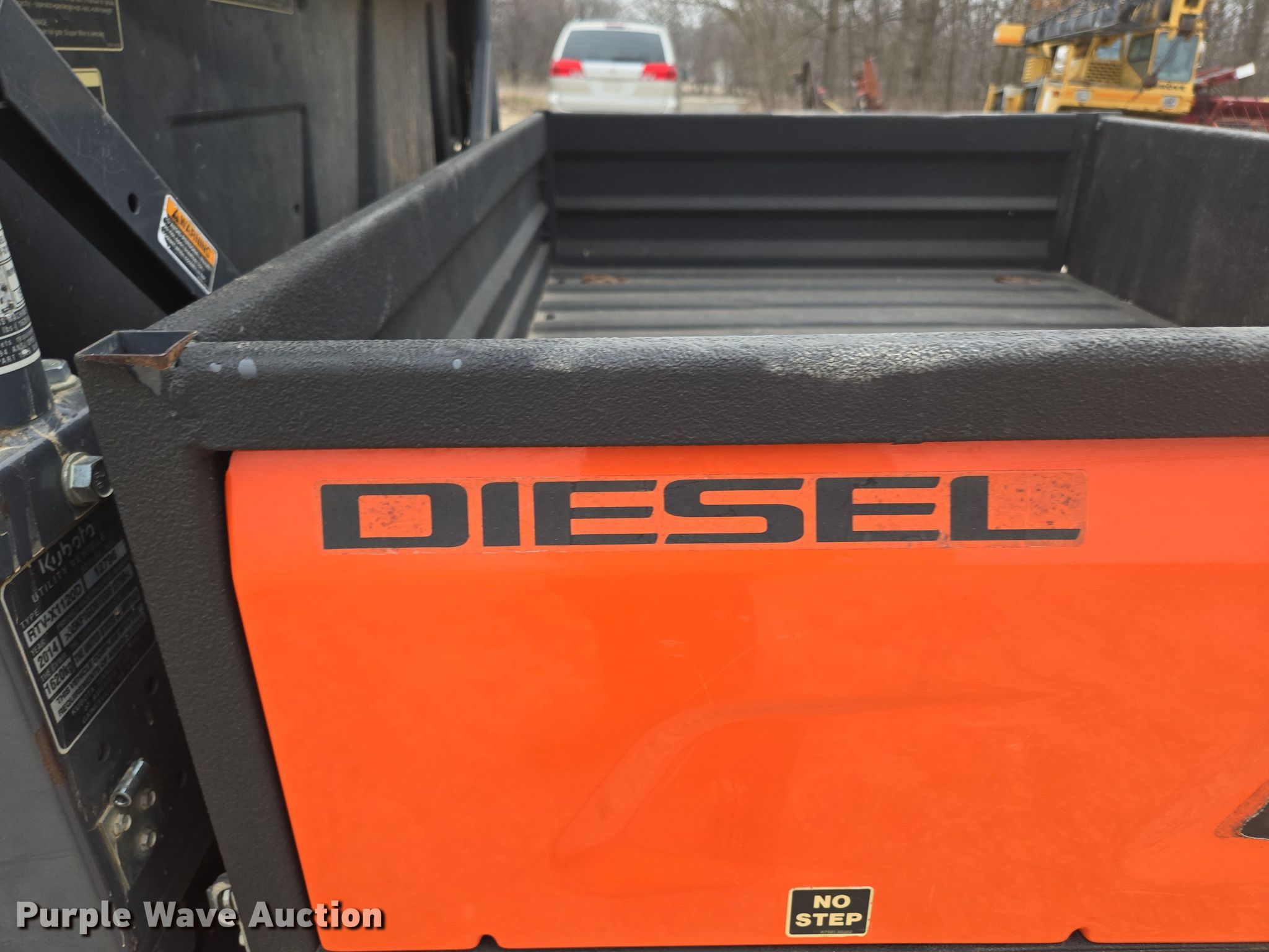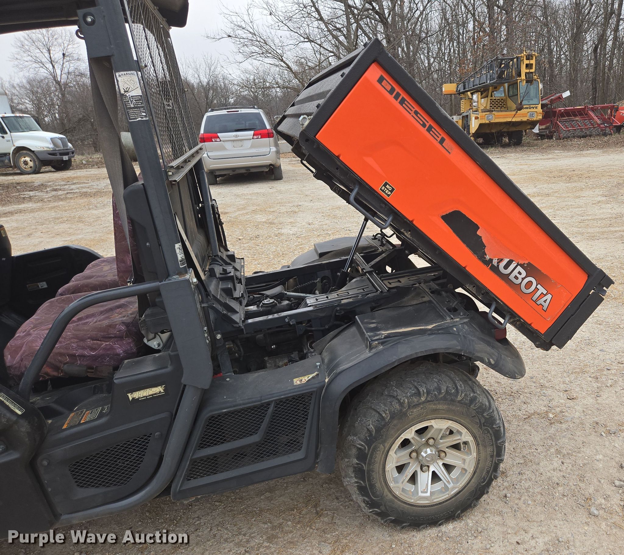2014 Kubota RTV X1120D utility vehicle. Miles: 9,378 on odometer, Hours: 816 on meter, VIN: A5KF1GDBTEG012796, Serial: 12796. Engine Kabota D1105-EF02, Displacement: 1.1L, Cylinders: 3, Fuel type: Diesel. Transmission Hydrostatic. Chassis Four wheel drive/ All wheel drive. Operators station OROPS. Features Grille guard, Receiver hitch, Dump bed, Box bed 44" L x 59" W, Dump bed type: Electric/ Hydraulic. Tires Size: AT25x10-12. Transfer of ownership documentation will be a bill of sale. Seymour, MO 65746