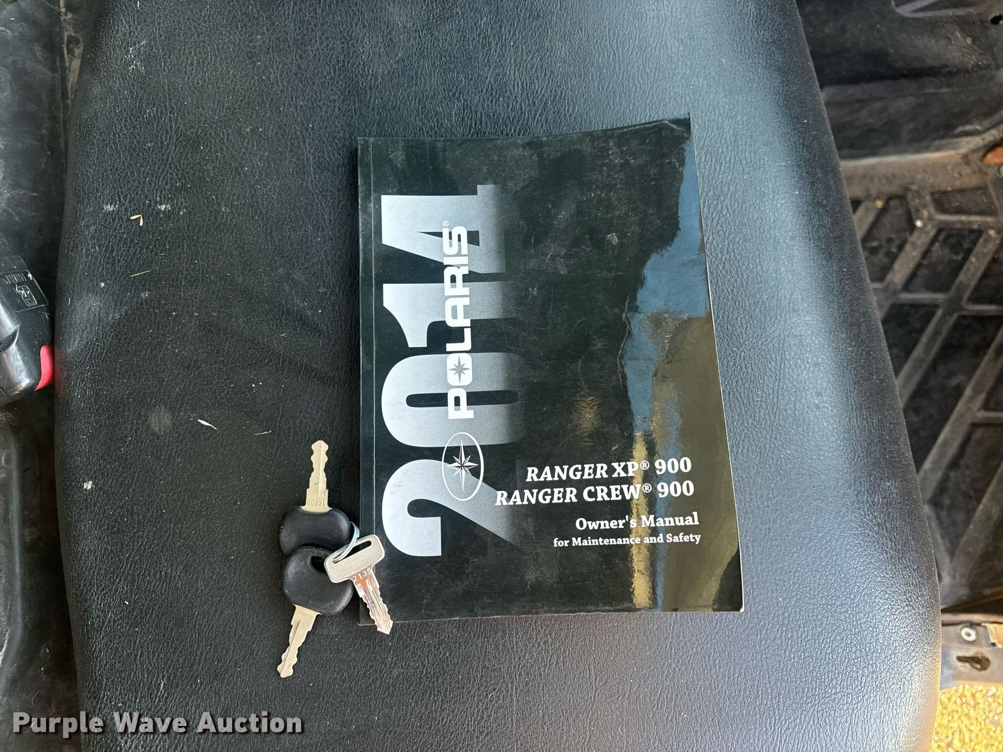 Purple Wave is selling a used Utility Vehicle in Missouri. This item is a 2014 Polaris Ranger 900XP utility vehicle with the following: Miles: 26,523 on odometer, Hours: 3,108 on meter, VIN: 4XAUH88A4EG346211