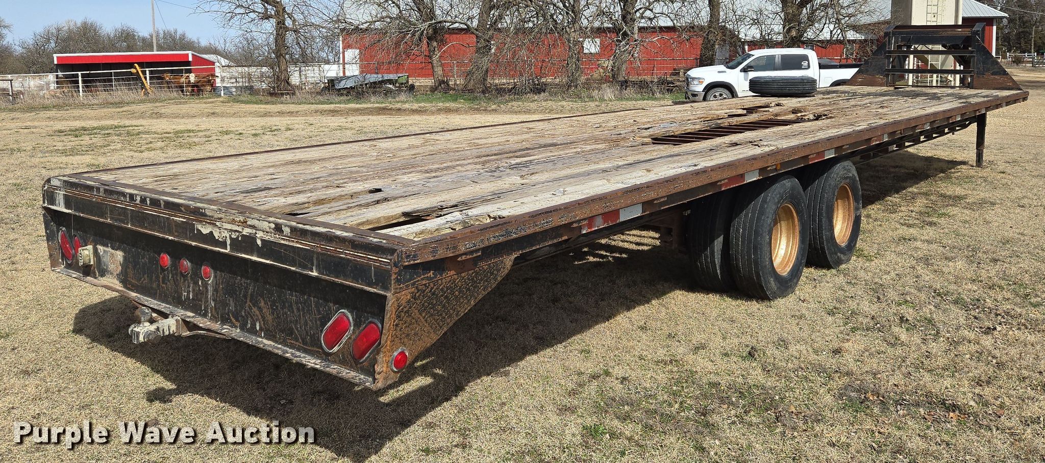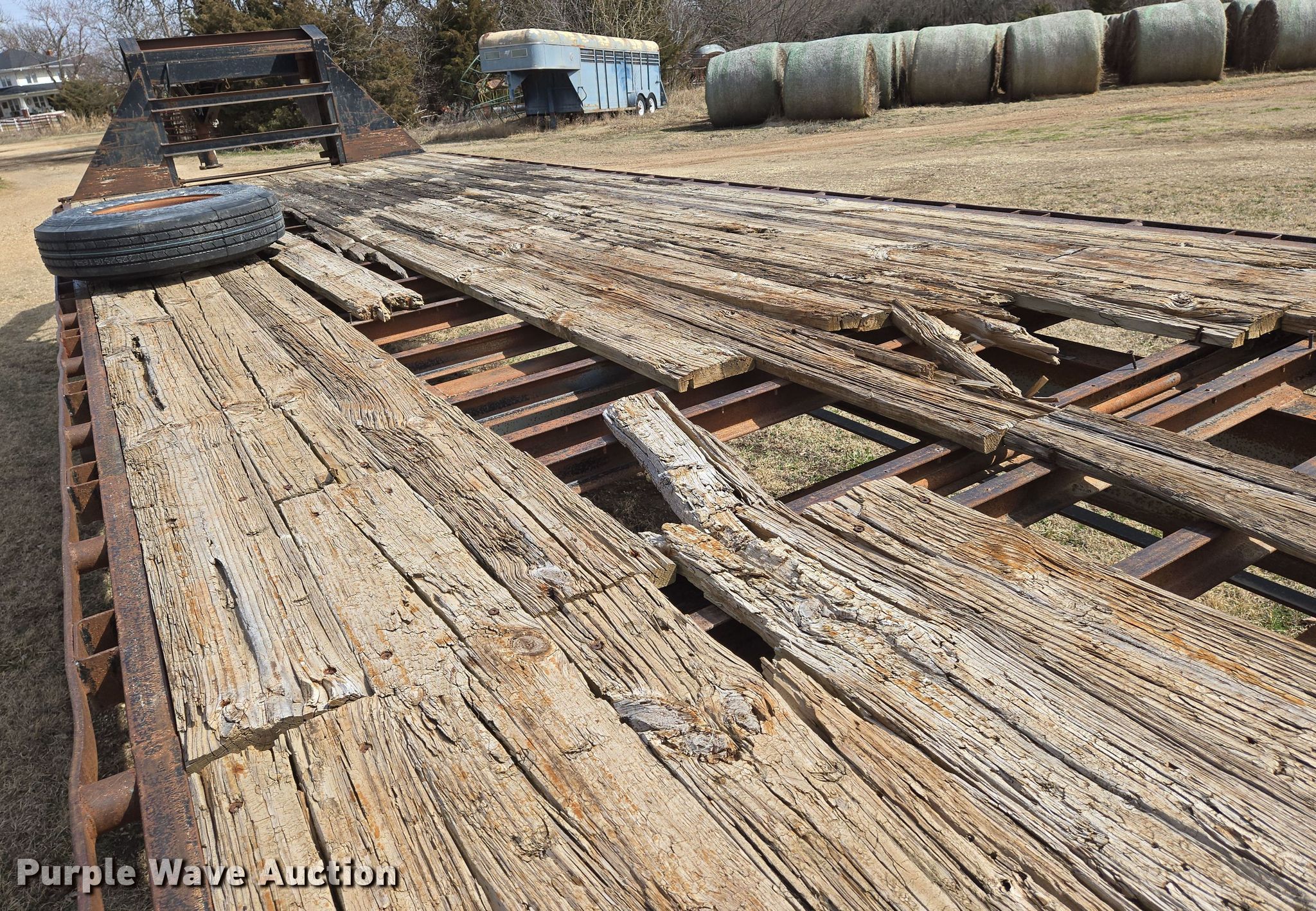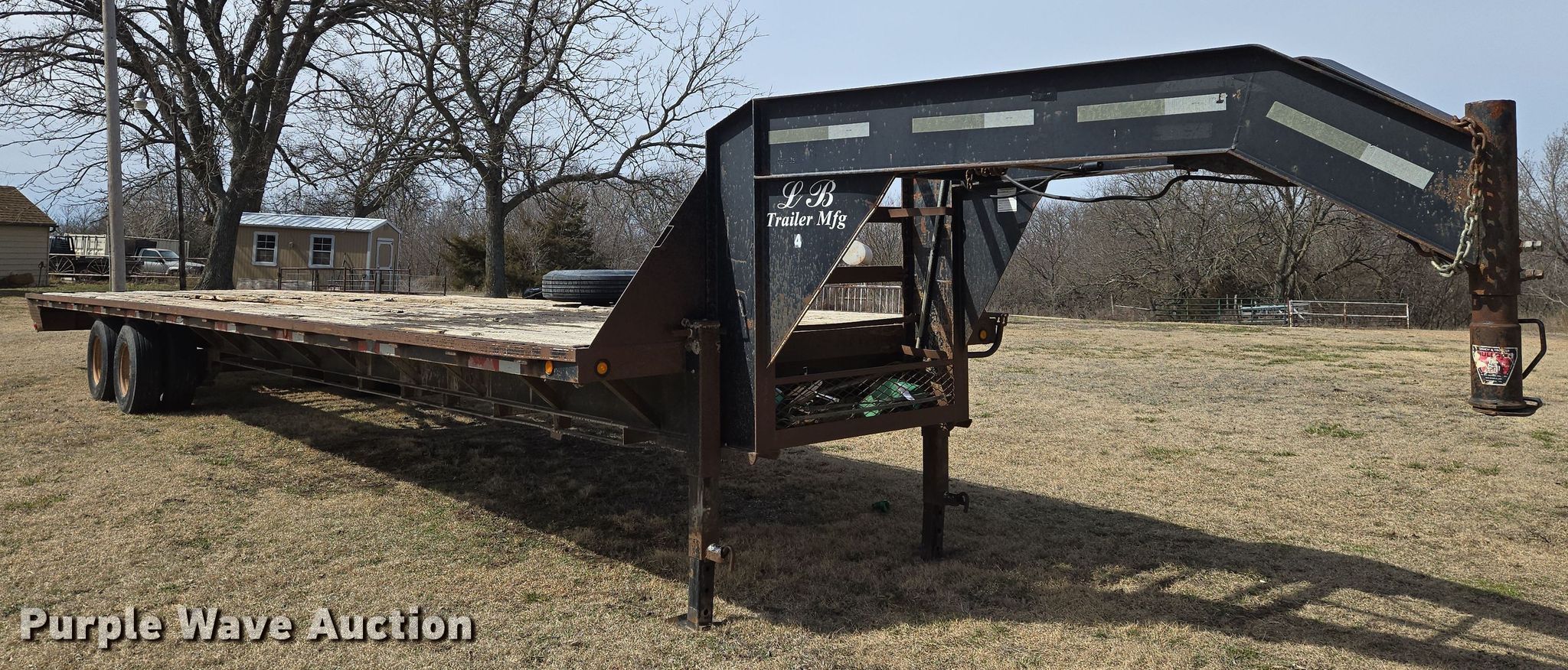 2005 LB Trailer equipment trailer. VIN: 1L9GU382045295390. Dimensions Overall: 46' L x 101" W, Deck: 38' L x 101" W. Features Deck type: Wood. Chassis Hitch: Gooseneck, Landing gear: Dual, Suspension: Spring, Brakes: Electric, Axles: Tandem. Tires Steel wheels, Size: 225/90R16. Notes Deck boards damaged. Kansas title. Title distribution may be delayed up to 30 days from verification of funds. Rosalia, KS 67132