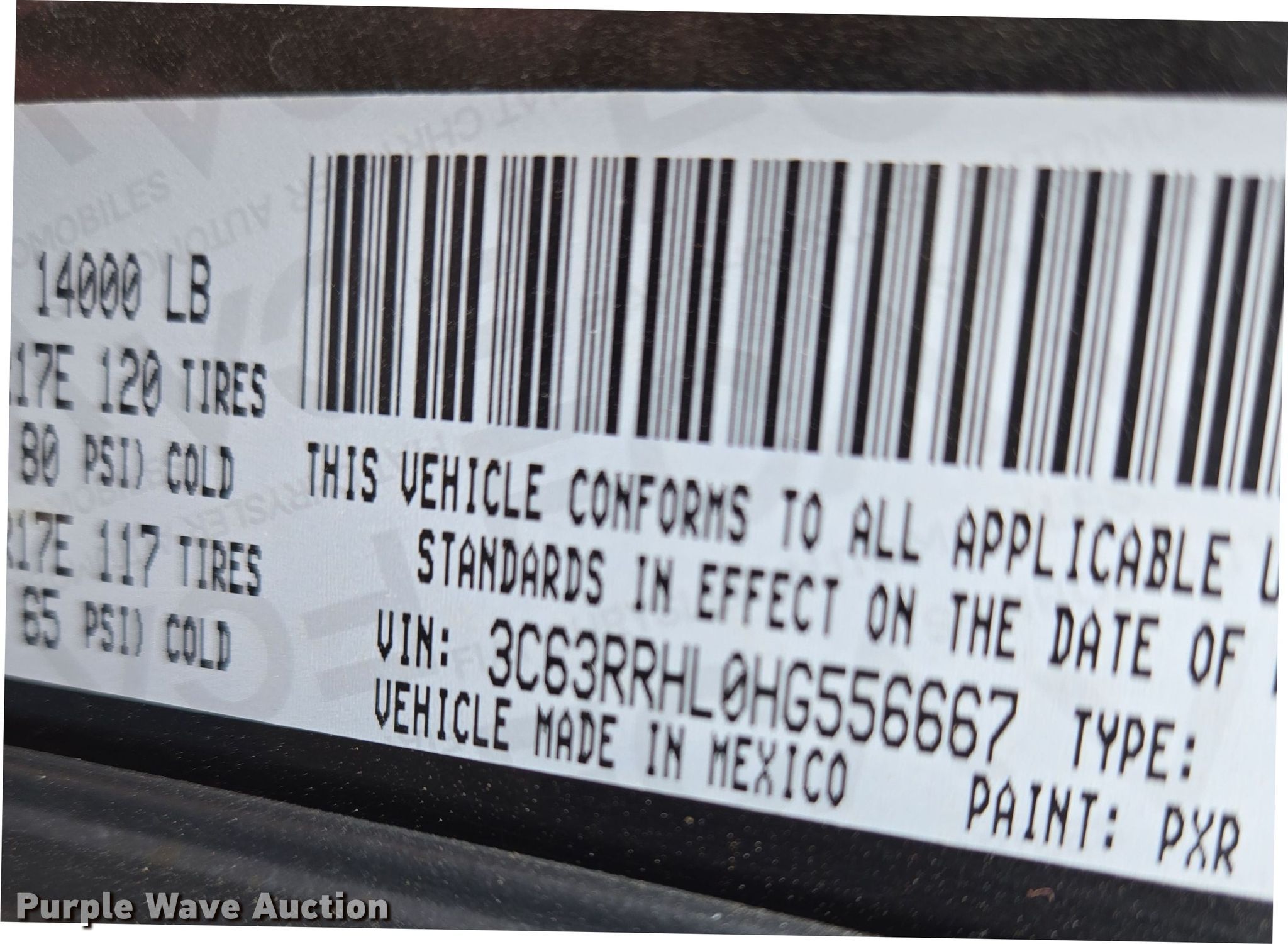 This 2017 Dodge Ram 3500 Crew Cab flatbed pickup truck will sell to the highest bidder regardless of price.