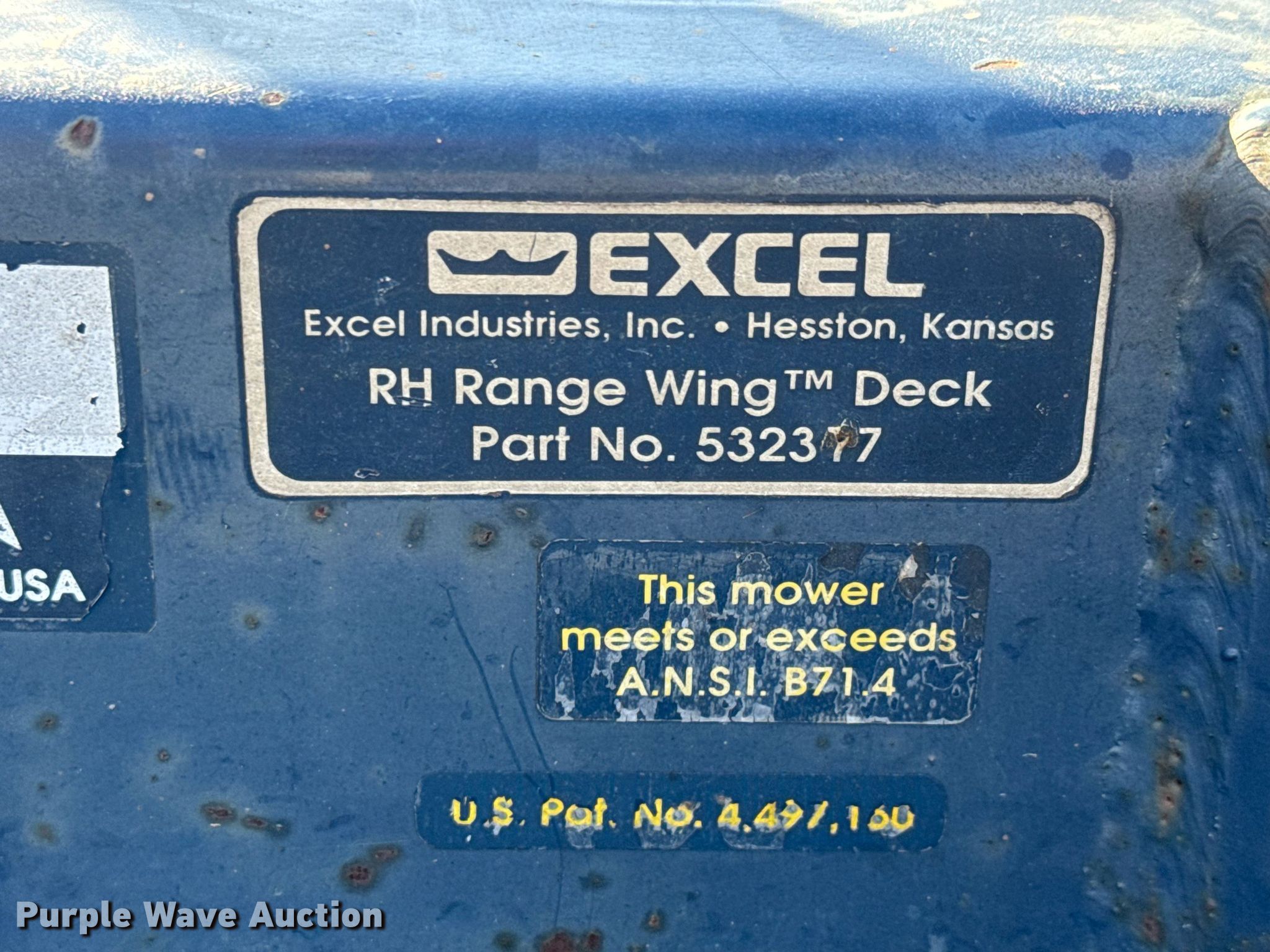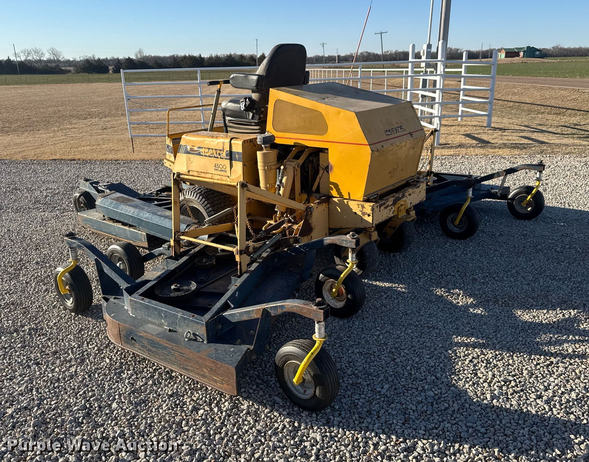 Purple Wave is selling a used Commercial Turf Mower in Kansas. This item is a Excel 4500 Hustler lawn mower with the following: Hours: 1,405 on meter, Cutting width: 138", Serial: 4310618