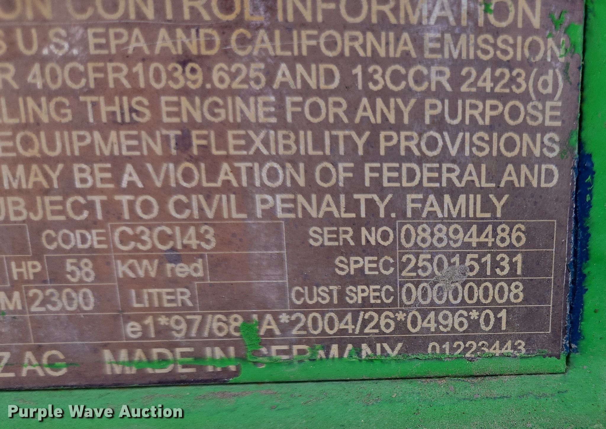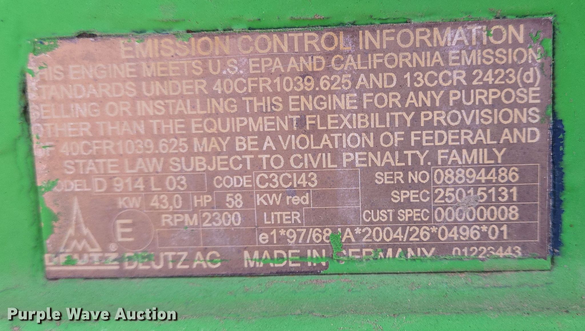 Deutz D 914 L 03 power unit. Hours: 2,701 on meter, Serial: 08894486, Cylinders: 3, Fuel type: Diesel, HP: 58, kW: 43. Features Self-contained fuel tank. Tires Size: ST225/75R15. Notes Unknown operating condition. This is worksite support equipment and will not come with a title. Transfer of ownership documentation will be a bill of sale. LAC Services. Corpus Christi, TX 78408