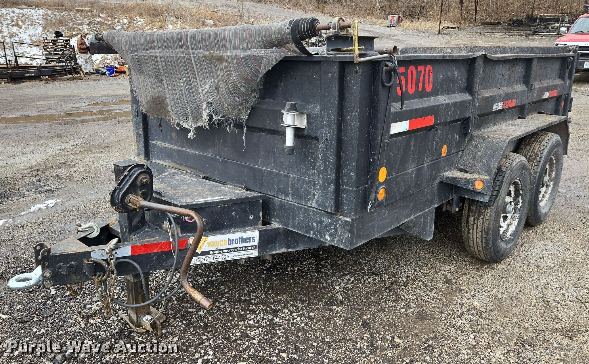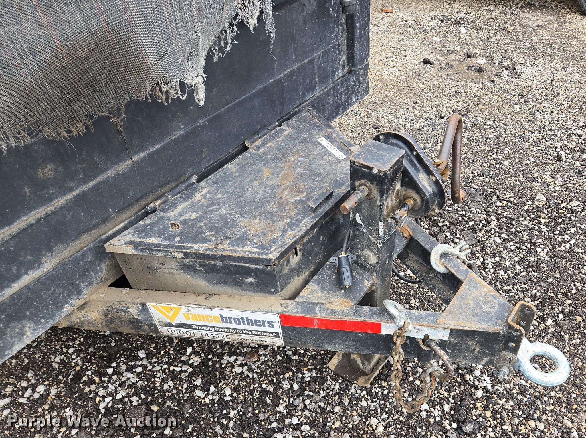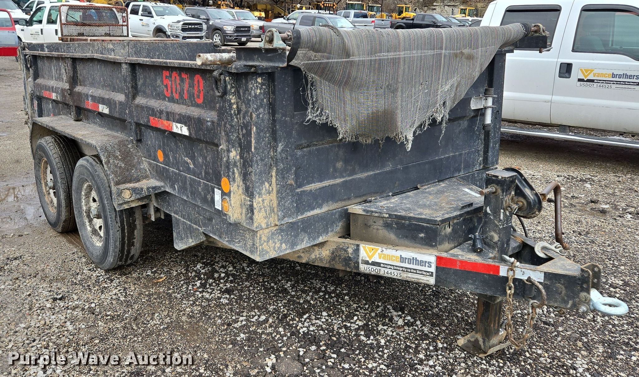 2006 PJ Trailer dump trailer. VIN: 4P5DT122161081371, Unit #: 5070. Dimensions Overall: 16' L x 102" W, Body: 12' L x 78" W, Side height: 24". Features Body type: Steel, Ram: Single, End gate: Manual, Roll tarp. Chassis Hitch: Pintle, Landing gear: Single, Suspension: Spring, Brakes: Electric, Axles: Tandem. Tires Steel wheels, Size: 235/80R16. Notes Asphalt stuck in bed, Roll tarp damaged. Missouri title. Title distribution may be delayed up to 30 days from verification of funds. Vance Bros Inc.. Kansas City, MO 64130